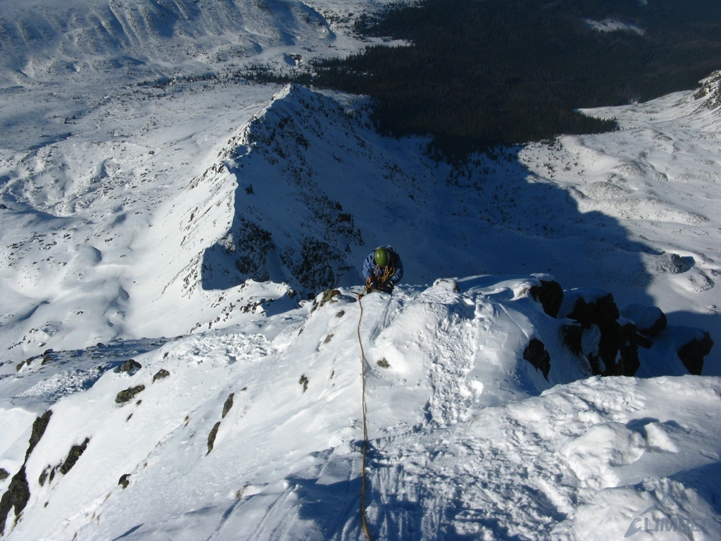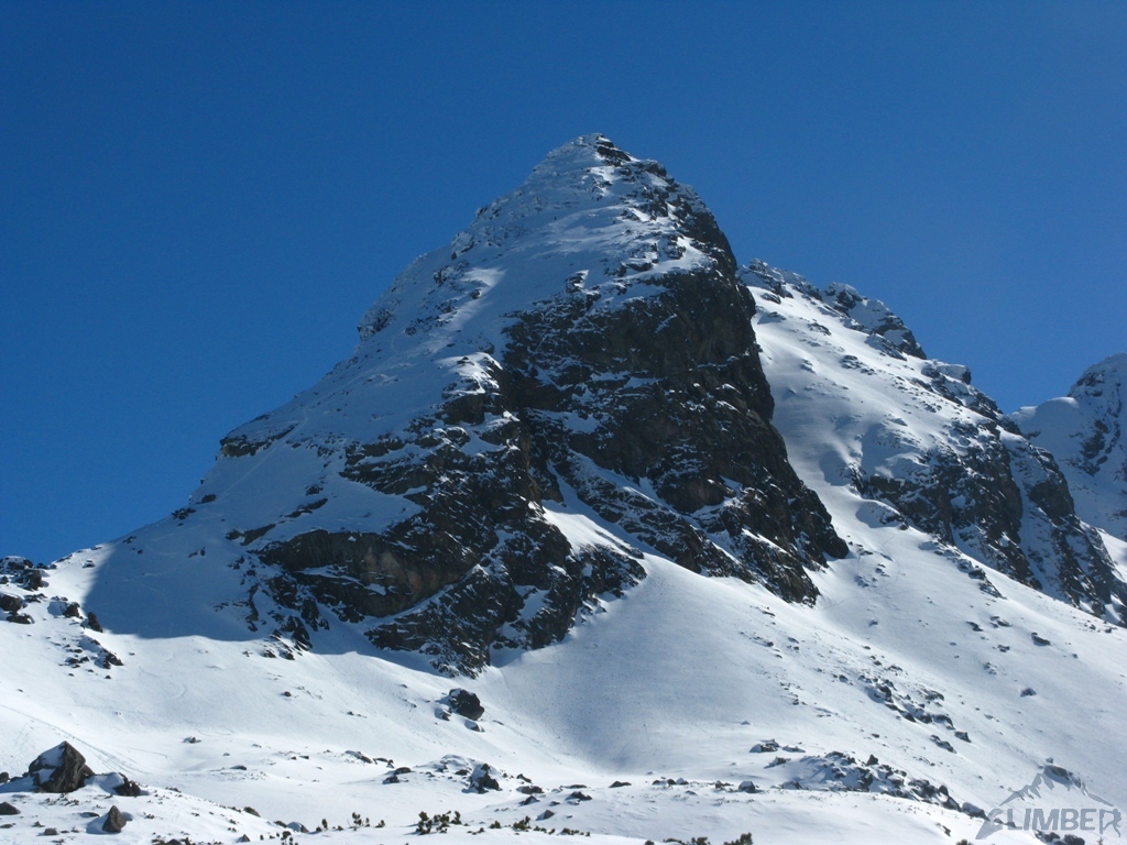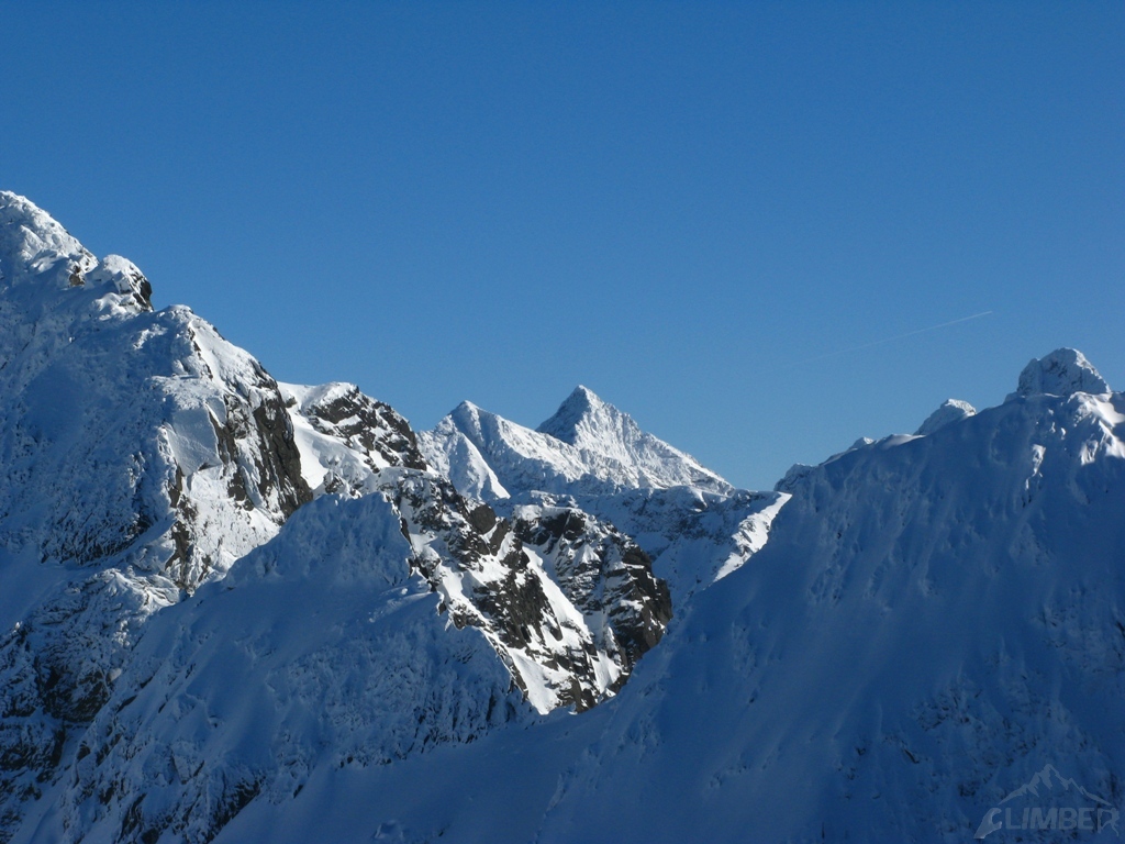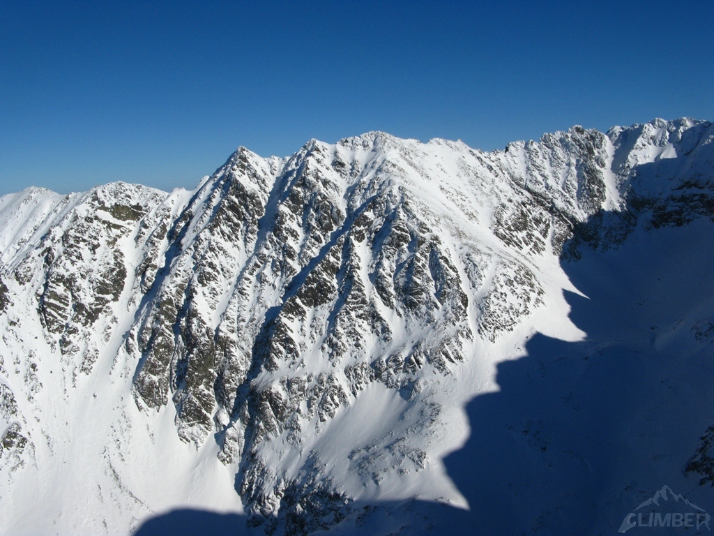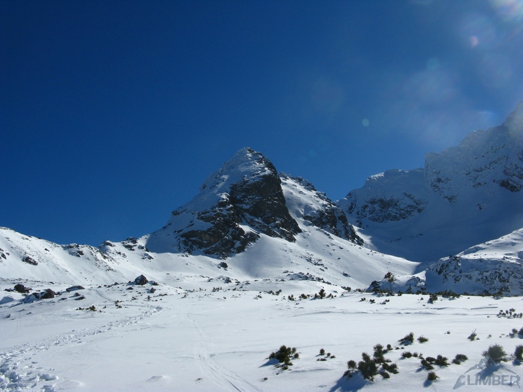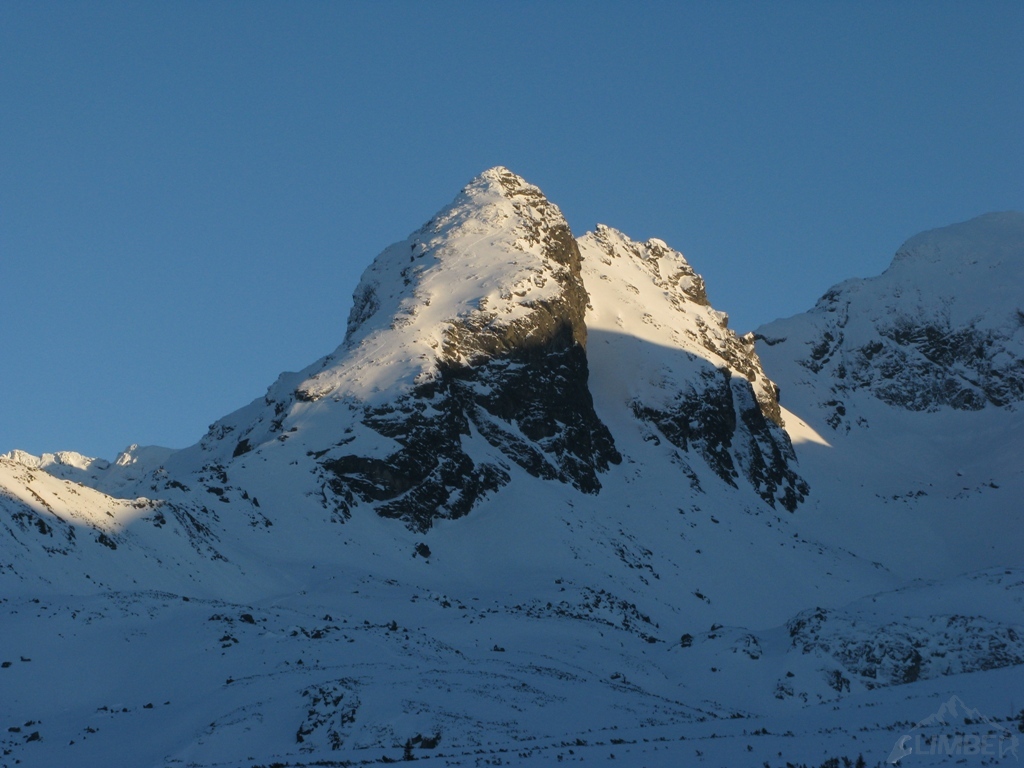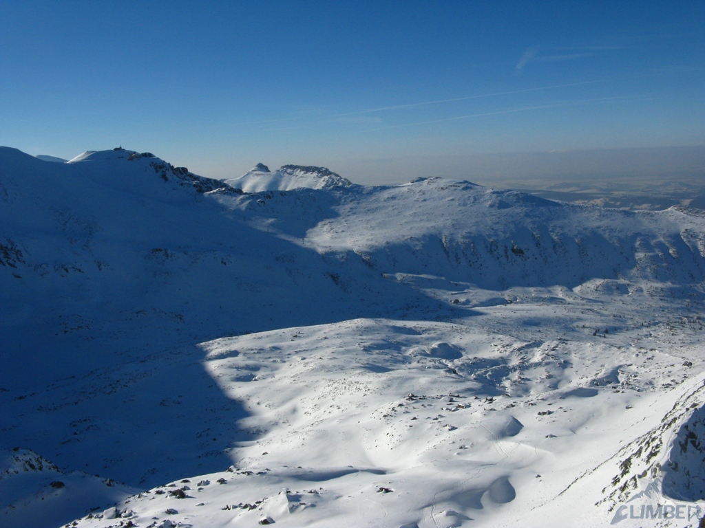 Weekend z Ulą na Hali. Pierwszego dnia wychodzimy na Kościelec, przy okazji trenujemy poruszanie się na lotnej, hamowanie czekanem i inne zagadnienia z kursu zimowej turystyki wysokogórskiej. Początkowo chcemy wyjść od strony Czarnego Stawu ale śniegu jest bardzo dużo, więc obchodzimy masyw i na przełęcz dostajemy się od drugiej strony.