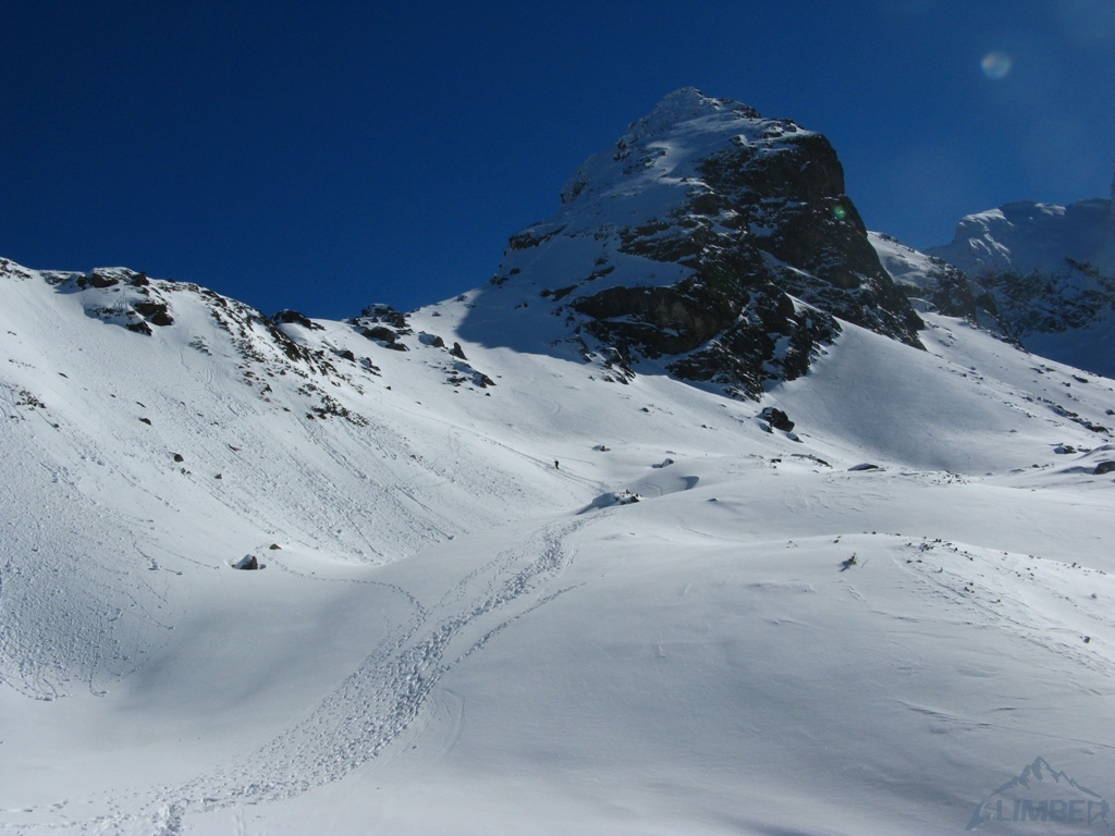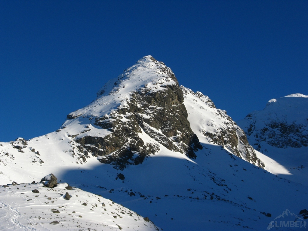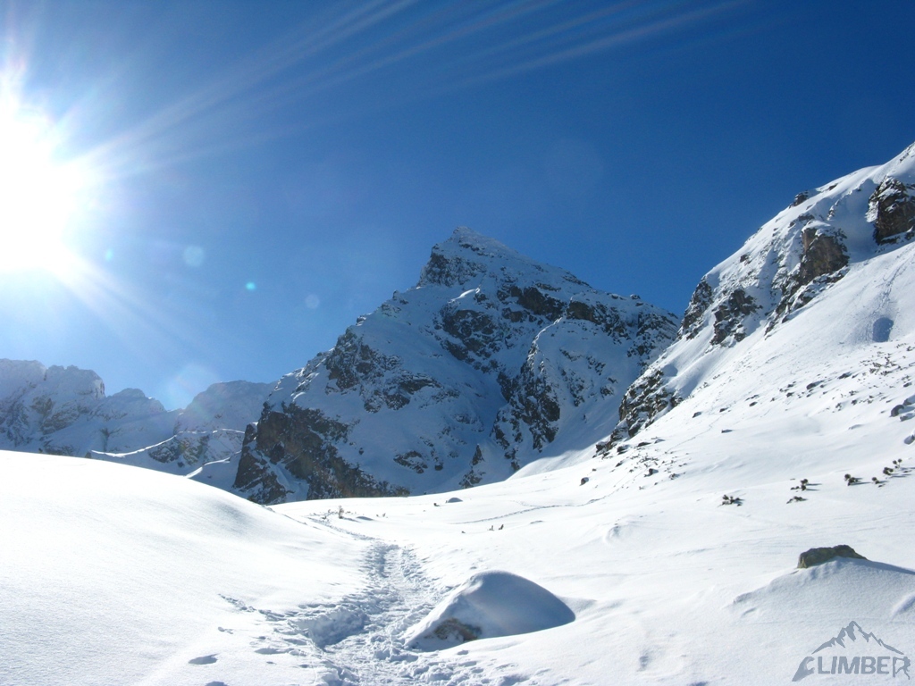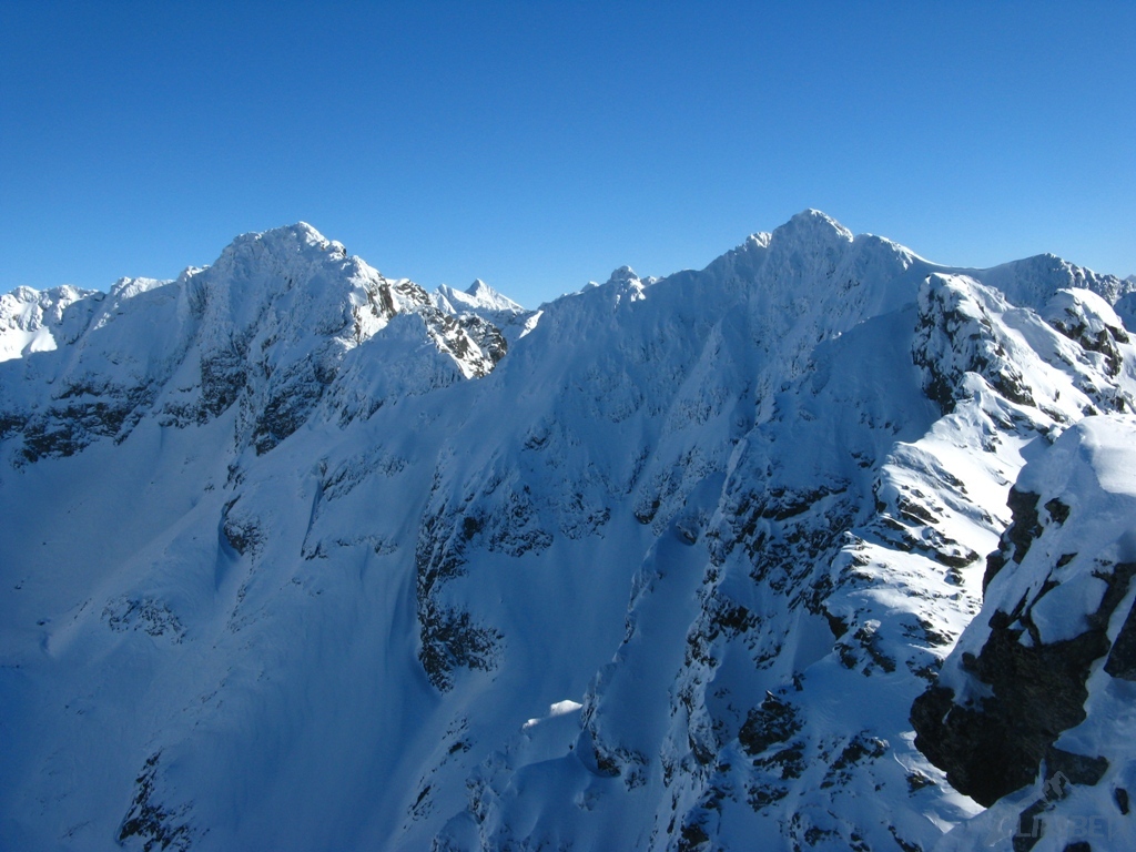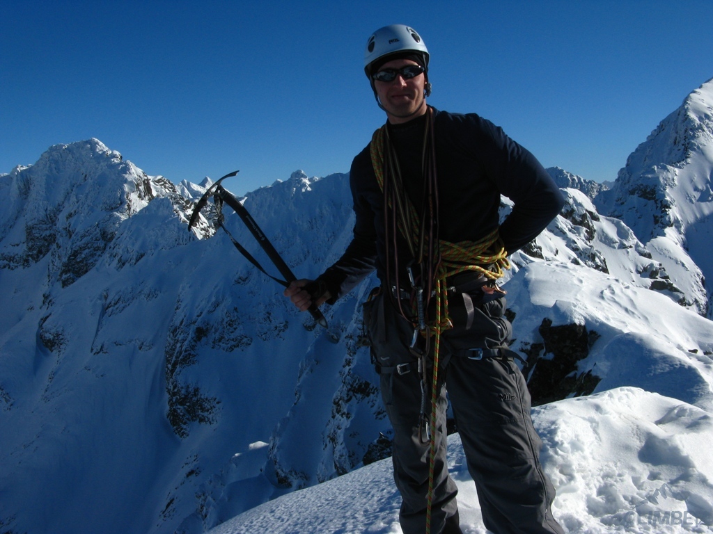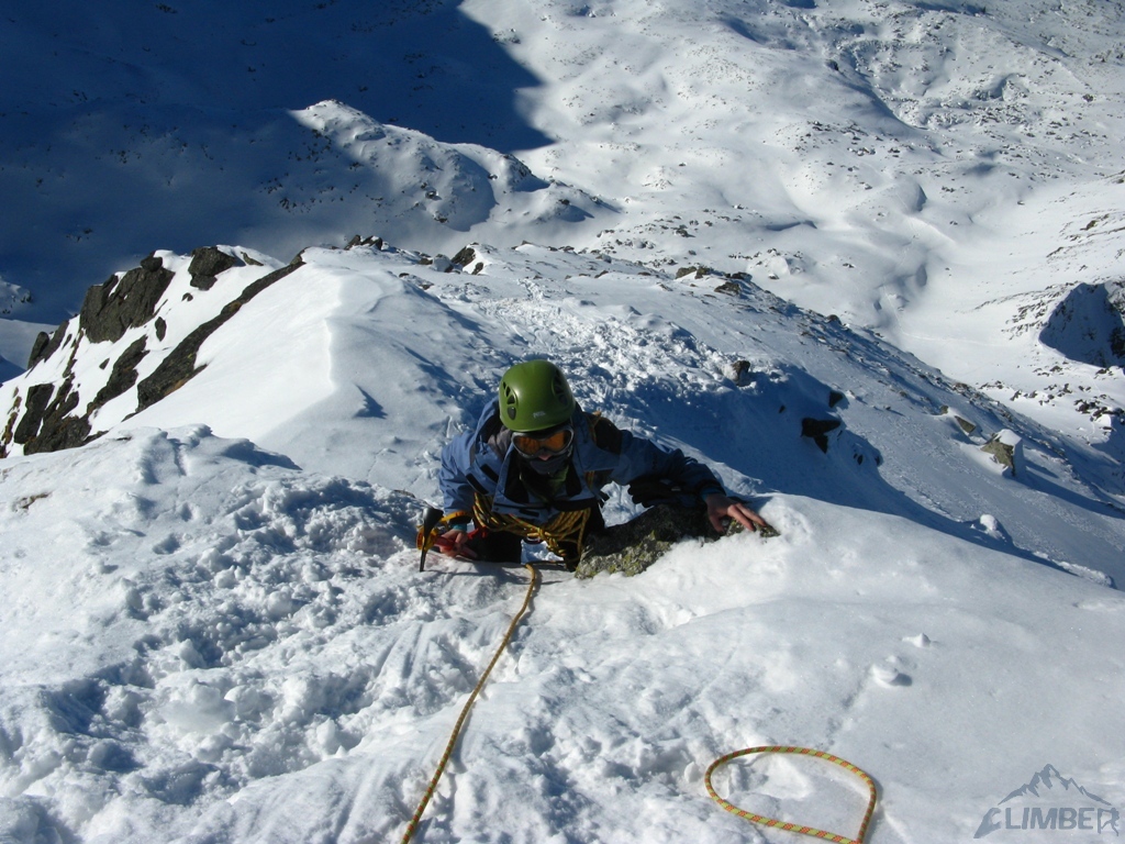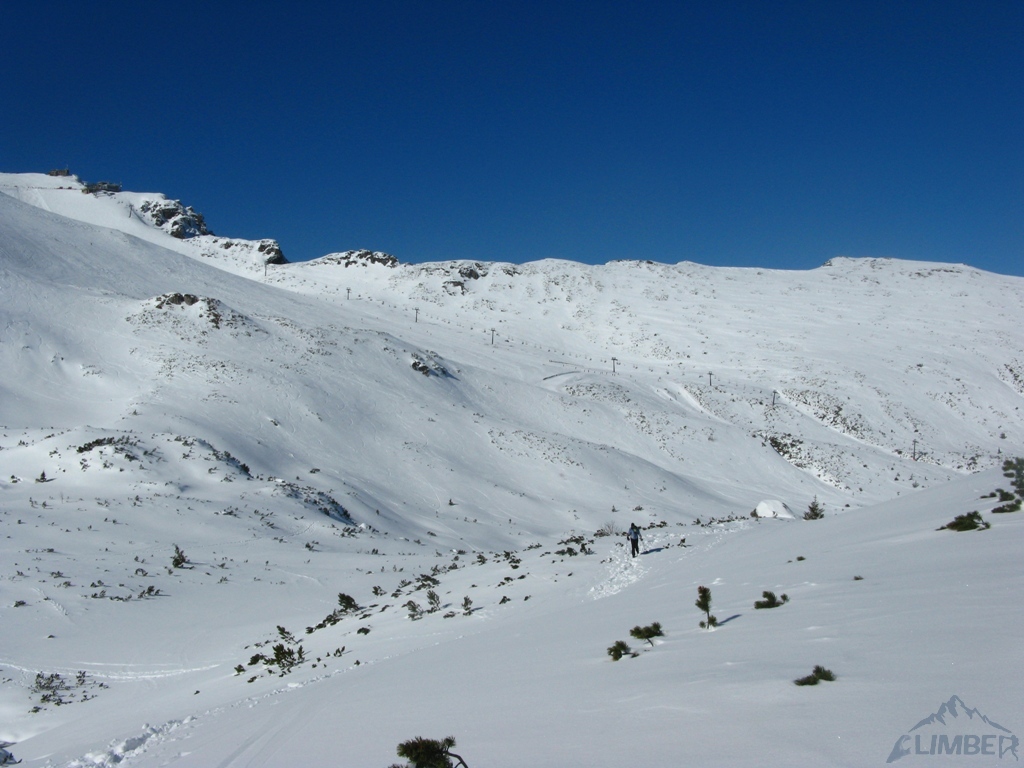 Weekend z Ulą na Hali. Pierwszego dnia wychodzimy na Kościelec, przy okazji trenujemy poruszanie się na lotnej, hamowanie czekanem i inne zagadnienia z kursu zimowej turystyki wysokogórskiej. Początkowo chcemy wyjść od strony Czarnego Stawu ale śniegu jest bardzo dużo, więc obchodzimy masyw i na przełęcz dostajemy się od drugiej strony.