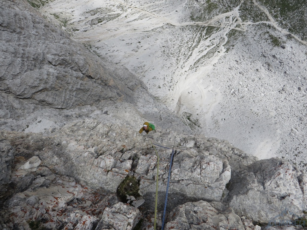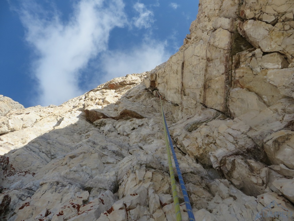 PS. Kolejnego, ostatniego dnia pobytu w planach mieliśmy jeszcze bardzo ładną, wielowyciągową obitą drogę Nikibi na Lastoni di Formin ale niestety nie udało nam się jej namierzyć 😉. Dysponowaliśmy błędnym opisem dojścia i po dwóch godzinach krążenia pod ogromną ścianą, gdzie wszystko wyglądało podobnie, poddaliśmy się. Tegoroczną przygodę z Dolomitami kończymy mimo wszystko w świetnych humorach, z kilkoma świetnymi drogami na koncie.