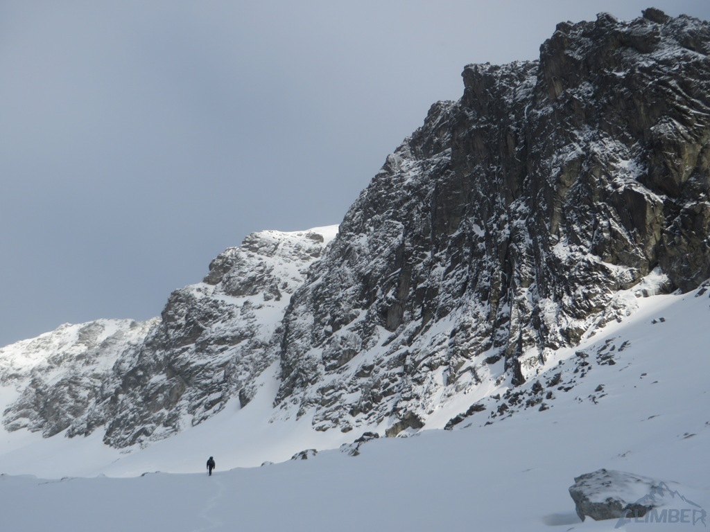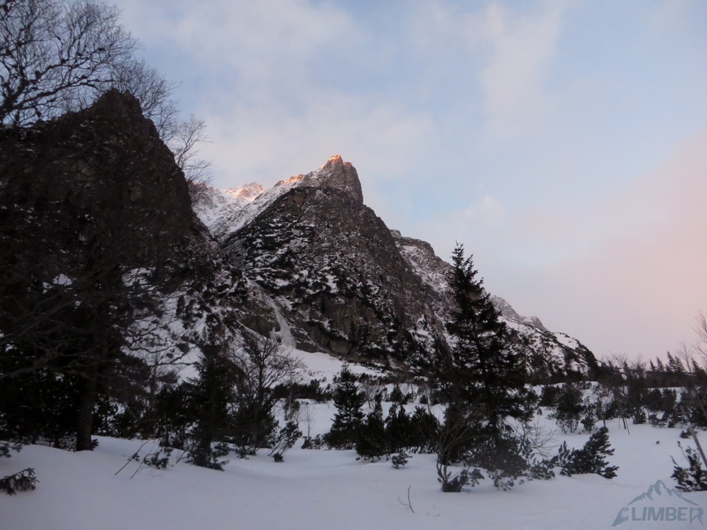 Pogoda i warunki nadal nie pozwalają by zaatakować jakąś dłuższą drogę, na dodatek po ostatniej odwilży i ponownych mrozach razem z Jackiem spodziewamy się dobrych warunków na słonecznych wystawach. Po przemyśleniu sprawy wracamy do pomysłu naszego kolegi, Madnessa, znanego miłośnika dróg Motyki :) i wybieramy drogę tria Motyka, Brüll, Zamkovsky na Jaworowym Szczycie. Tym razem podchodzę na nartach, dlatego też pod nasz cel docieramy osobno w różnym tempie ;)