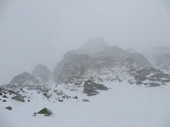 Minął prawie miesiąc od pierwszego zimowego wspinania w tym sezonie więc motywacja do wyjazdu była bardzo duża. Niestety po raz kolejny sypnęło więc ambitne cele odpadają – dlatego też kierujemy się do Doliny Kieżmarskiej. Ponieważ śniegu jest dużo, a wspinania ma być niewiele – decydujemy się z Ryśkiem na zabranie nart. Podejście pod północną ścianę Małego Kieżmarskiego mija więc szybko i przyjemnie. Na miejscu okazuje się, że śniegu jest więcej niż myśleliśmy, na dodatek wspinają się nieliczni – w tym jeden zespół na Stanisławskim (szacun!). Dlatego też postanawiamy zrobić szybkie przejście 3-wyciągowej drogi No a co na Skrajnym Strażniku – 2 lata temu robiliśmy drogę biegnąca kilka metrów na lewo (No a co) więc teren był już nam znany.