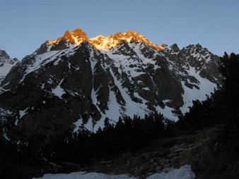 Pomysł na wejście na Szatana Czerwonym Żlebem podpatrzyłem od kolegi Łukasz (Madnessa) prowadzącego blog Mountain Adventure. Zbieramy sporą ekipę i wcześnie rano podchodzimy do Mięguszowieckiej. Warunki w żlebie są bardzo dobre, dlatego rezygnujemy z asekurowania się. Grań jest już łatwa, a na zejściu jedyne trudne miejsce pokonujemy zjazdem. Szybka i sprawna akcja i kolejna piękna góra zdobyta - tym razem drogą "prawie wspinaczkową".