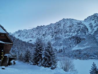 Po powrocie z Czarnego Zacięcia meldujemy się nad Morskim Okiem, suszymy sprzęt i szykujemy do wyjścia na Kazalnicę przed świtem. Poza naszą trójką mimo pięknej pogody i ostatniego weekendu kalendarzowej zimy (nie sezonu zimowego bo ten trwa odkąd i dopóki są warunki!) w schronisku pojawia się tylko jeden zespół. I choć ciężko w to uwierzyć, bo przecież w okolicy są dziesiątki popularniejszych dróg – również planuje robić Ła-Pę! Godząc się z możliwymi konsekwencjami nie zmieniamy jednak planu i puszczamy chłopaków ponad godzinę wcześniej wierząc im, że w parze z młodością pójdzie i szybkość 😊.