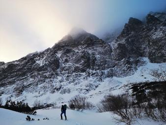 W mroźny i wilgotny niedzielny poranek podchodzimy do Morskiego Oka by mimo znacznego opadu śniegu w poprzednich dniach spróbować przejść Sprężynę na Kotle Kazalnicy. Kluczowe skalne odcinki na drodze nie są podatne na warunki, zdajemy sobie jednak sprawę, że pozostałe będzie trzeba odśnieżać i nastawiamy się na długi dzień w ścianie. Na Czarnym Stawie chmury są tak gęste, że mamy problem ze zlokalizowaniem ściany – finalnie jednak ku swojemu zdziwieniu łapiemy ślady prowadzące pod Kocioł. Na miejscu okazuje się, że pomimo kiepskich warunków na tą dość wymagającą przecież drogę chętny jest jeszcze jeden zespół!