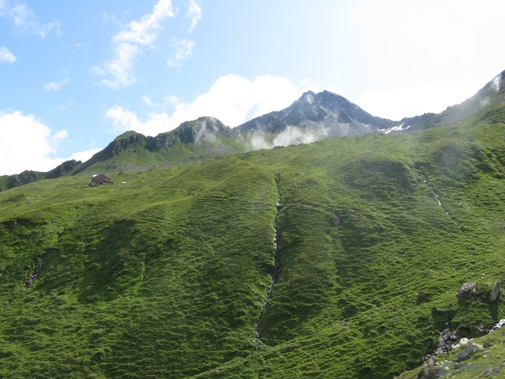 Górujący nad Mayrhofen Ahornspitze (2973 m.) od pierwszego dnia przykuwał nasz wzrok, tym bardziej, że widzieliśmy go cały czas z naszego apartamentu. W końcu więc, ostatniego dnia pobytu w Zillertal, postanawiamy zdobyć ten szczyt. Wyjeżdżamy kolejką do Ahornhütte, skąd ruszamy w kierunku naszego celu. Na grani szczytowej dopadają nas gęste chmury i mocno wieje, dlatego też szybko "odklepujemy" wierzchołek i uciekamy z powrotem do doliny - tutaj jest dużo lepiej więc wybieramy dłuższą drogę zejściową (2300 metrów przewyższenia) i niespiesznie schodzimy z powrotem do miasta.
