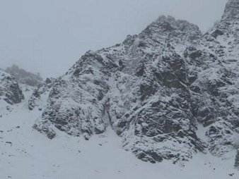 Drugi dzień pobytu na Hali, pogoda nadal do bani 😉. Warunki mało sprzyjające - wszystkie płyty zasypane świeżym śniegiem, wyszukiwanie chwytów i stopni zajmowało sporo czasu, na dodatek mało co trzymało. Trzeci wyciąg zrobiony piątkowym wariantem (wg topo Kardasia). Droga to oczywiście klasyk, radziłbym jednak robić ją w miarę dobrych warunkach bo można się zdziwić i zabawić na niej dłużej niż się planowało...