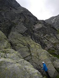 Po przygotowaniu w skałach umawiamy się z Tomkiem na pierwszy wspólny wyjazd na wspinanie w Tatrach. Na celownik obieramy popularną kombinację dróg kursowych - Załupę H na Zadnim Kościelcu i Gnojka na Kościelcu. Na podejściu dopada nas ulewa ale mimo to nie odpusczamy. Pierwsza droga nie przypada nam do gustu i nie sprawia żadnych problemów - trudności brak a sporo gruzu i rzęchu. Na Gnojku również działamy sprawnie ale tutaj już musimy trochę się sprężyć. Dobra szkoła dla początkujących plus kilka ładnych ruchów - warto zrobić.