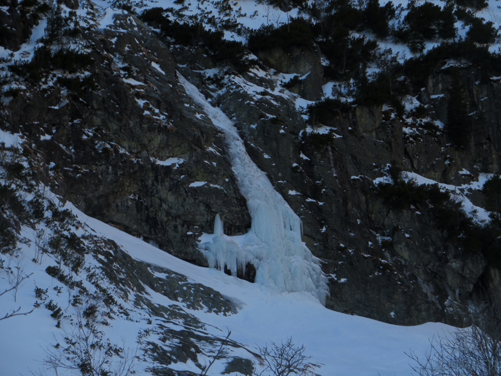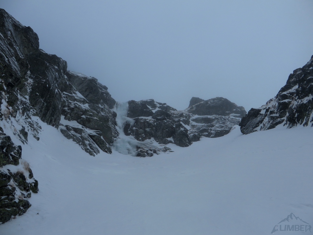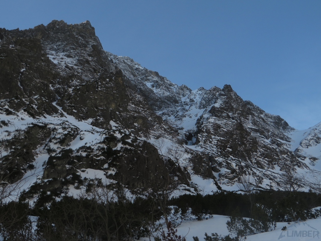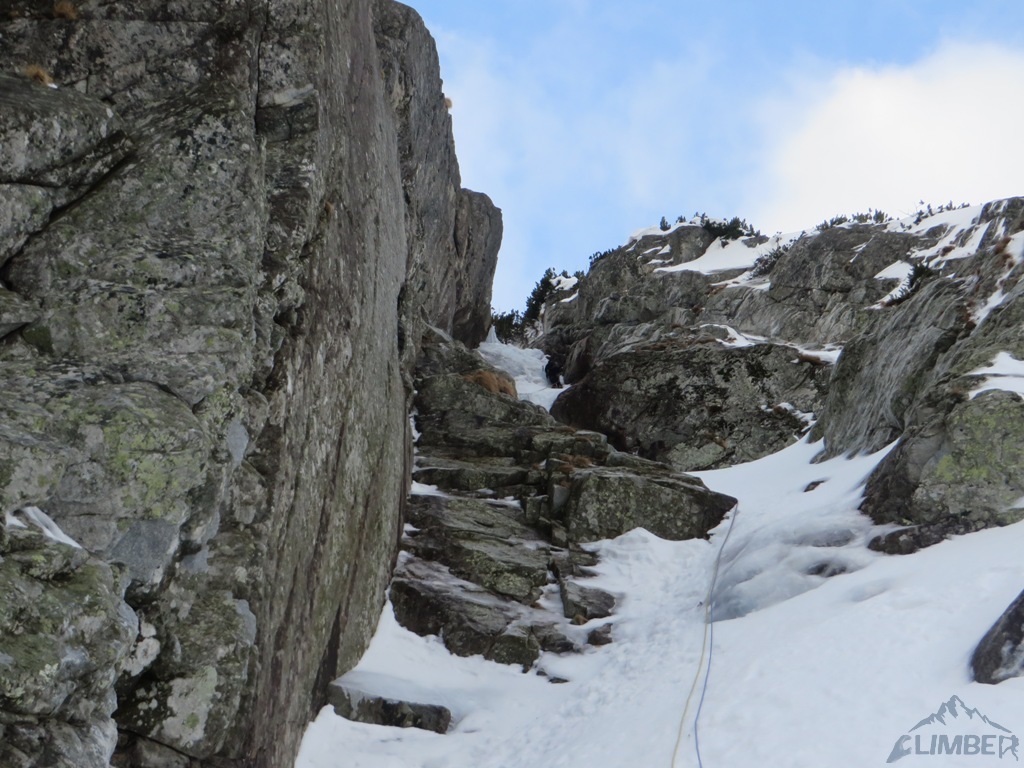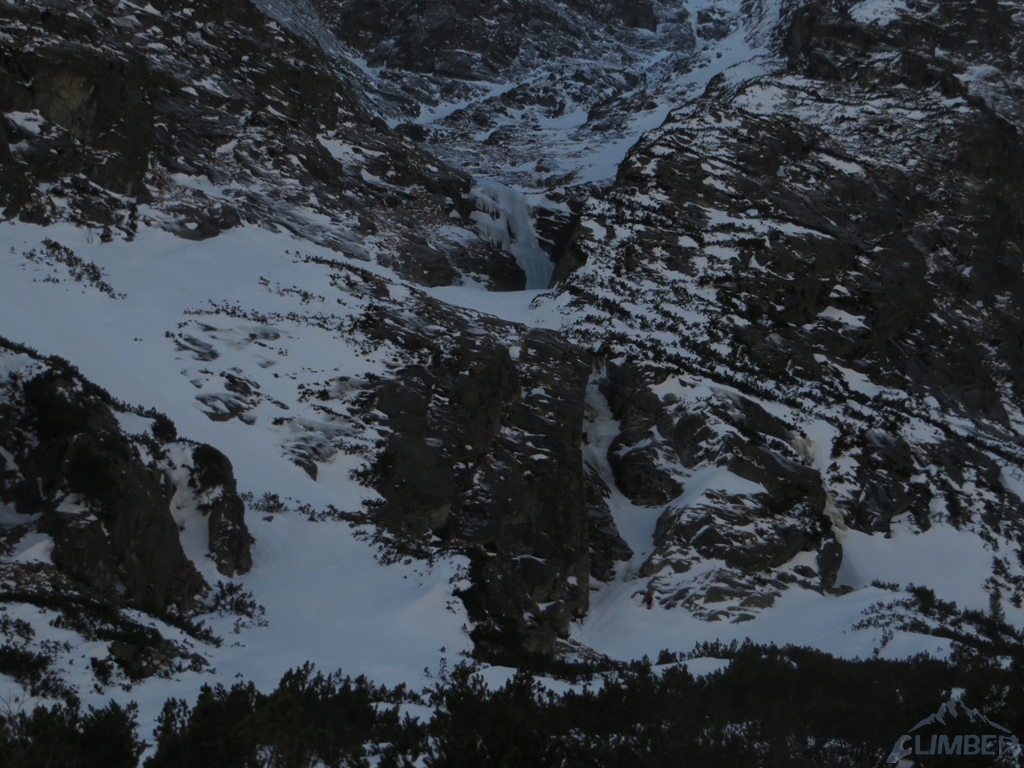 Tym razem czas na wspinanie lodowe i Lodospady Grosza. Od dawna jednak zakładałem, że jeżeli na te lody się wybiorę to będę chciał iść dalej żlebem, przejść dodatkowy lodospad u jego wylotu i wyjść na Sławkowski Szczyt – tym sposobem uda się zrobić całą drogę, nie tylko jej początek. Dołącza do mnie Mariusz, który zgłaszał chęć wzięcia udziału w konkretnej wyrypie, stąd też wydaje się moim pomysłem zachwycony. U wylotu żlebu meldujemy się dość późno, dodatkowo na Dolnym Groszu wspinają się już Słowacy, a kilku kolejnych chętnych wkrótce stawia się obok (w tym nasi znajomi z KW BB).