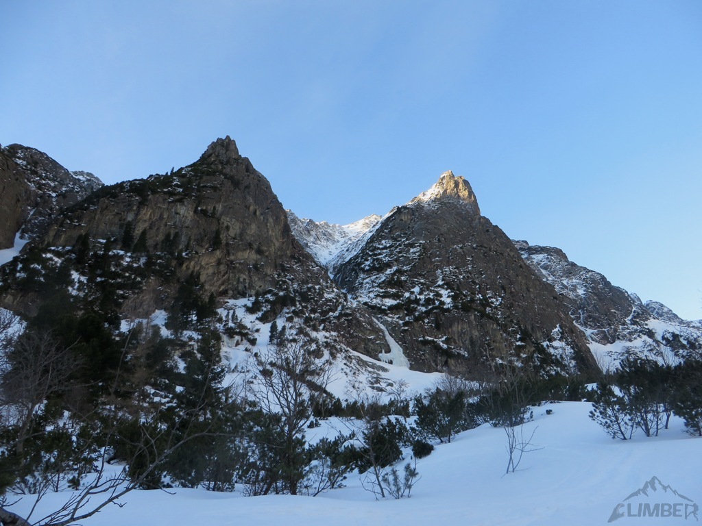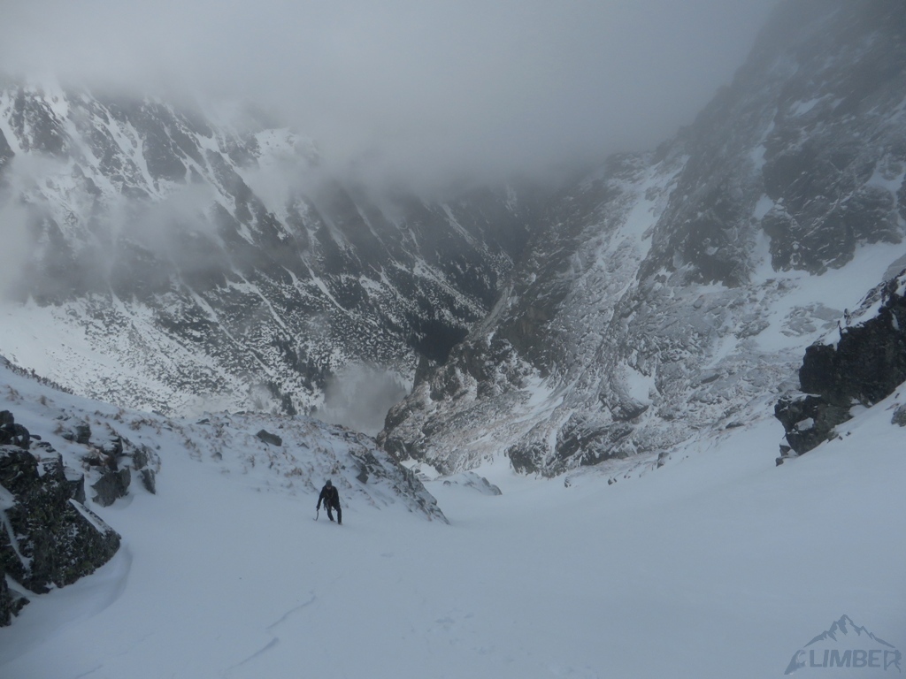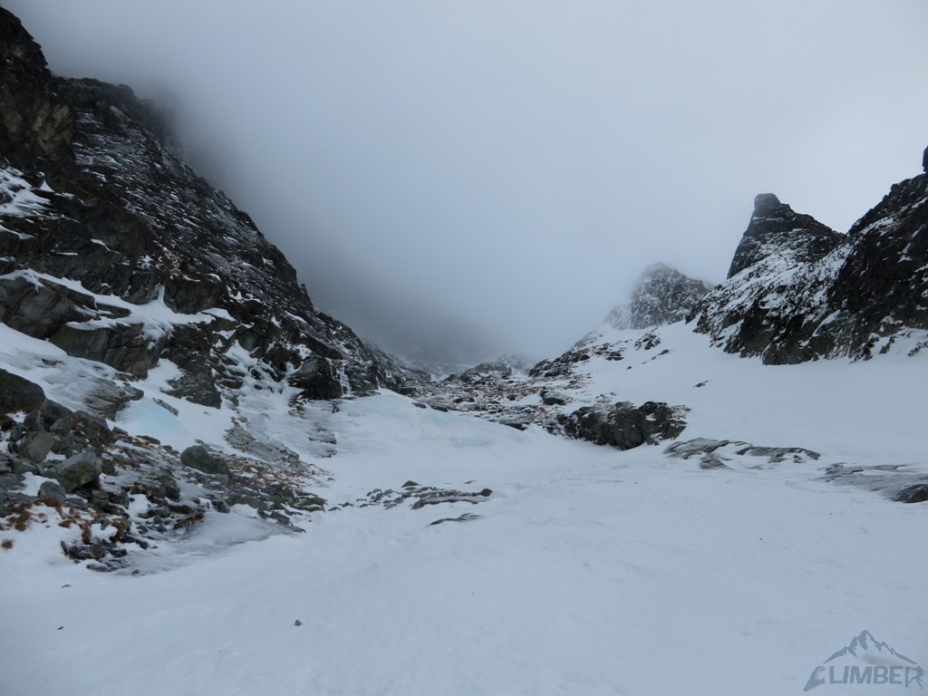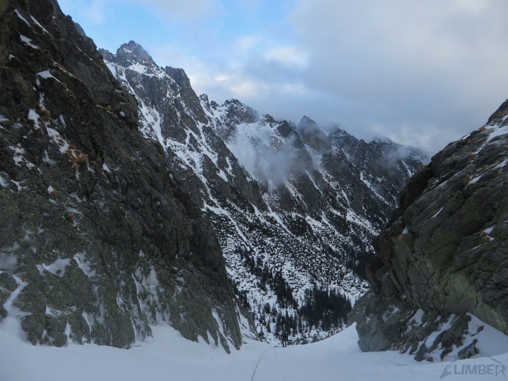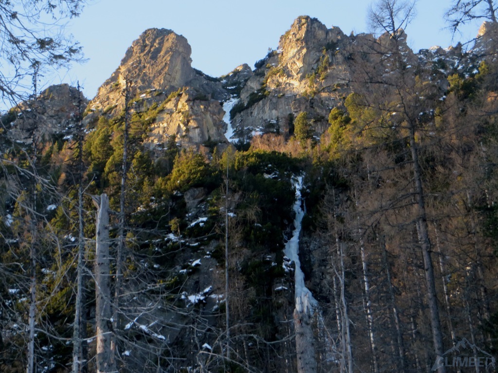 Tym razem czas na wspinanie lodowe i Lodospady Grosza. Od dawna jednak zakładałem, że jeżeli na te lody się wybiorę to będę chciał iść dalej żlebem, przejść dodatkowy lodospad u jego wylotu i wyjść na Sławkowski Szczyt – tym sposobem uda się zrobić całą drogę, nie tylko jej początek. Dołącza do mnie Mariusz, który zgłaszał chęć wzięcia udziału w konkretnej wyrypie, stąd też wydaje się moim pomysłem zachwycony. U wylotu żlebu meldujemy się dość późno, dodatkowo na Dolnym Groszu wspinają się już Słowacy, a kilku kolejnych chętnych wkrótce stawia się obok (w tym nasi znajomi z KW BB).