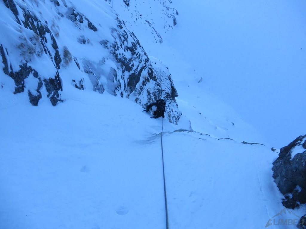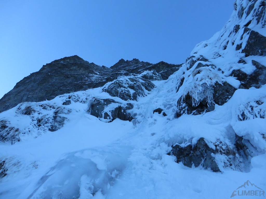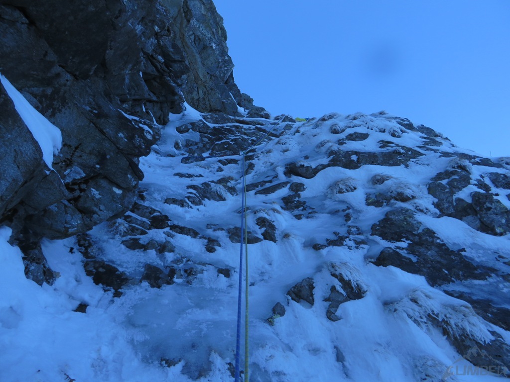 Wycena: M5   Wycena uzupełniająca: war. M4/M5   Asekuracja: R2   Długość [m]: 500   Wyciągi: 12   Czas [h]: 5   Wystawa: N   Ocena: 8/10   Komentarz: