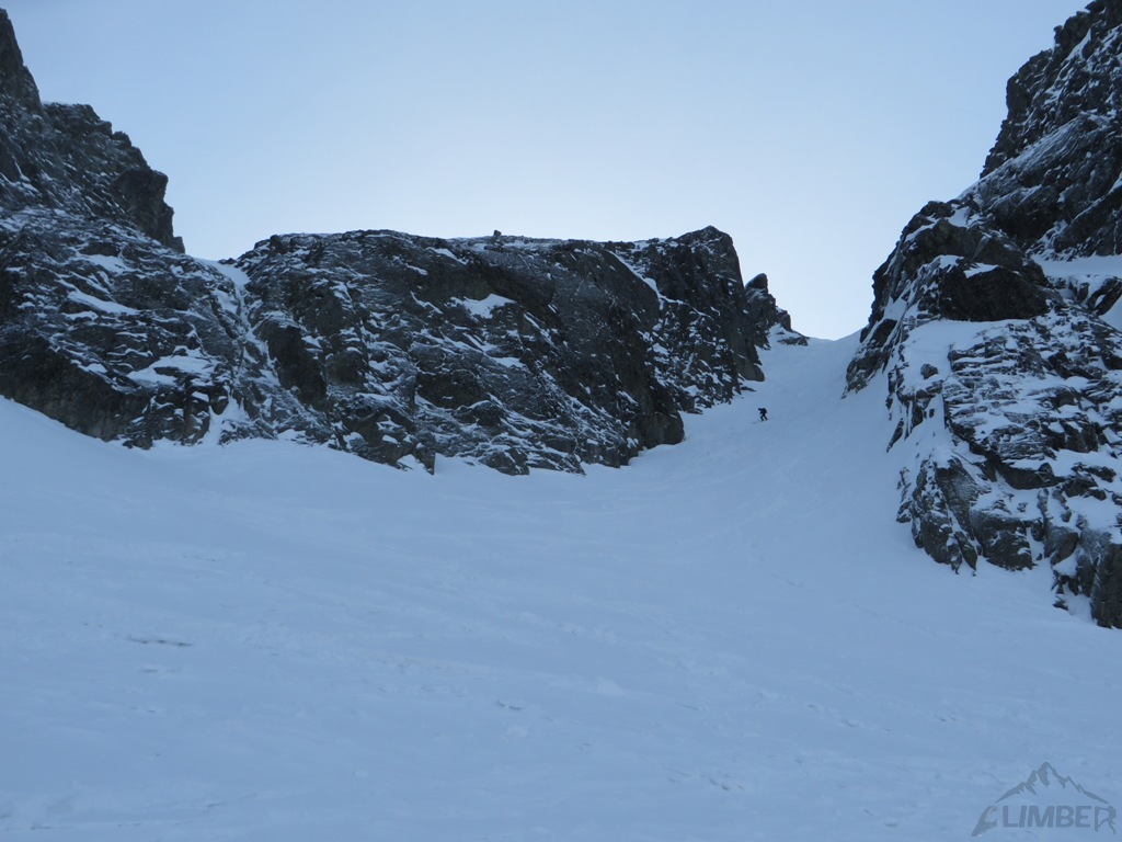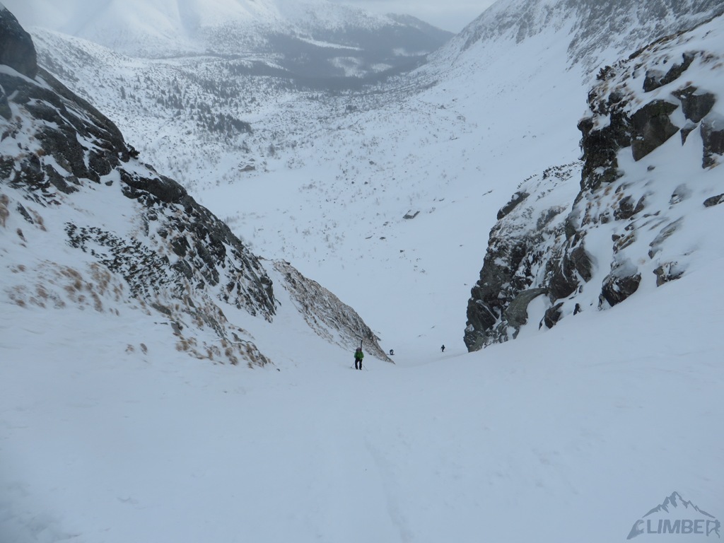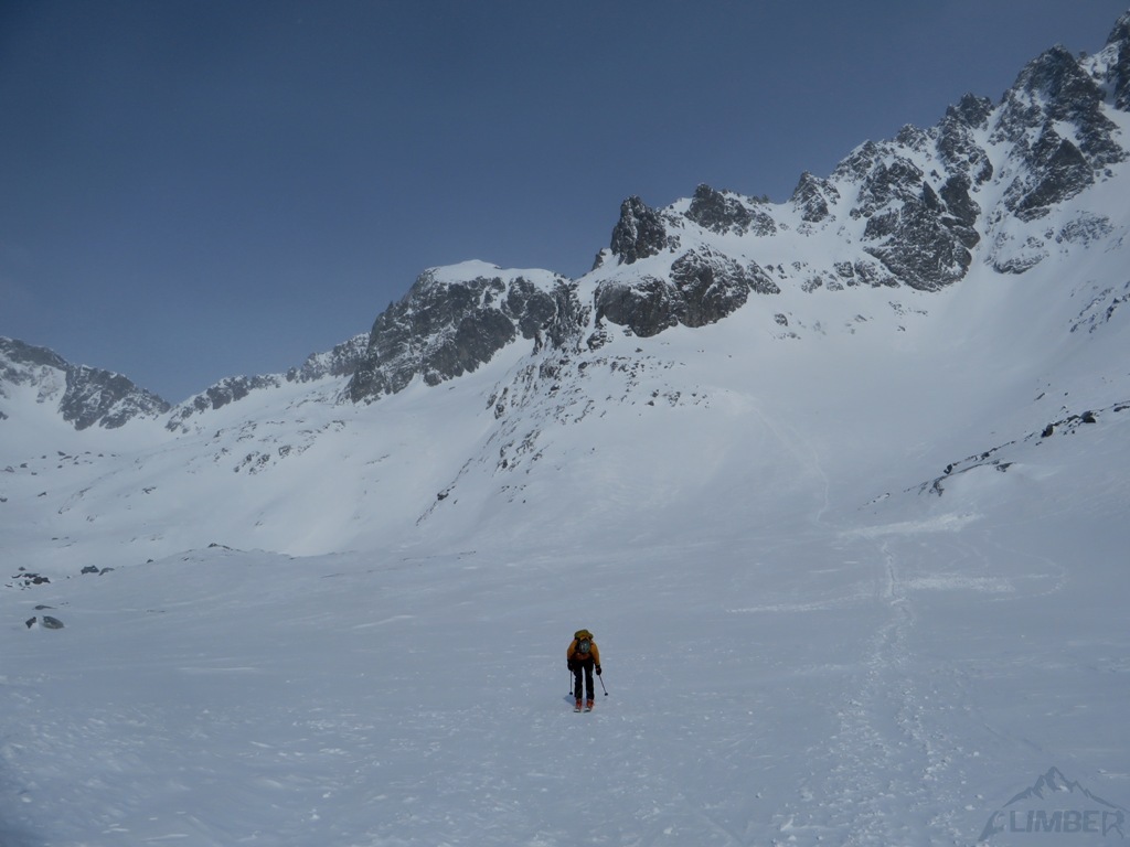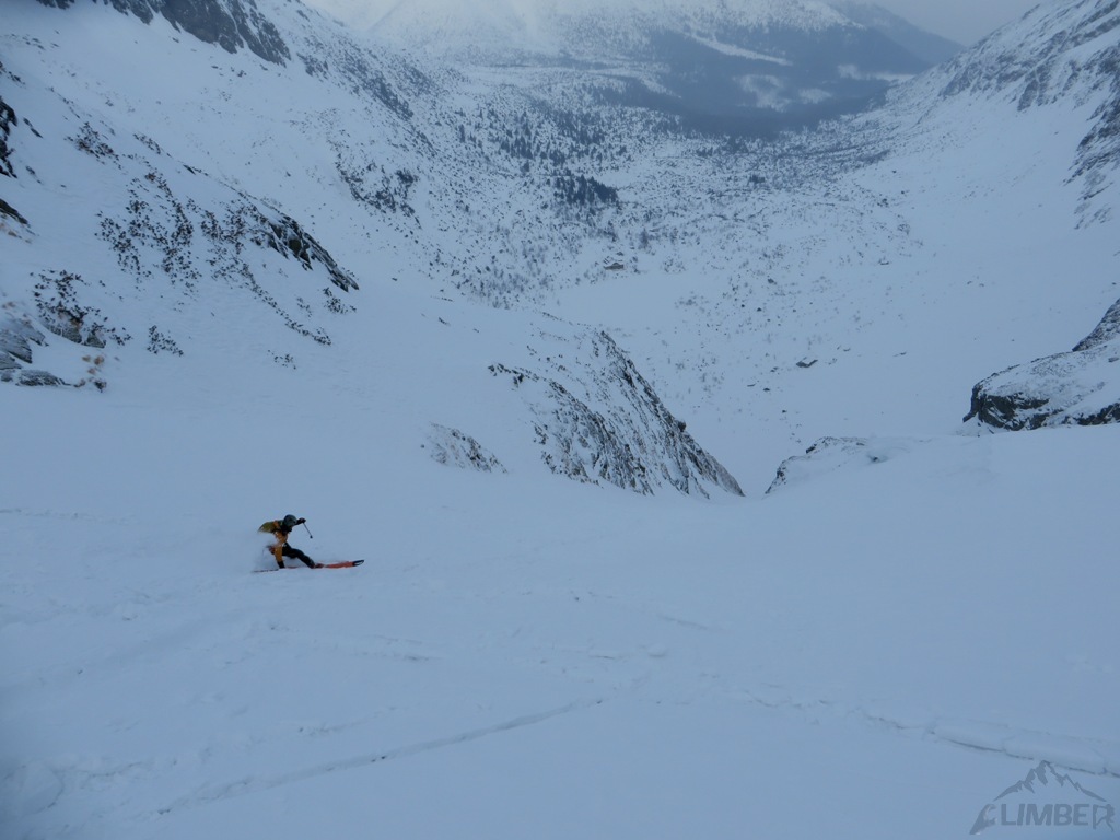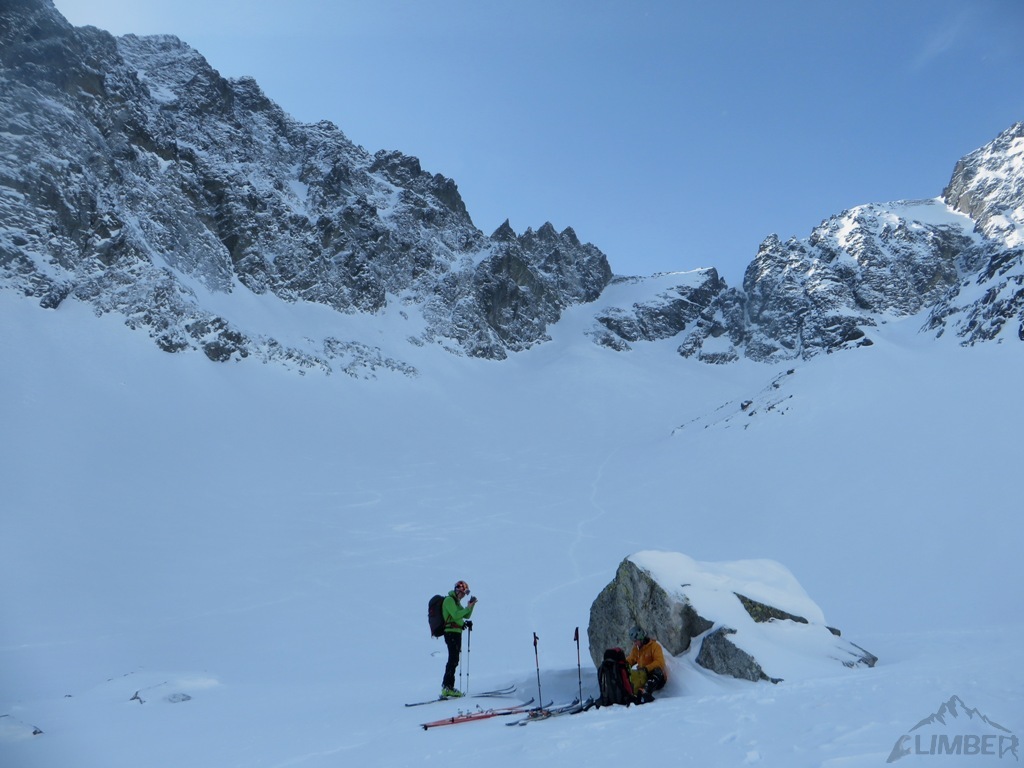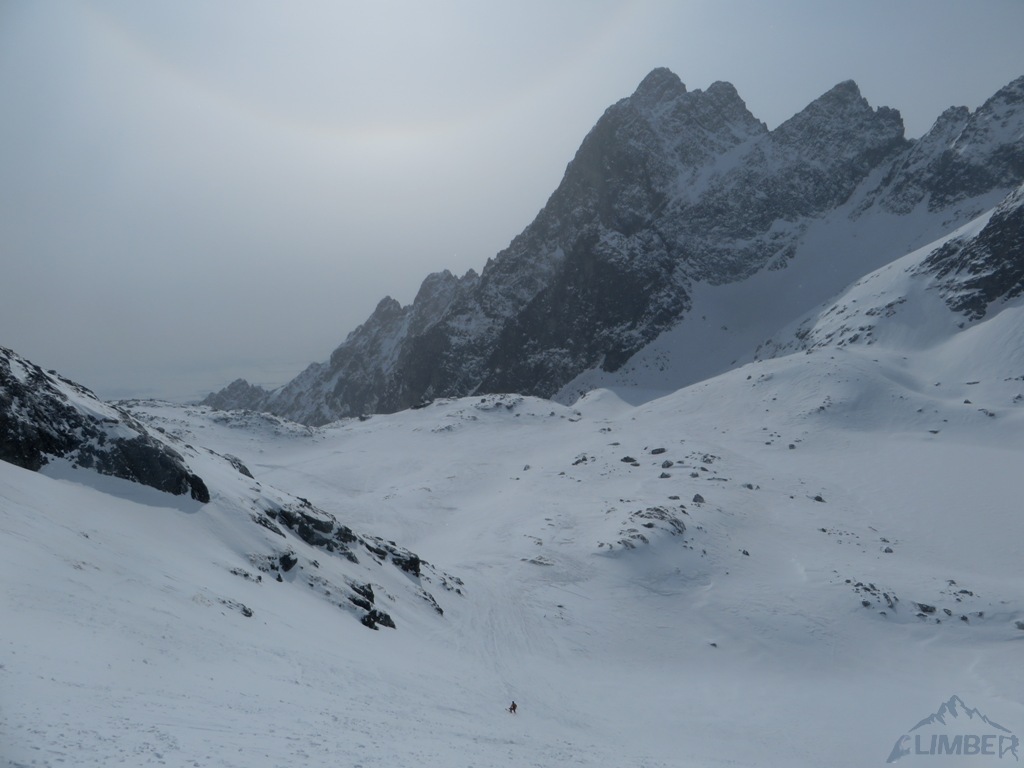 Na drugi dzień obozu prognozy nie są najlepsze – do ponad dwudziestostopniowego mrozu ma dojść zachmurzenie i słaby opad śniegu. Dlatego też wspinanie odkładam do środy i wraz z Jurasem i Kućką ruszam na skiturę, o której od dawna myślałem – przez Baranią Przełęcz do Chaty Teryho i z powrotem do Zielonego Stawu. Okazuje się, że poza mrozem prognozy nie sprawdzają się – poranne chmury rozchodzą się i cały dzień możemy cieszyć się pięknym niebieskim niebem.