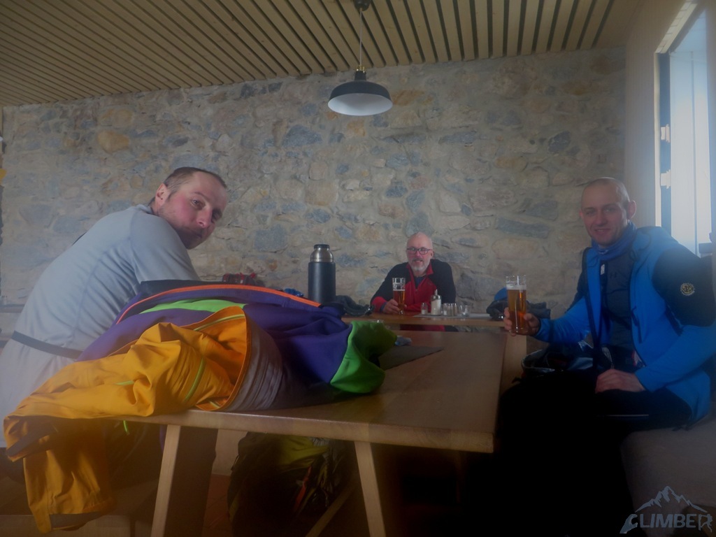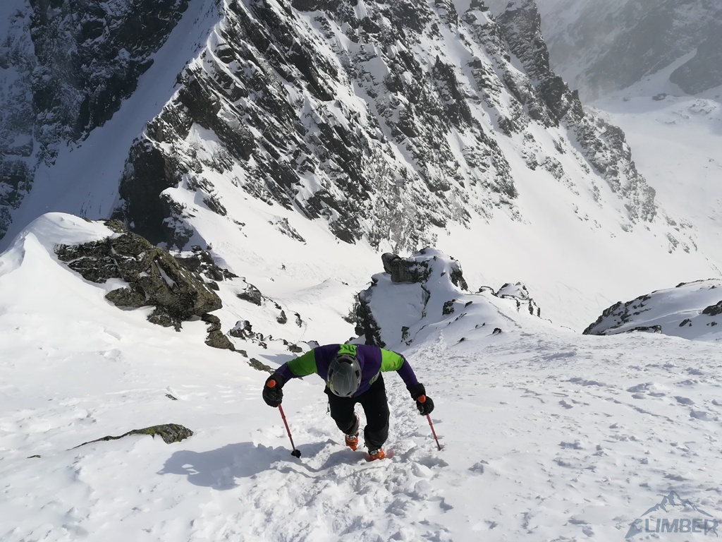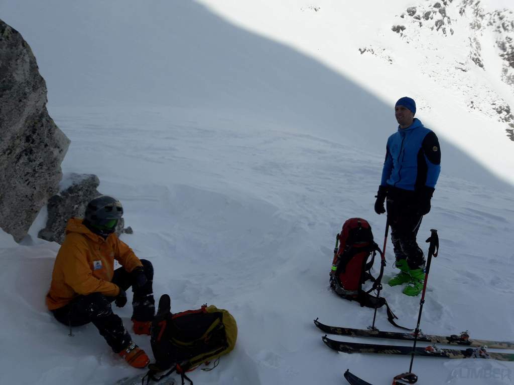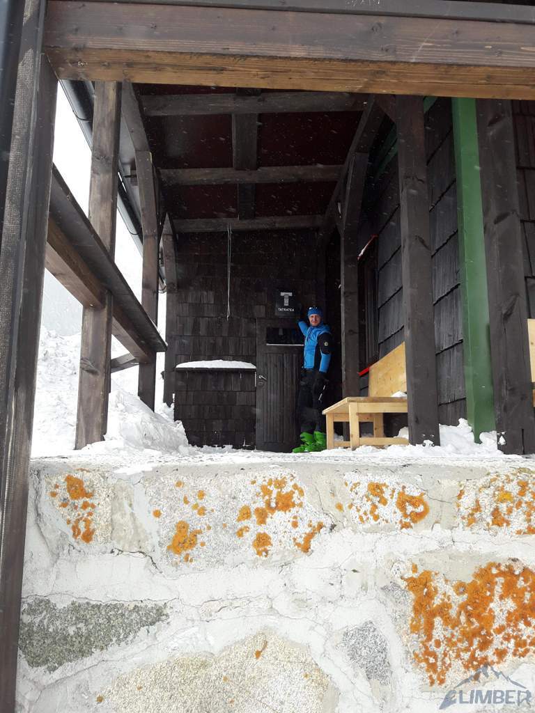 Na pierwszym podejściu miejscami musimy kopać się w śniegu, mimo to sprawnie docieramy na Przełęcz, cieszymy się Słońcem (do Kieżmarskiej praktycznie nie dociera :)) i szybko zjeżdżamy do Terinki. W chacie spożywamy regeneracyjne piwko i ruszamy z powrotem na Przełęcz – mimo dużego mrozu marcowe Słońce mocno nam dopieka.