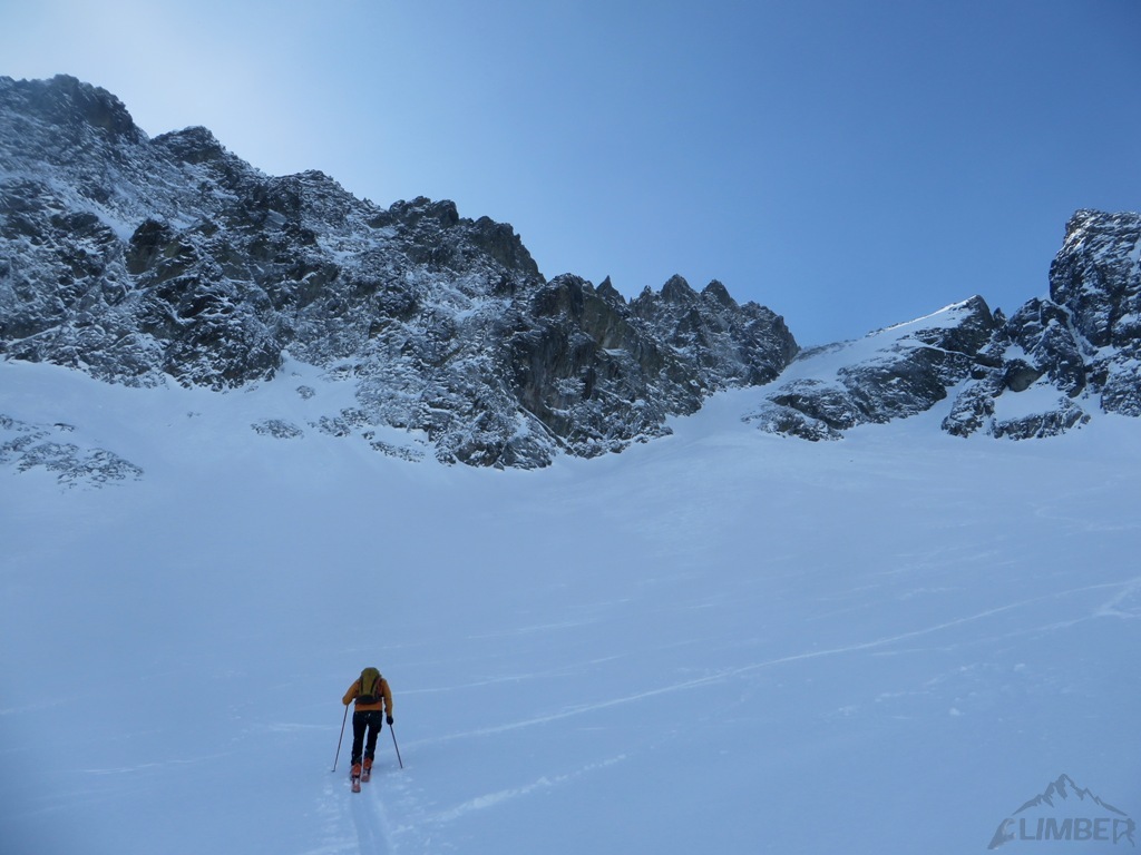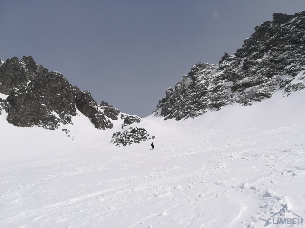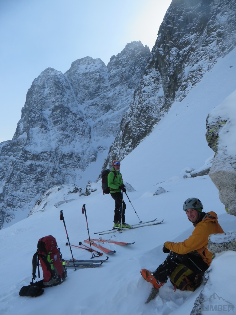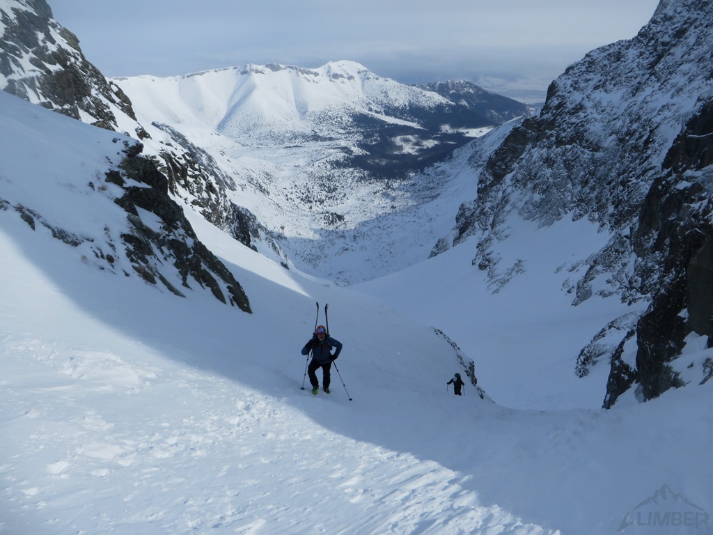 Na pierwszym podejściu miejscami musimy kopać się w śniegu, mimo to sprawnie docieramy na Przełęcz, cieszymy się Słońcem (do Kieżmarskiej praktycznie nie dociera :)) i szybko zjeżdżamy do Terinki. W chacie spożywamy regeneracyjne piwko i ruszamy z powrotem na Przełęcz – mimo dużego mrozu marcowe Słońce mocno nam dopieka.