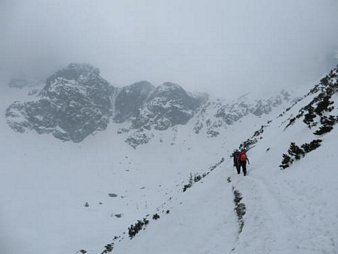W mroźny i wilgotny niedzielny poranek podchodzimy do Morskiego Oka by mimo znacznego opadu śniegu w poprzednich dniach spróbować przejść Sprężynę na Kotle Kazalnicy. Kluczowe skalne odcinki na drodze nie są podatne na warunki, zdajemy sobie jednak sprawę, że pozostałe będzie trzeba odśnieżać i nastawiamy się na długi dzień w ścianie. Na Czarnym Stawie chmury są tak gęste, że mamy problem ze zlokalizowaniem ściany – finalnie jednak ku swojemu zdziwieniu łapiemy ślady prowadzące pod Kocioł. Na miejscu okazuje się, że pomimo kiepskich warunków na tą dość wymagającą przecież drogę chętny jest jeszcze jeden zespół!