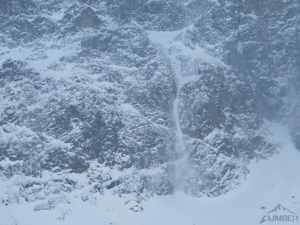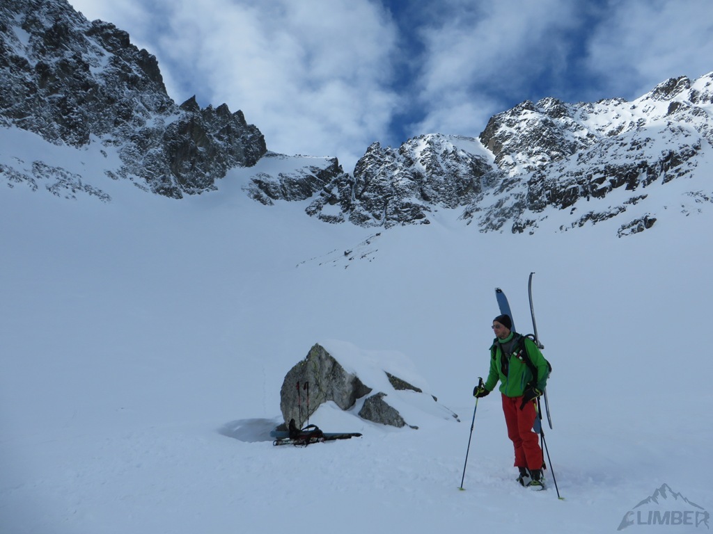 Na sobotę w planach była trudniejsza droga w ścianie Małego Kieżmarskiego - wstałem rano w pełnej gotowości, niestety po chwili otrzymałem smsa, że kolega mający dojść nad Zielony Staw o 7 nie dotrze :) Nie mając przygotowanej ciekawej alternatywy i biorąc pod uwagę to, że również Ula nie dojedzie wieczorem by wybrać się na planowaną w niedzielę turę, postanawiam zakończyć pobyt na obozie dzień wcześniej. Szkoda jednak ładnego poranka, dlatego wraz z Kućką (który także dziś wraca) postanawiamy przejść się jeszcze na turach do Doliny Dzikiej by zaliczyć dodatkowy zjazd stromym żlebem z niej opadającym – Flaszką.