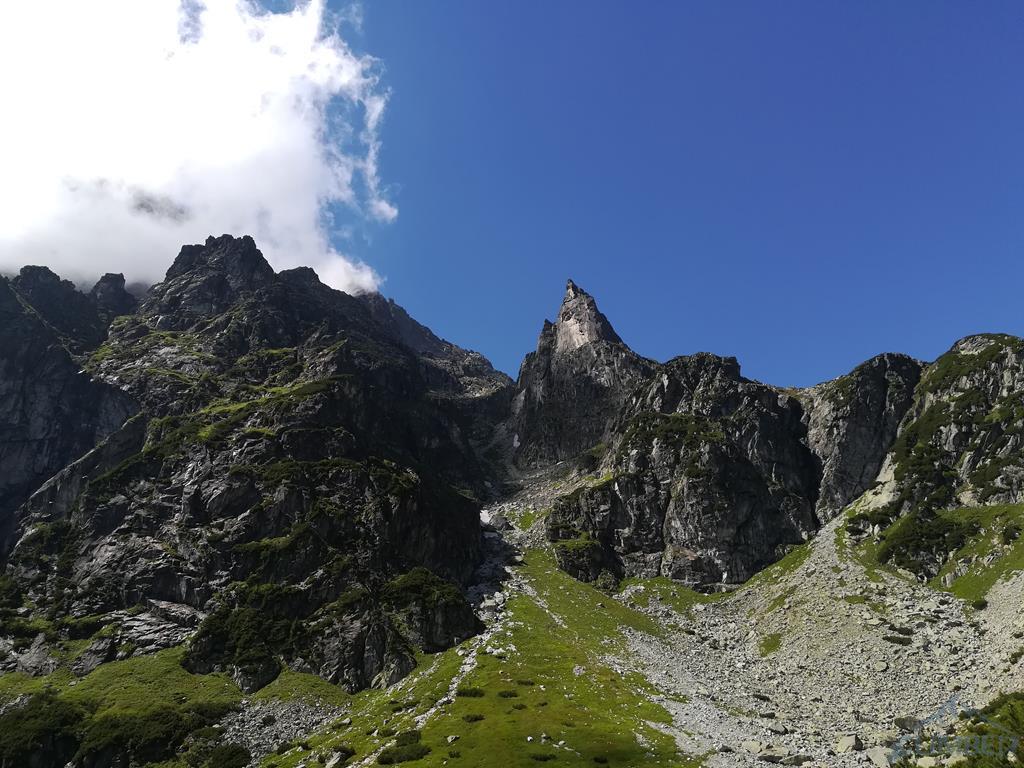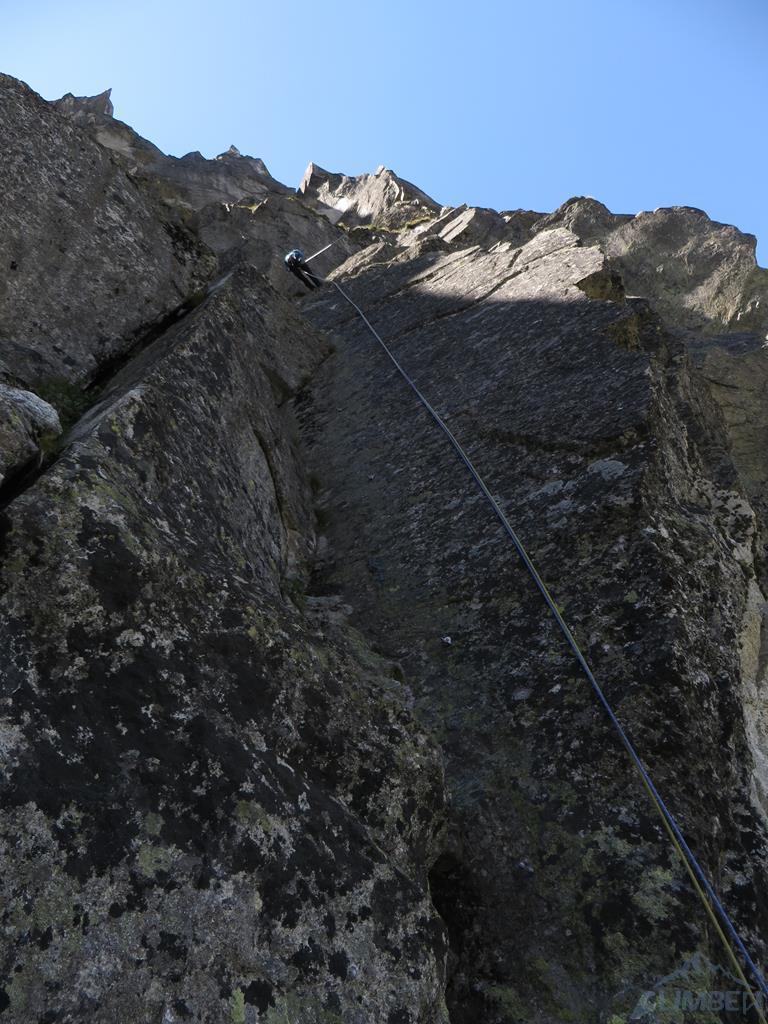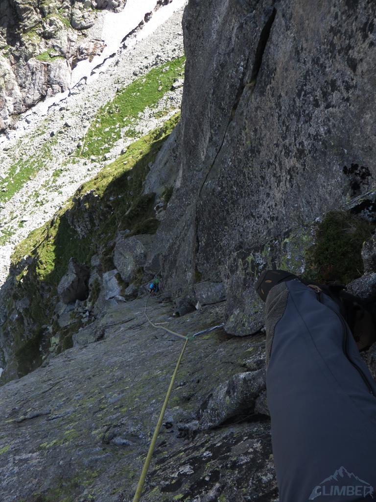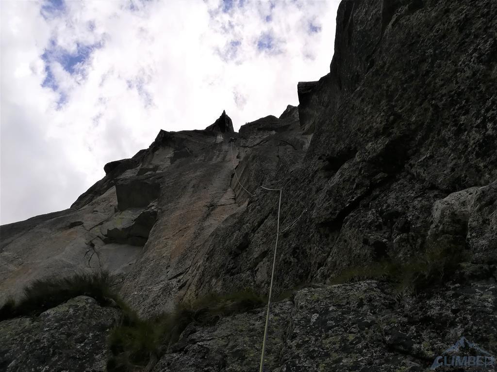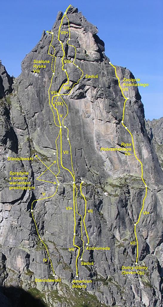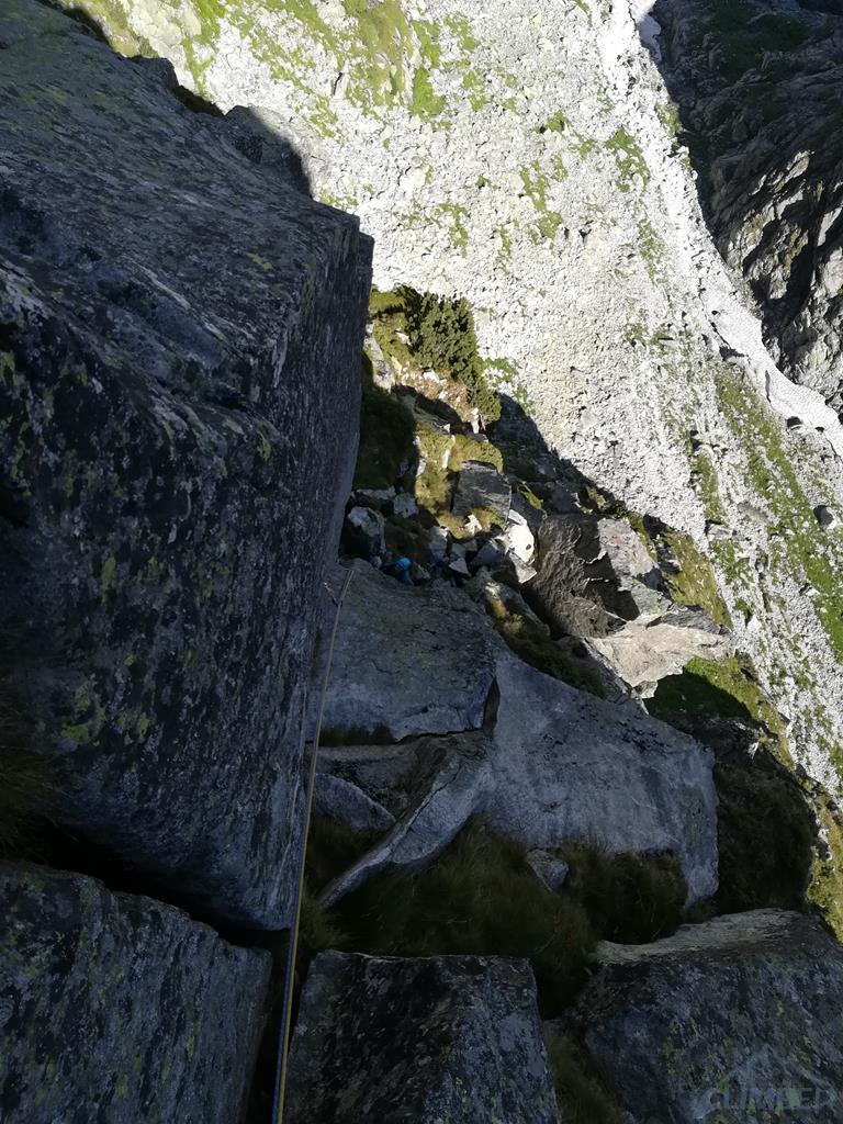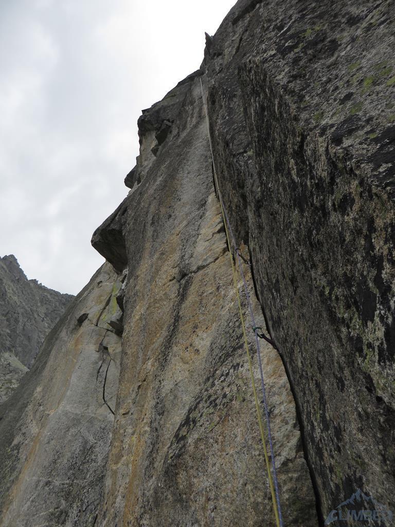 Seven Up to piękna kombinacja na wschodniej ścianie Mnicha. Na całość składają się kolejno następujące wyciągi: Zacięcie Biela (VII), Skośne Zacięcie (VI+), Rysa Hobrzańskiego (VII-) i Zacięcie Kosińskiego (VII). O drodze dowiedziałem się od kolegi z Krakowa, który robił ją w zeszłym roku - wcześniej na wystawie wschodniej nie interesowało mnie nic poza Sprężyną, która jako jedyna była w moim zasięgu. W tym roku umiejętności minimalnie wyższe, postanowiłem więc odważyć się na kolejny krok w taternickim życiorysie i spróbować swoich sił na czymś trudniejszym i zdecydowanie poza moją strefą komfortu 😉.