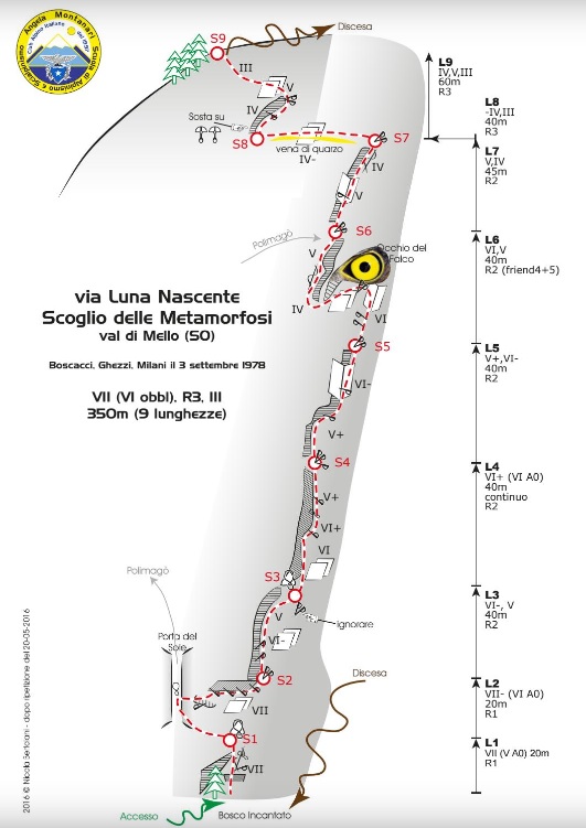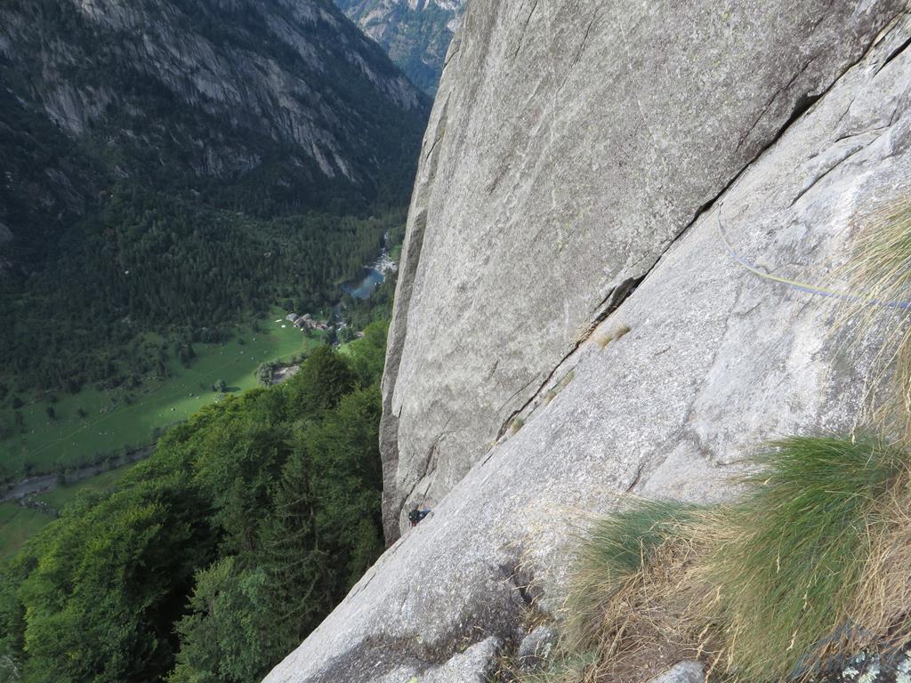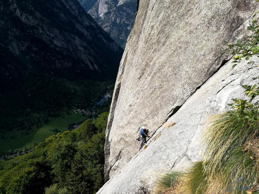 Po długiej akcji górskiej w czwartek, piątek poświęcamy na regenerację oraz kilka boulderowych klasyków. W sobotę czeka nas bowiem droga, z której musieliśmy się z Elą i Szymonem wycofać w poniedziałek, a bez zrobienia której cały pobyt w Mello nie byłby do końca satysfakcjonujący. Od początku bowiem Luna Nascente (6b/VII) była dla mnie zaraz po drodze Cassina głównym celem obozu. Żeby nie być subiektywnym, zacytuję opis z Planetmountain: "Luna Nascente can rightly be considered a true pearl of the Alps, an absolutely fantastic route in Val di Mello. A beautiful perfect series of cracks and flakes on fantastic rock which has few equals in the rest of Europe. Many agree that this is one of the most beautiful climbs in the curriculum of any climber." Zgadzm się 😊.