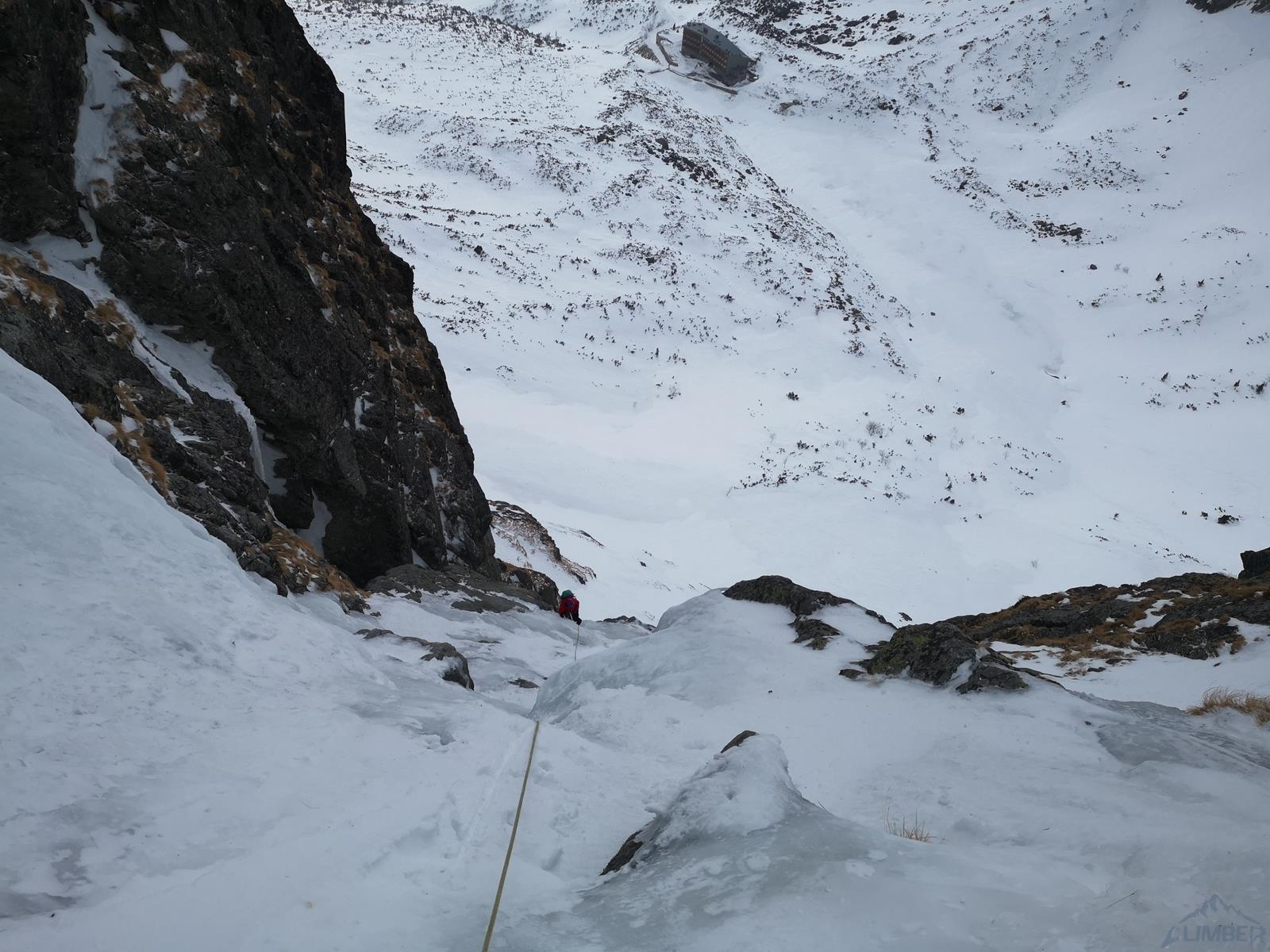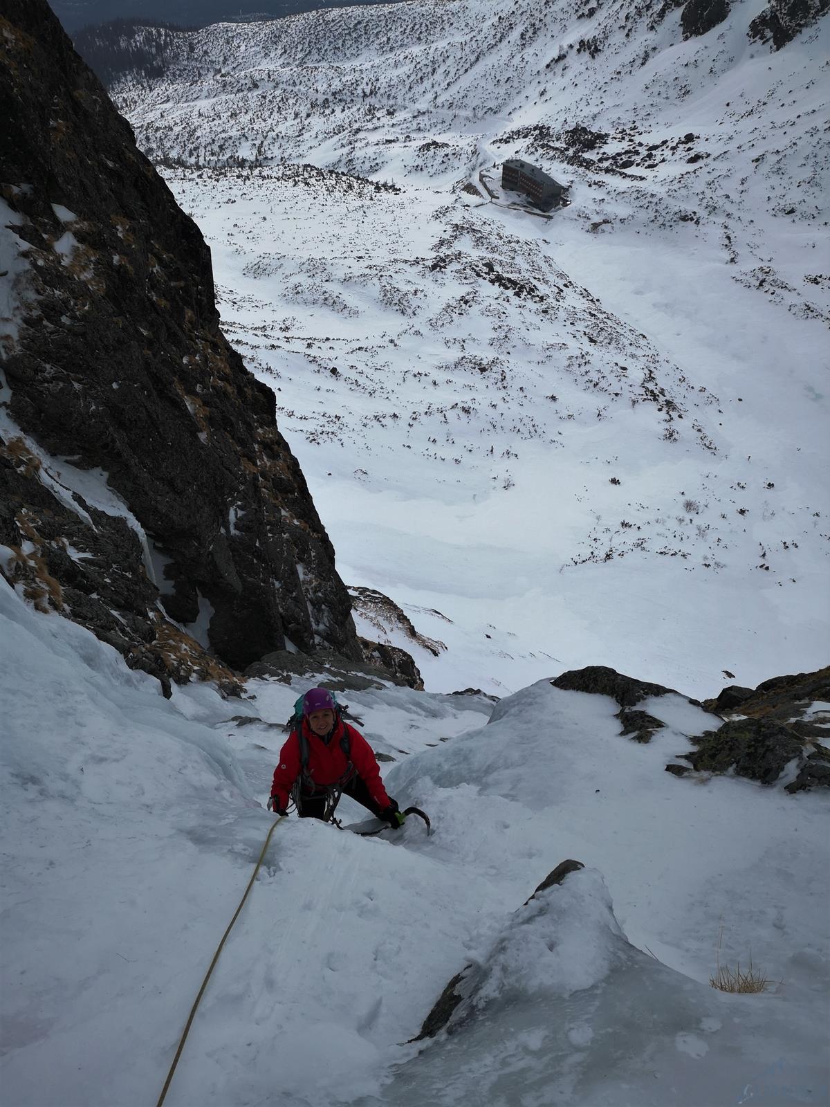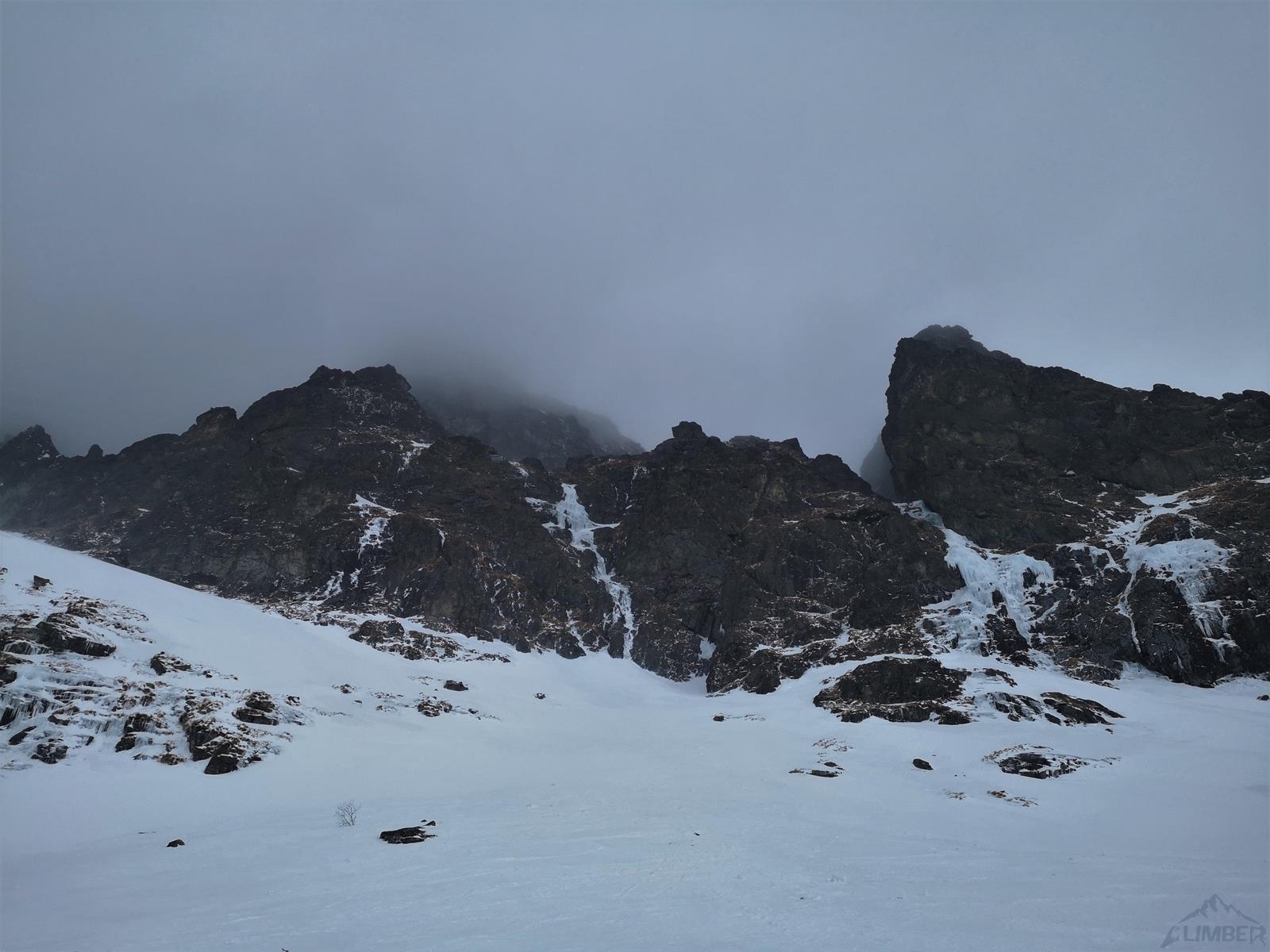 Dogrywka po obozie – w sobotę opuszczamy Morskie Oko i przenosimy się do Doliny Wielickiej. Następnego dnia tuż po wschodzie Słońca podchodzimy w kierunku upatrzonego celu - Filara Stanisławskiego na Gerlachu. Niestety pogoda weryfikuje plany – mocno wieje i niebo pełno jest ciężkich chmur, przejście drogi w tych warunkach byłoby wymagające i nieprzyjemne, a widoków nie byłoby żadnych. Decydujemy się więc na cel rezerwowy - drogę Birkenmajera na Wielickiej Baszcie – wygląda na wystarczająco wylaną lodem, no i podejście jest bardzo krótkie.