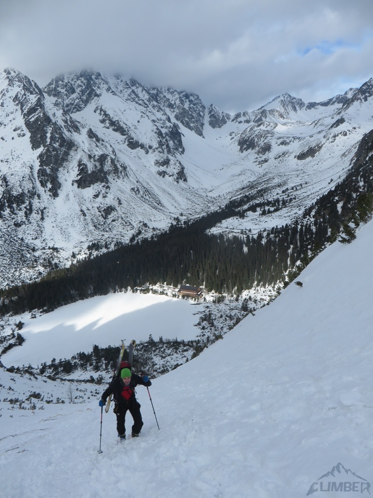 W sobotę pogoda się załamała więc bardzo „lajtowo” przeszliśmy się na turach pod Przełęcz Siarkańską by rozruszać trochę kości. Wieczorem najpierw świętowaliśmy historyczne zwycięstwo polaków w skokach (nie ma to jak pokój z TV w górach 😊), następnie przy zajęciach sportowych (ping-pong i bilard) oddaliśmy się zabawie do późnych godzin nocnych :) W planach na niedzielę było jeszcze wspinanie na Tępej ale dziwnym trafem nie mogłem znaleźć ani jednego chętnego na ostre działanie tego dnia 😉. Dlatego też w ostatni dzień obozu i mojego pobytu na Popradzkim Stawem postanowiliśmy z Krzyśkiem wybrać się na nartach pod Osterwę, a następnie wspiąć się na Igłę.