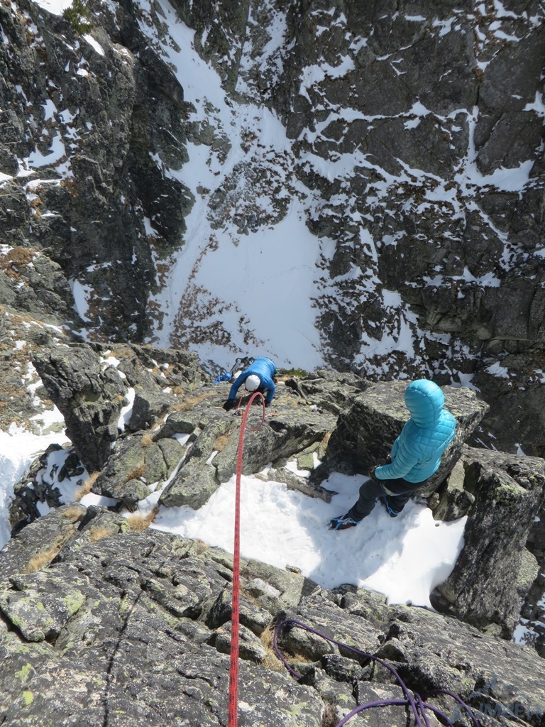 Przed nami wyruszył Kućka z kilkoma klubowiczami, spotykamy się więc na miejscu i użyczamy sobie nawzajem sprzętu oraz lin. Kilka fotek na imponującej iglicy, zjeżdżamy i wracamy po narty. Na deser pozostaje nam dość wymagający w zastanych warunkach zjazd do Popradzkiego Stawu. Na dole przysiadamy jeszcze na chwilę, żegnamy się z resztkami klubowiczów i kierujemy się na parking. Bardzo intensywny tydzień mija bezpowrotnie, pozostawiając za sobą jedynie dziesiątki wspomnień z kolejnych tatrzańskich przygód i czasu spędzonego w dobrym towarzystwie.