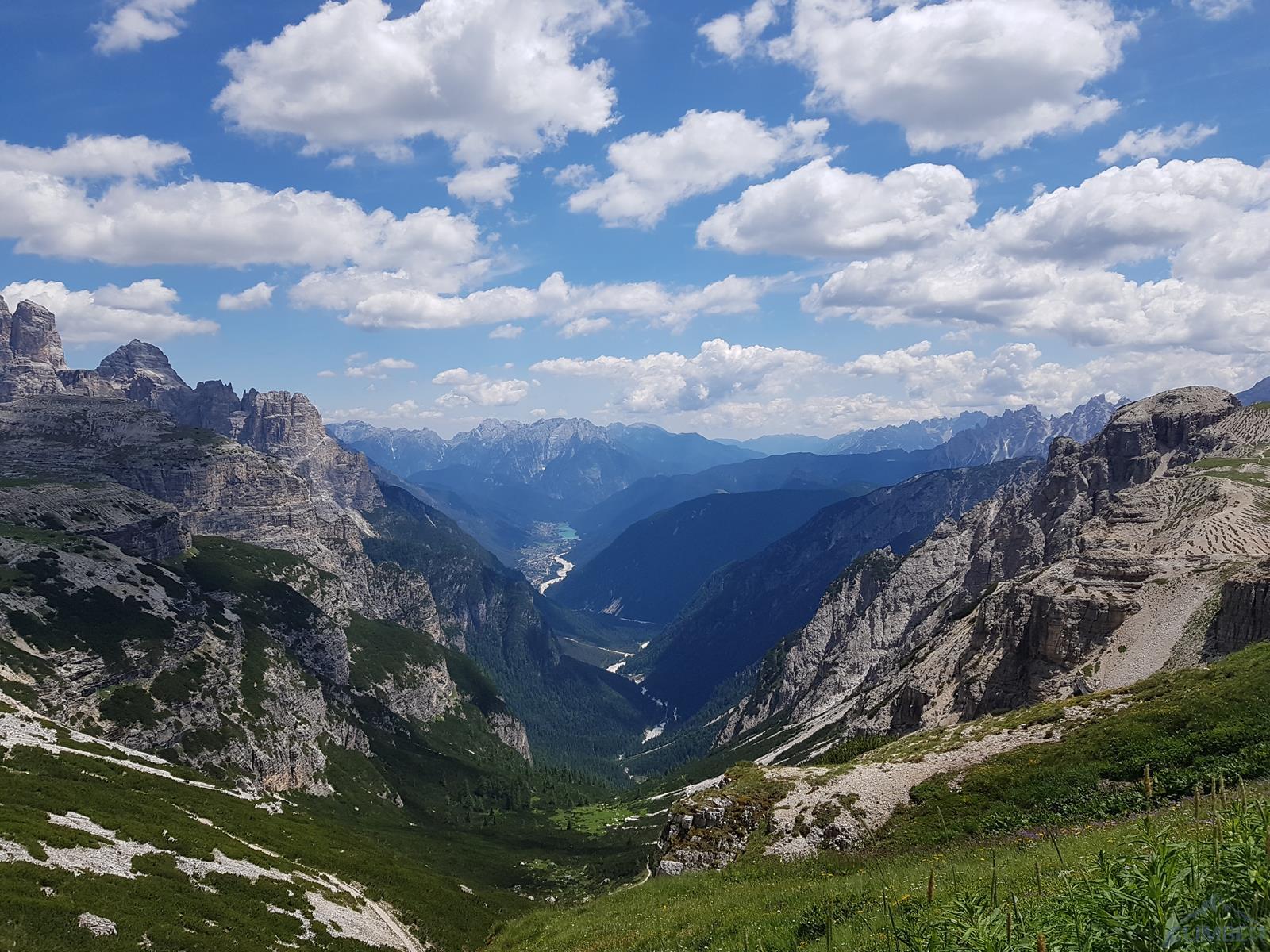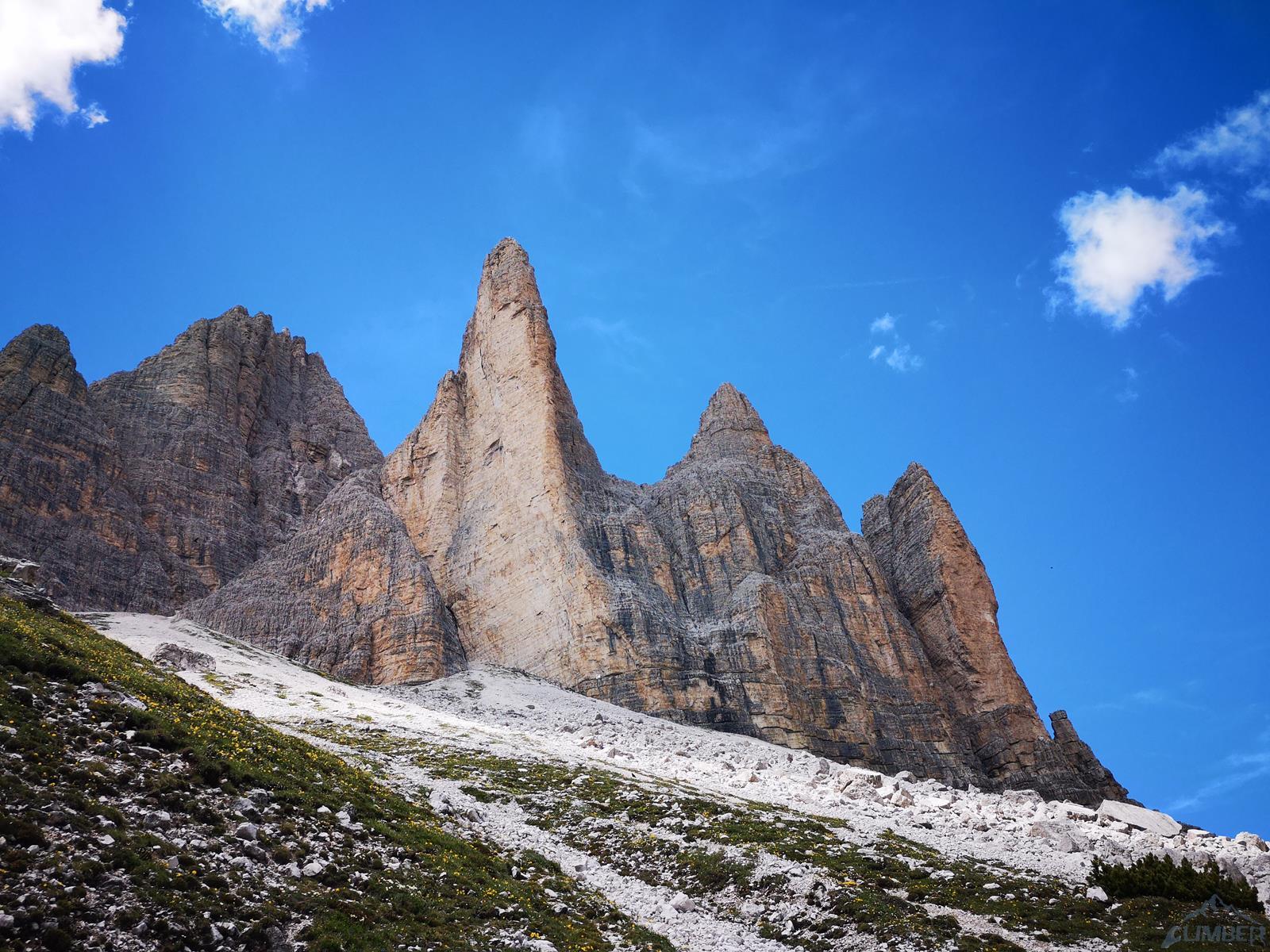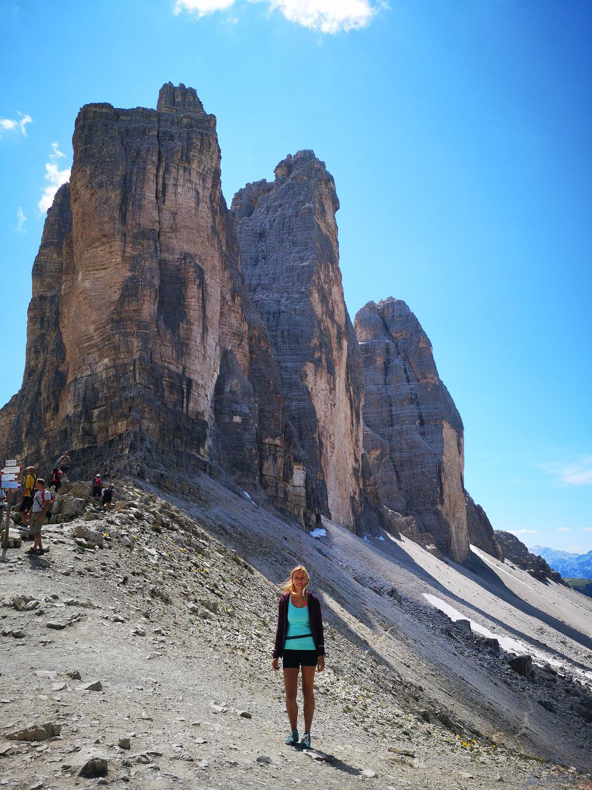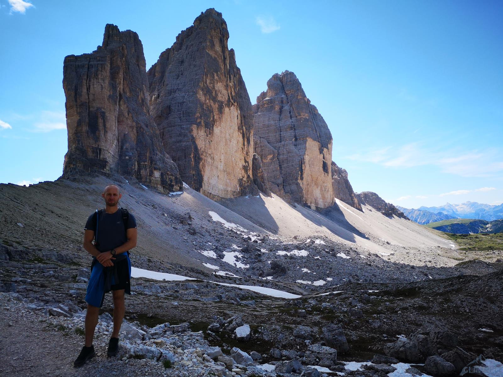 Po dwóch dniach wspinania postanawiamy odpocząć, wybierając się na spacer w okolicach słynnych Tre Cime. Przy okazji robimy rekonesans i wybieramy cel na dzień kolejny - drogę Cassina na Cima Piccolissima. Do schroniska Auronzo (2320 m.) dojeżdżamy płatną drogą, stąd pod południowymi ścianami wyruszamy do schroniska Lavaredo, następnie na przełęcz o tej samej nazwie (2454 m.). Kierujemy się następnie do schroniska Locatelli, podziwiając wspaniałe północne ściany Cim. W schronisku odbieramy nagrodę w postaci zimnego piwa i rozkładamy się na łące poniżej. Mieliśmy okrążyć cały masyw ale chcemy zapytać o nocleg w obu schroniskach po południowej stronie, wracamy więc tą samą trasą. Finalnie zostajemy na noc w Rif. Auronzo.