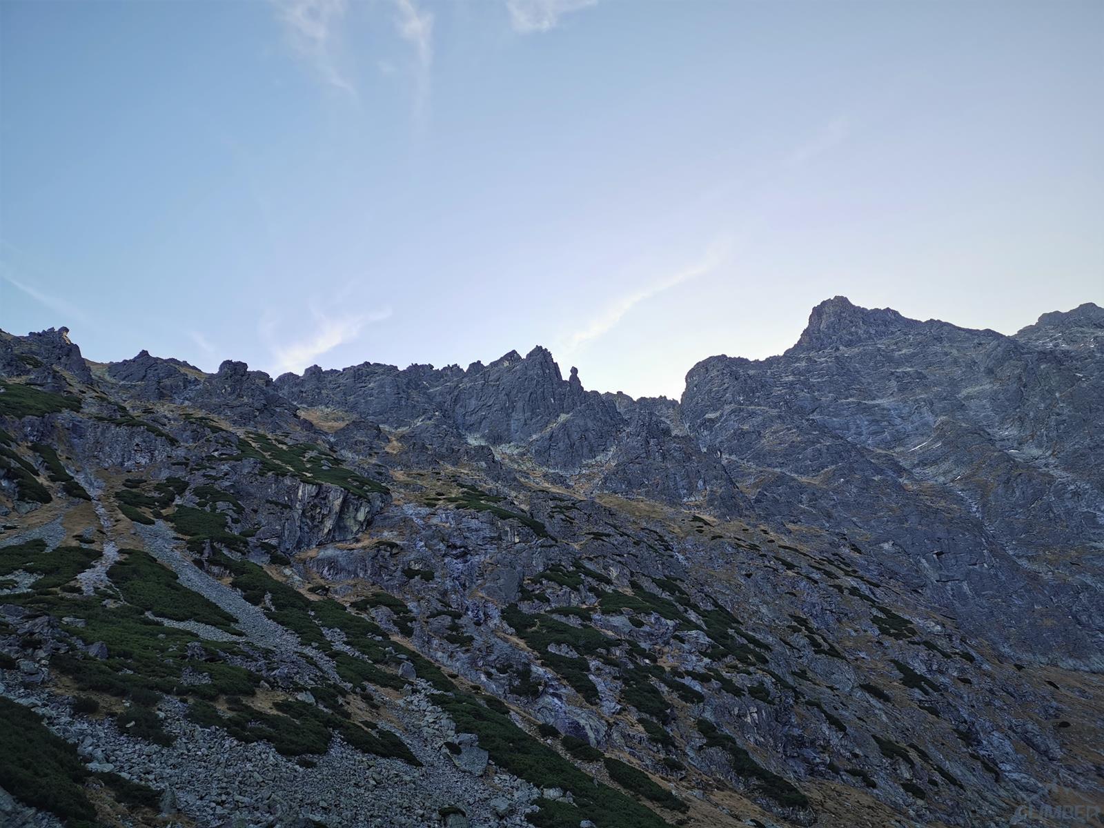 Warunki wspinaczkowe oraz pogoda w Tatrach nadal świetne, powstaje więc intensywny plan by w sobotę spróbować wejść w ścianę Kazalnicy z Anią, a już w niedzielę wspinać się na Kieżmarskim z Mateuszem. Niestety gdy pierwszego dnia rano stajemy pod Zerwą, odczuwalna temperatura wynosi poniżej zera. Po odczekaniu godzinę (nadal zimno) zasmuceni odpuszczamy zacienioną, północną ścianę i Żlebem Żabiej Przełęczy Wyżniej podchodzimy pod Żabiego Mnicha. Pod zachodnią ścianą nie ma jeszcze Słońca, na rozgrzewkę postanawiamy więc wyjść granią na Żabią Lalkę, na której jeszcze nie byliśmy.