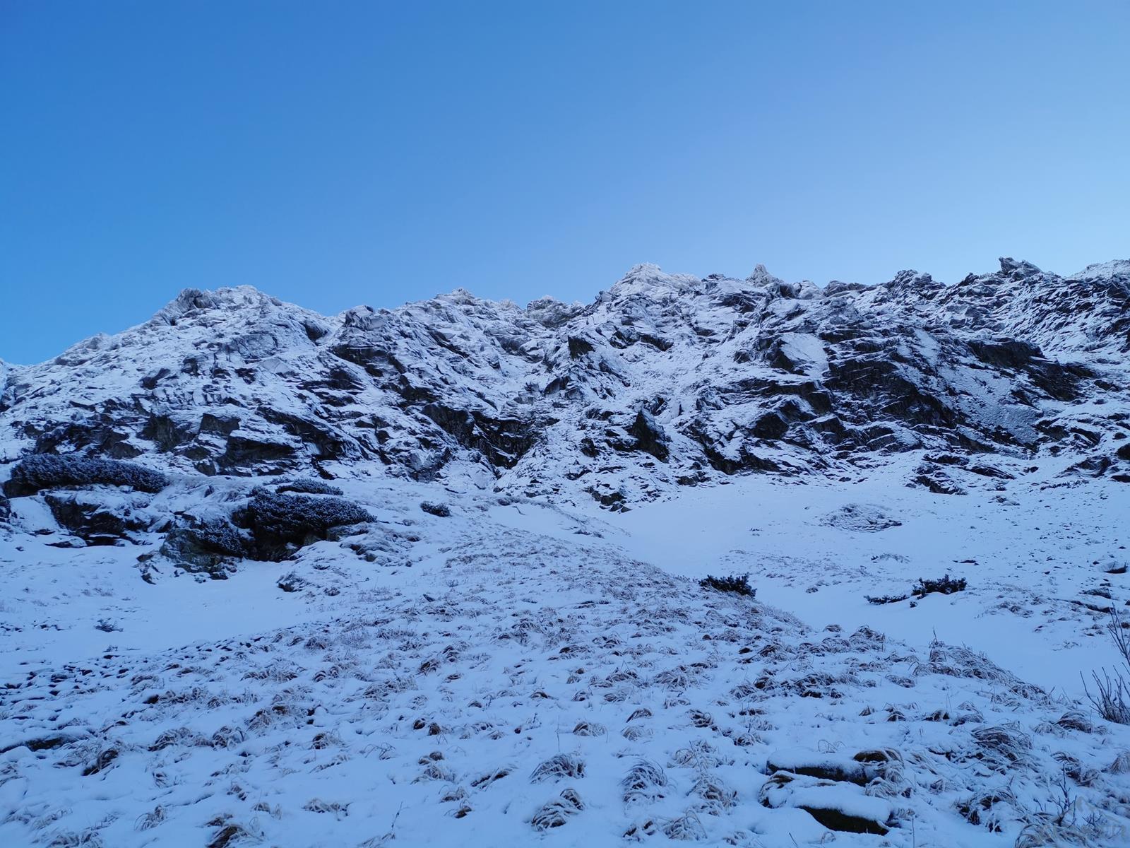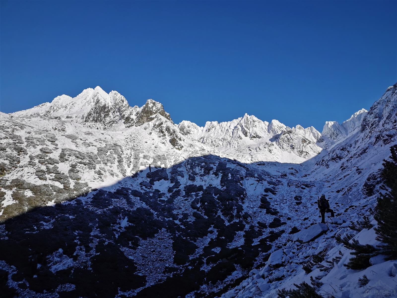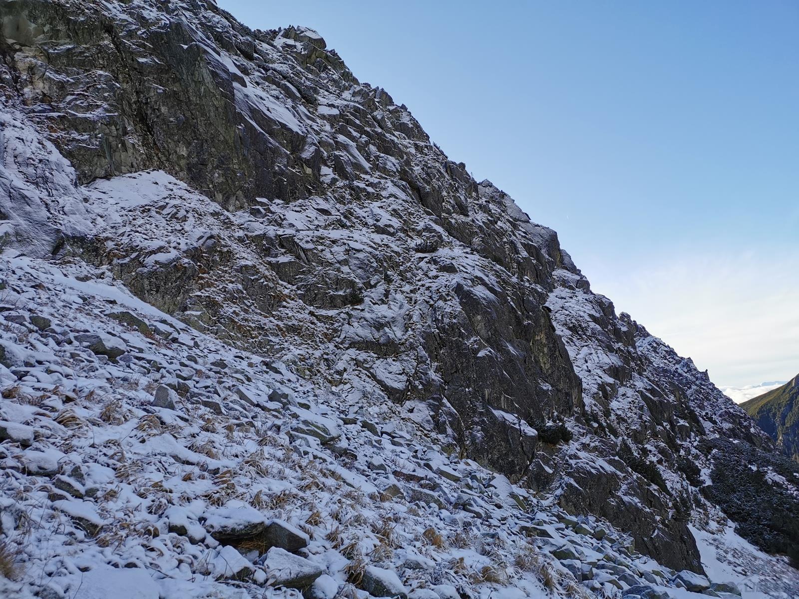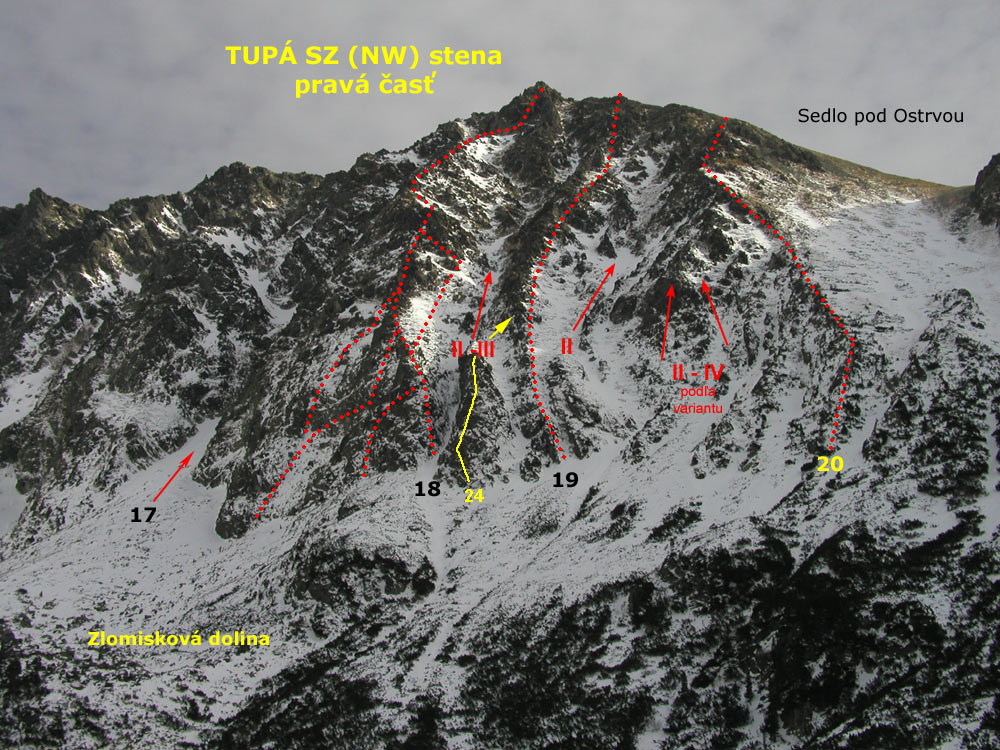 Krótka ale ciekawa propozycja gdy są za słabe warunki na dłuższe drogi lub mamy mało czasu. Tak też było w pierwszy dzień kalendarzowej zimy gdy zjawiliśmy się pod Tępą - po podejściu pod planowaną drogę zdecydowaliśmy, że plany trzeba zweryfikować. Słaby śnieg, miękkie trawy i podmuchy wiatru to jedno, bardziej martwił nas jednak poranny opad, po którym płyty oblepił mokry śnieg i który mocno nas opóźnił. Dlatego też decyzja by przetawersować pod prawą część ściany i zrobić "cokolwiek" - na taką właśnie okoliczność 4-wyciągowy Banan Extra jest idealny.