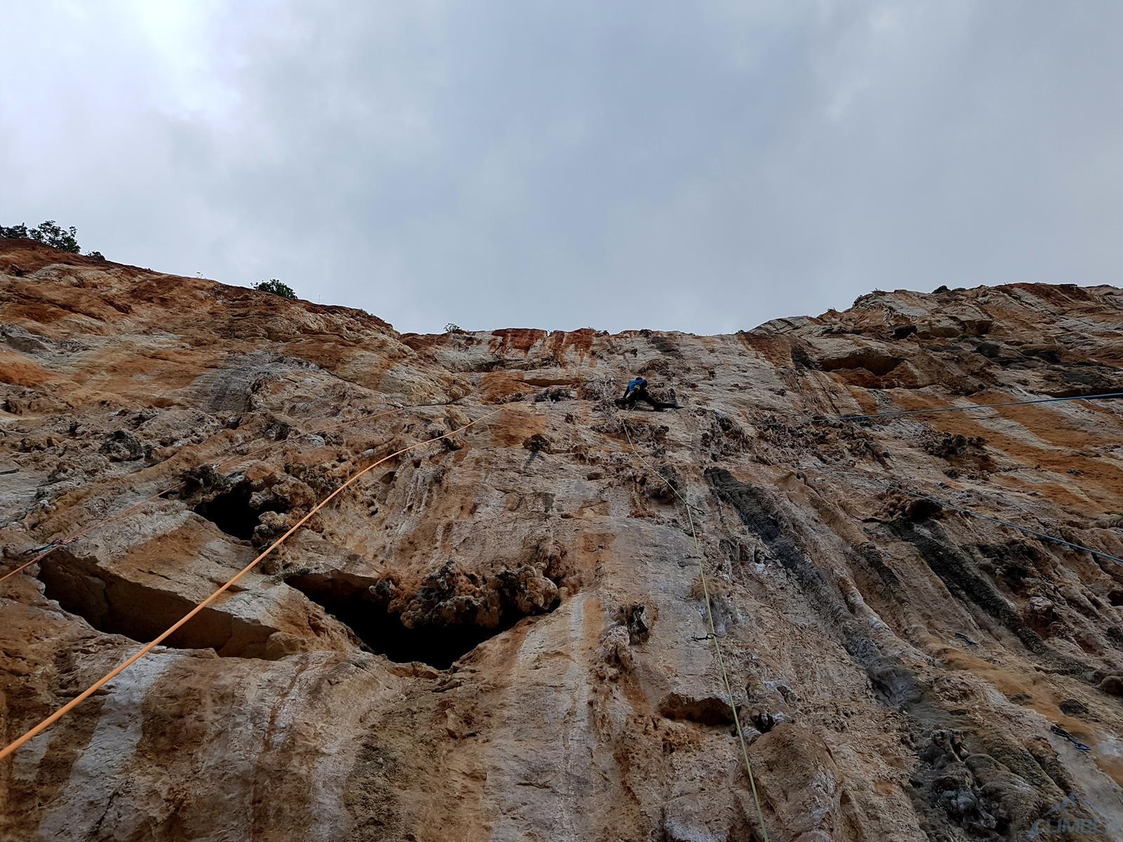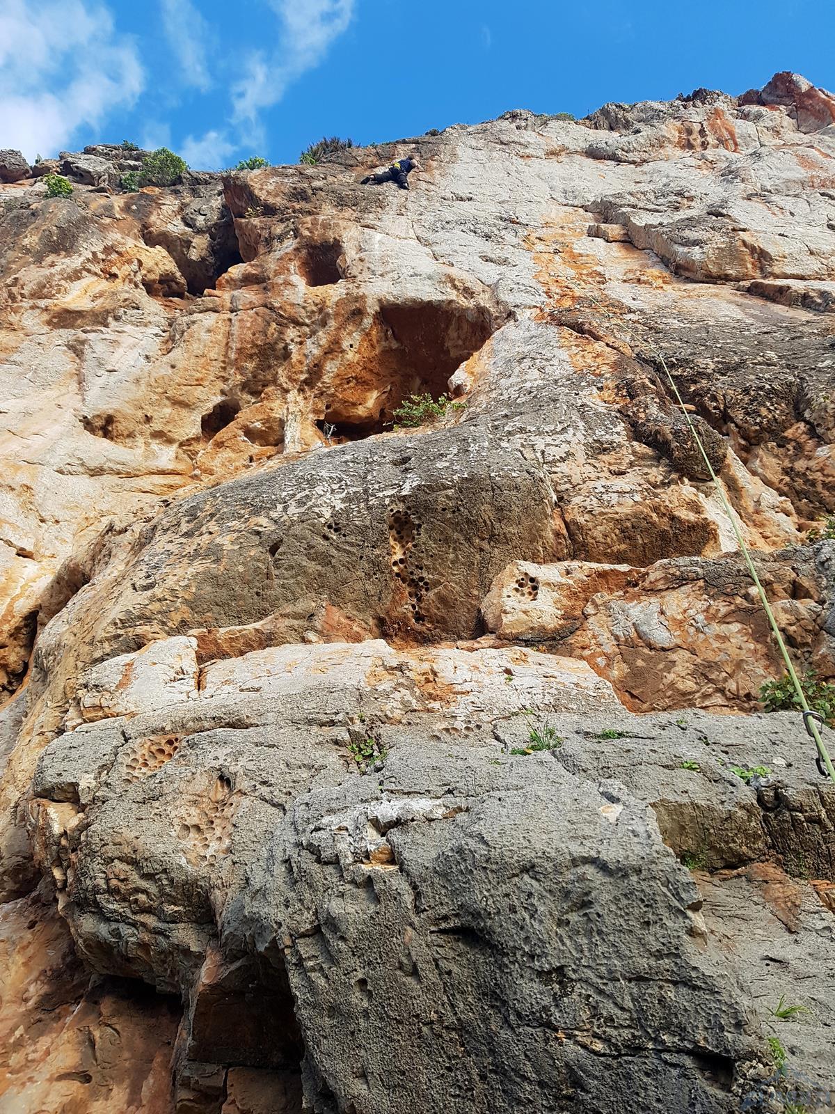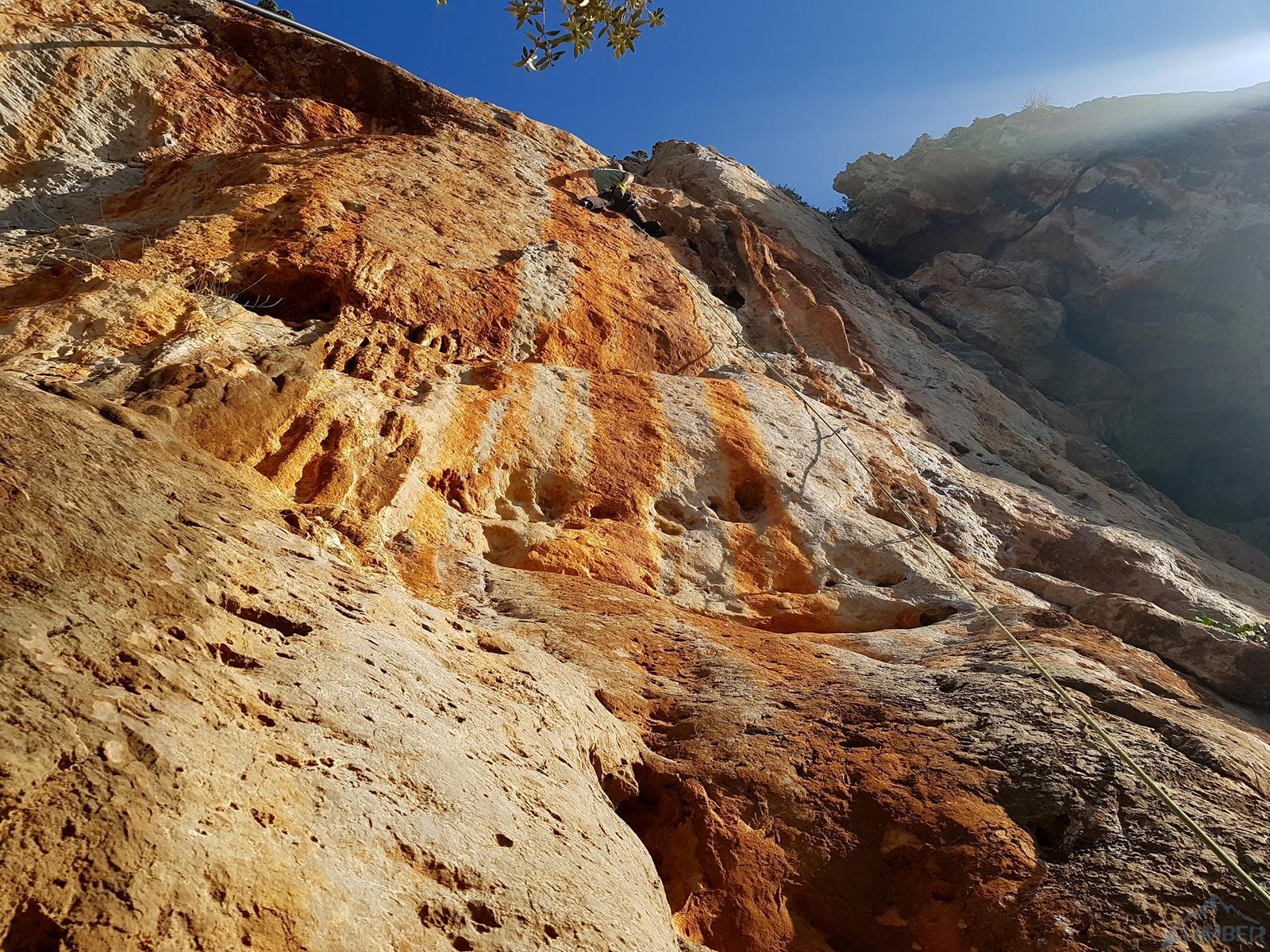 W Internecie znaleźć można sporo informacji na temat logistyki i samego wspinania w okolicy, stąd też ograniczę się do krótkiego resume i zdjęć z niektórych robionych dróg. W rejonie położonym przy campingu (Scogliera di Salinella Sud) odwiedziliśmy sektory Pineta - Centrale i Destra oraz Petraia - Recinto, Amfiteatro, Pipeline. Oferują one bardzo dużo ładnych linii w przedziale 5c-7b, w tym najwięcej 6a-6c. Dwa dni spędziliśmy z kolei na niesamowitej Never Sleeping Wall, gdzie znaleźć można kilka pięknych ok. 30-metrowych dróg po tufach od 6a+ w górę. Skała na ścianach, które odwiedziliśmy jest świetnej jakości, samo wspinanie zaś wymaga głównie siły i wytrzymałości, a dość oczywiste ruchy sprzyjają OS-om. Podczas naszej wizyty temperatura w cieniu oscylowała w okolicy 12-15 stopni w cieniu, gdy Słońce wychodziło zza chmur było dużo cieplej – szczególnie na południowych i zachodnich ścianach na których działaliśmy.