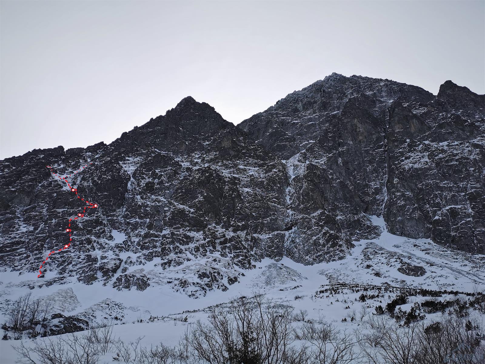 Po wczorajszym opadzie śniegu możliwości działania są ograniczone, wybieramy się więc do Doliny Kieżmarskiej, gdzie wspinać można się właściwie w każdych warunkach. W Schronisku nad Zielonym Stawem po analizie sytuacji wybieramy jedną z wielu możliwości i ruszamy pod Pośredniego Strażnika by zrobić drogę będącą swoistym wariantem prostującym do drogi Orłowskiego.