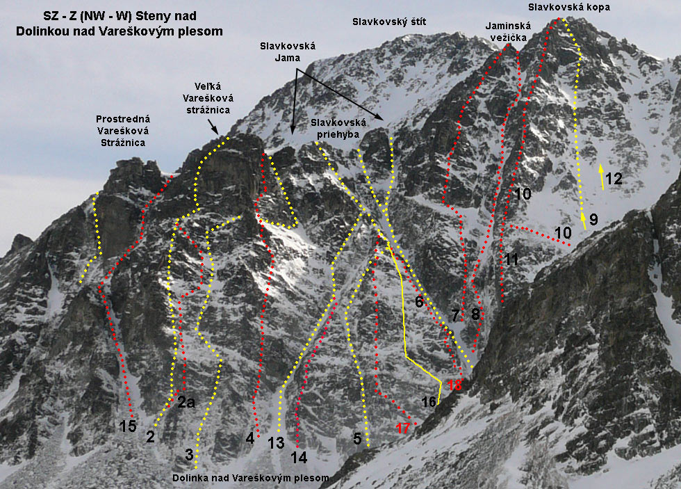 Ciekawą opcją jest zrobienie którejś z dróg na Warzęchowych lub Kopie i kontynuowanie granią na Sławkowski Szczyt, tak zrobiliśmy kilka lat temu po przejściu drogi Tatarki Jaminska Vezicka (nr 7), którą zresztą polecam. Zaraz obok znajduje się łatwiejszy Komin Zamkowskiego (nr 8), będący klasykiem masywu. Dla przypomnienia foto topo masywu - LINK.