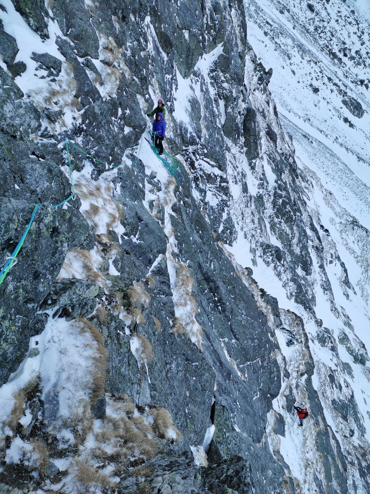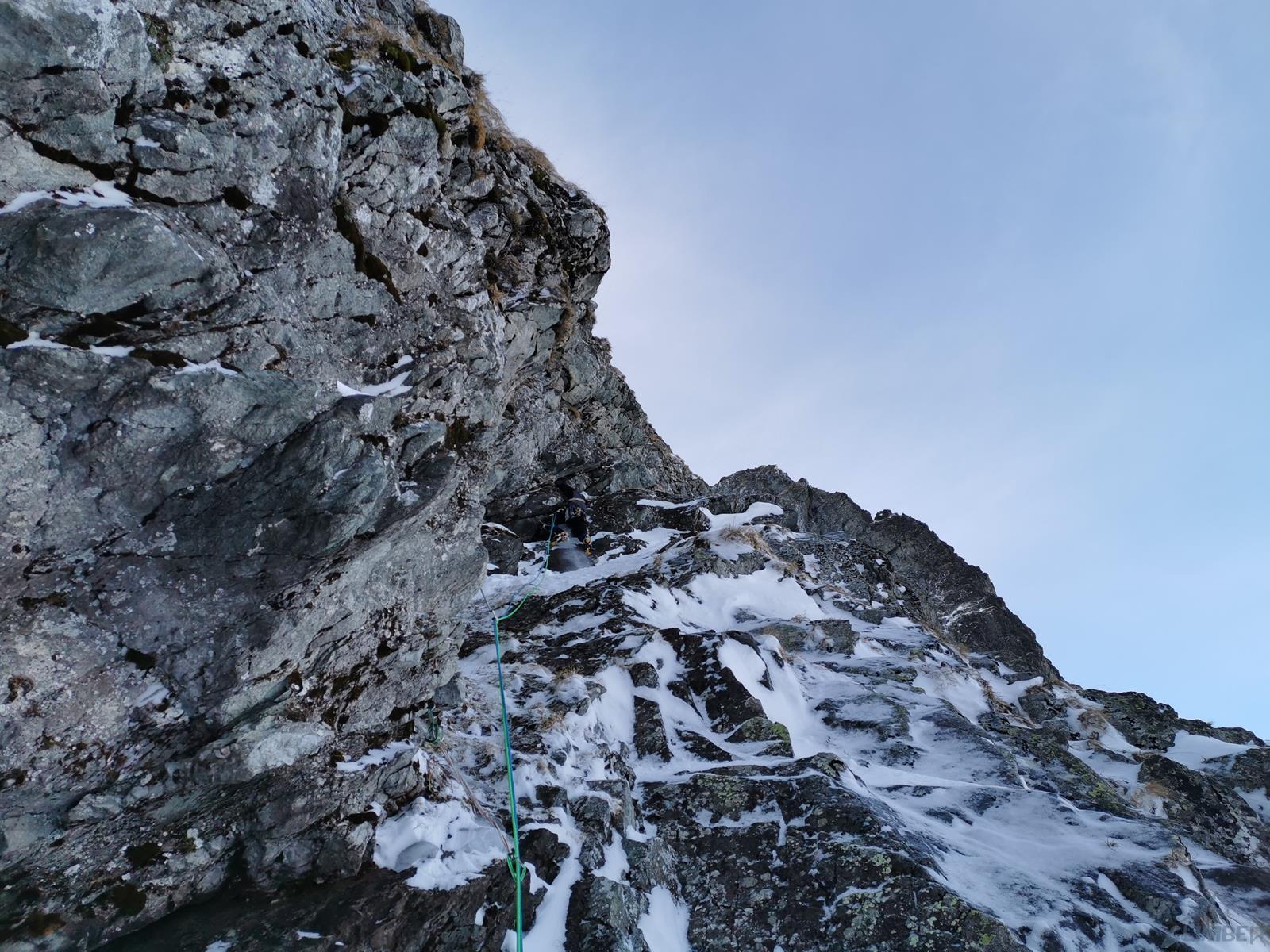 Wracając do Tatr - poza dwoma ostatnimi tygodniami stycznia, gdy zapanowały świetne warunki wspinaczkowe, pogoda raczej nie rozpieszczała i wiele razy trzeba było wybierać niskie i łatwo dostępne ściany - tak było również na skróconym obozie klubowym w Dolinie Staroleśnej, podczas którego zrobienie czegokolwiek było nie lada wyczynem... Trzymając się jednak maksymy "jak się nie ma, co się lubi, to się lubi, co się ma", jako najciekawsze zrobione drogi wymieniłbym: