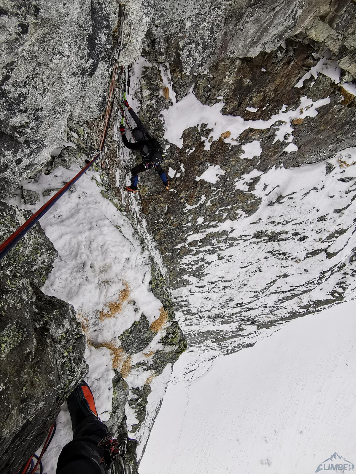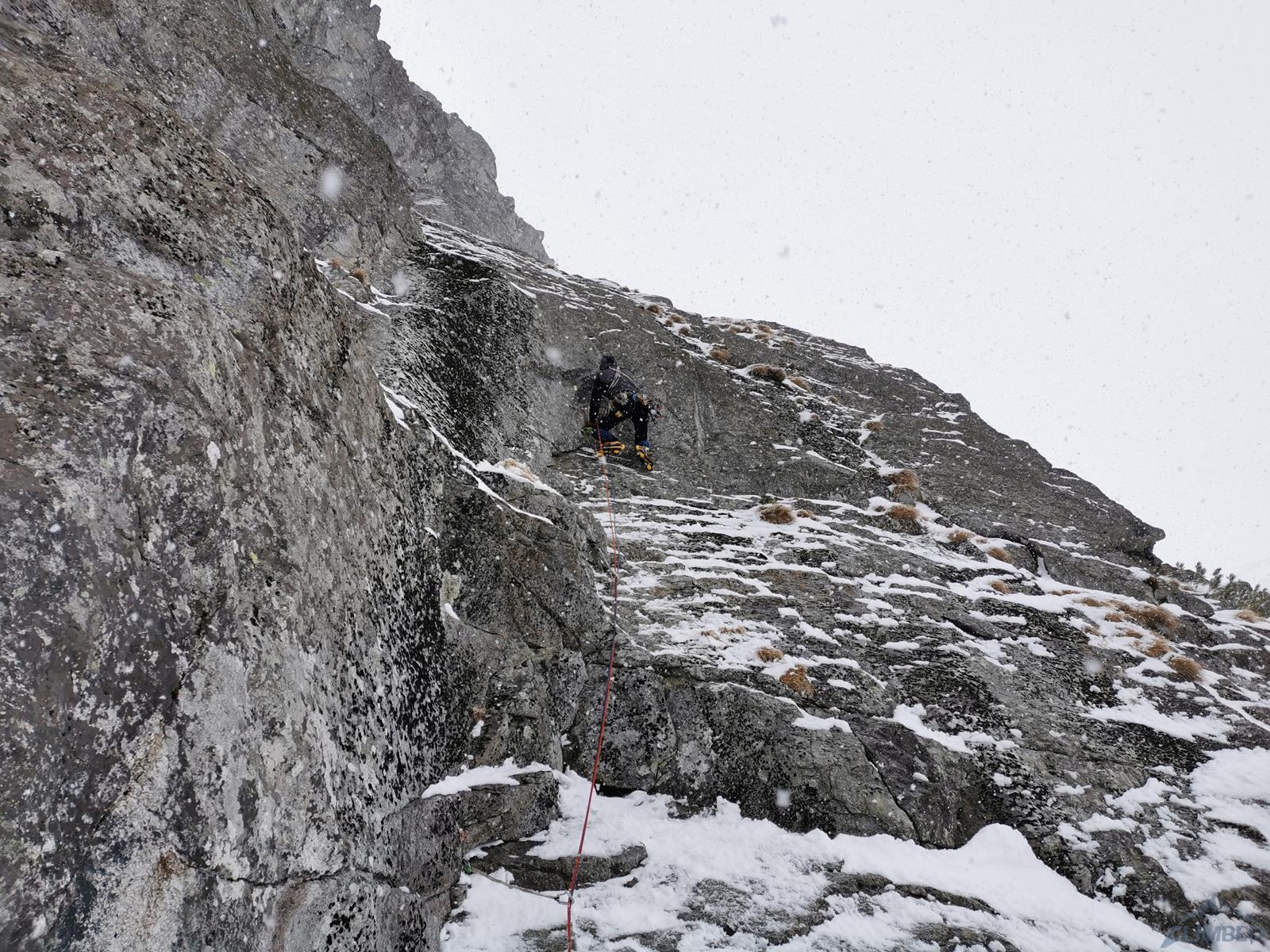 - Szare Zacięcie na Czołówce MSW: wydawała się poza zasięgiem (7/7+), ale spróbowaliśmy i poszło, trzeba się było sporo napracować w mokrym śniegu.