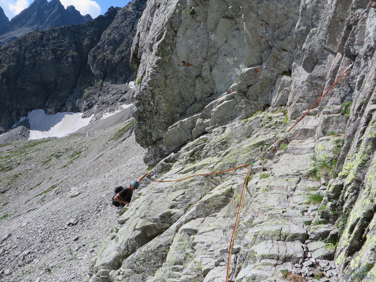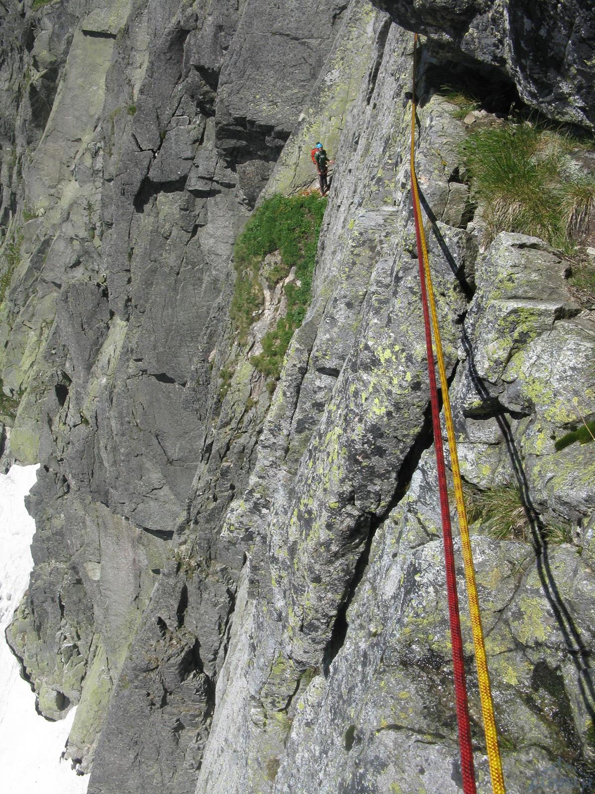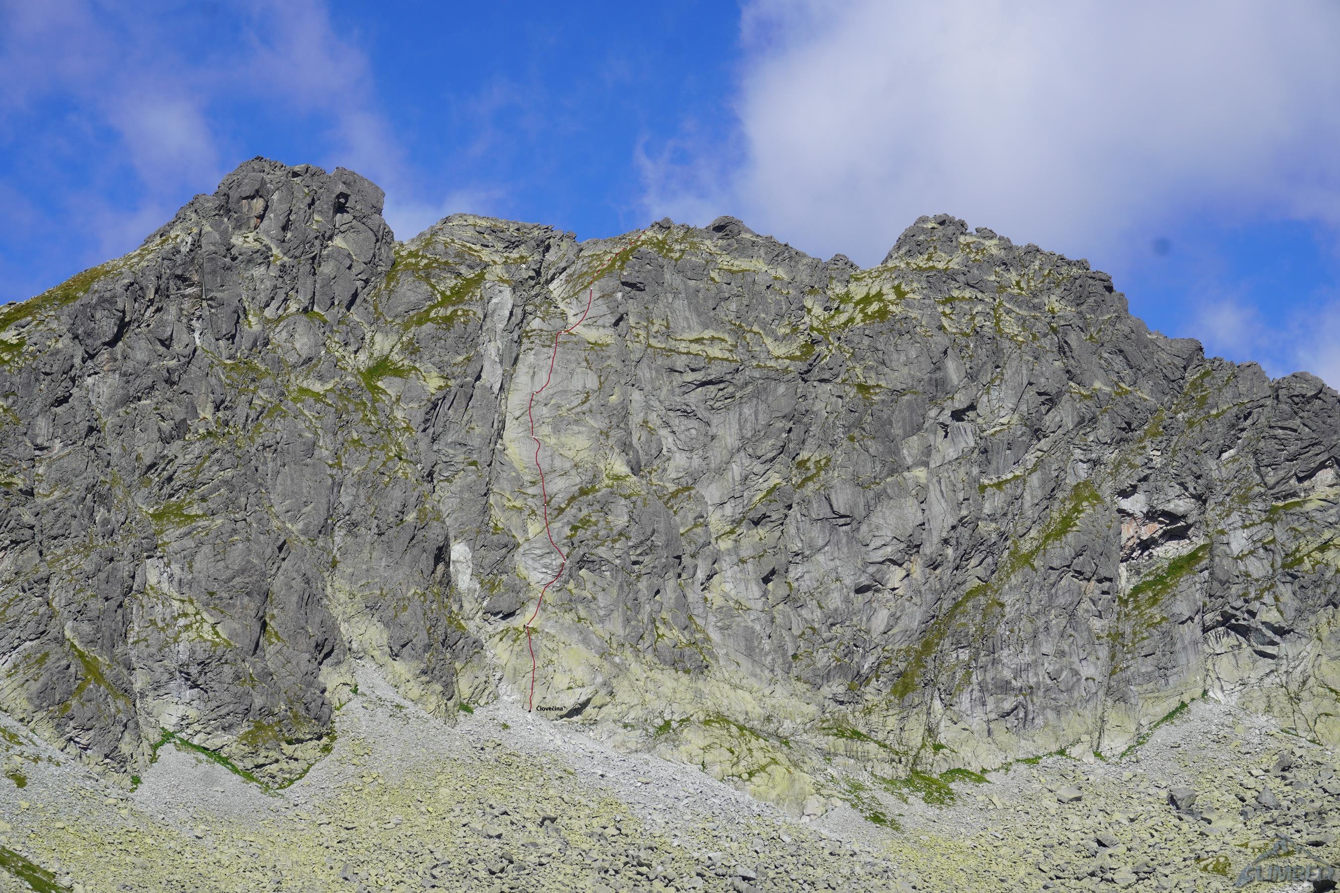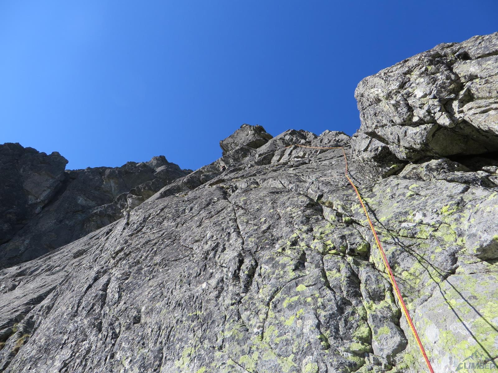 POŚREDNI GERLACH (E), słow. GERLACHOVSKÁ VEŽA - duża ściana, na której latem powtarzana jest w dzisiejszych czasach właściwie tylko jedna, za to bardzo ładna i ciekawa droga - Filar Stanisławskiego (V R2 750m).