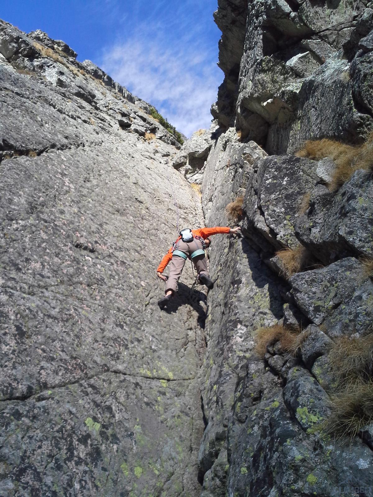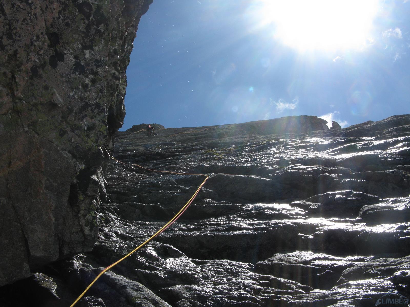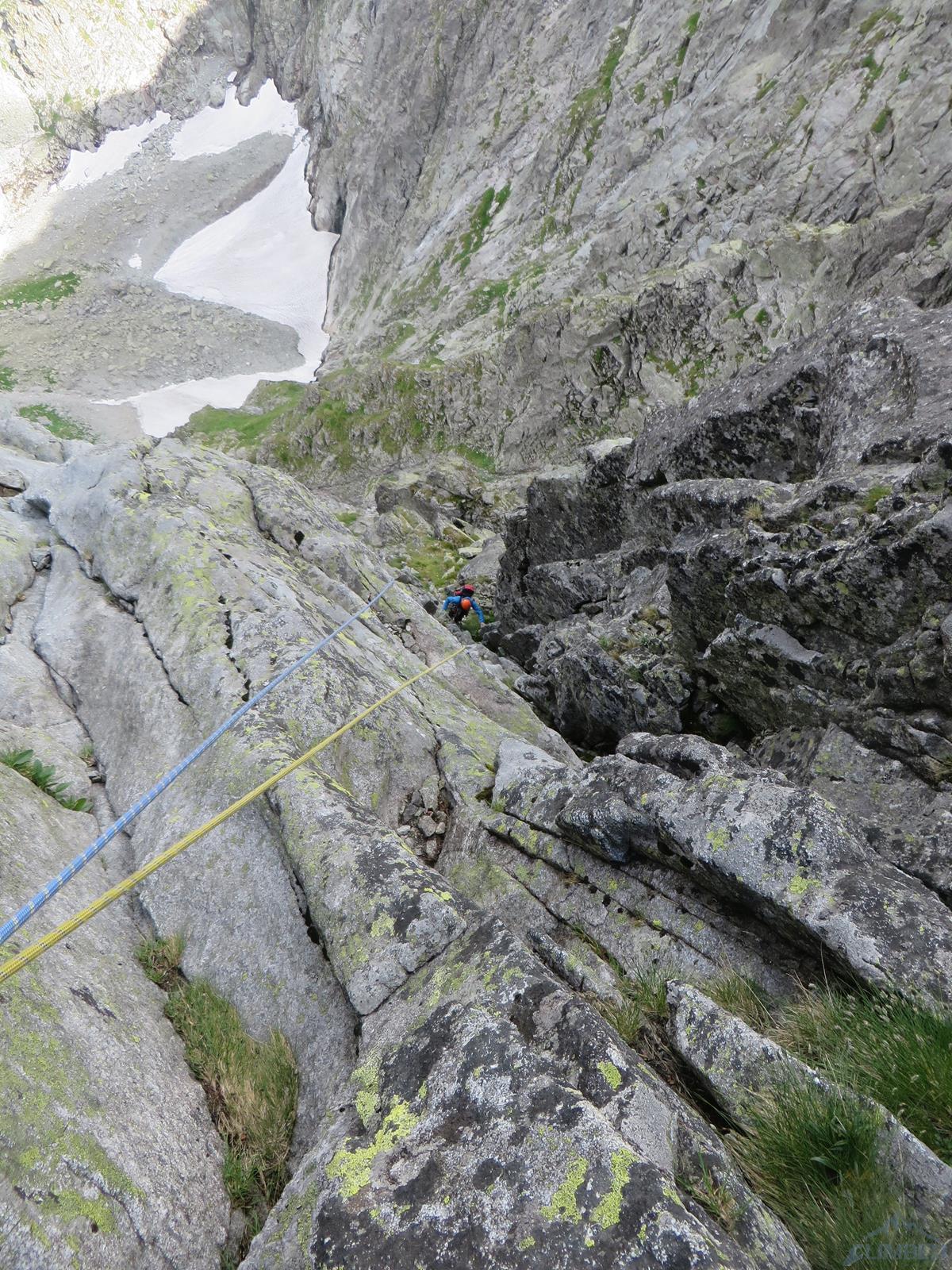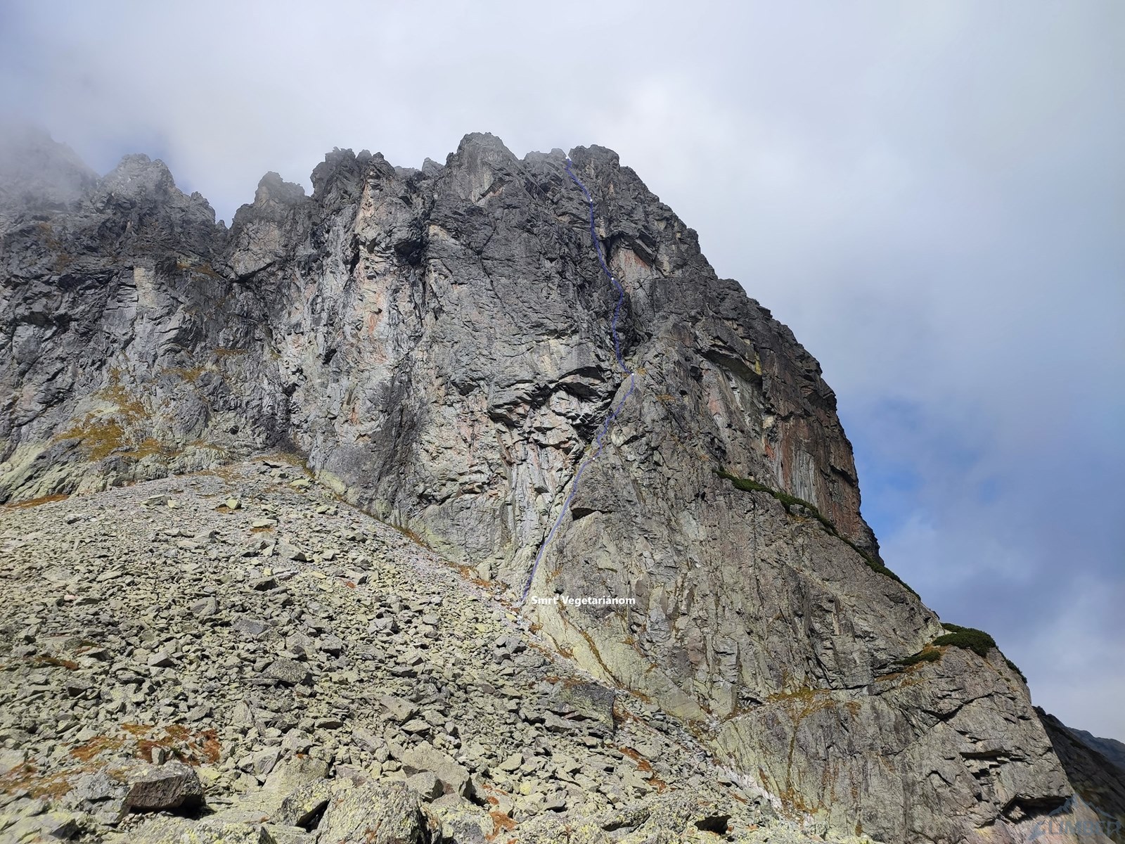 POŚREDNI GERLACH (E), słow. GERLACHOVSKÁ VEŽA - duża ściana, na której latem powtarzana jest w dzisiejszych czasach właściwie tylko jedna, za to bardzo ładna i ciekawa droga - Filar Stanisławskiego (V R2 750m).