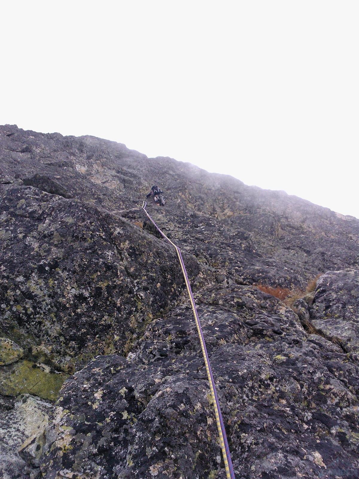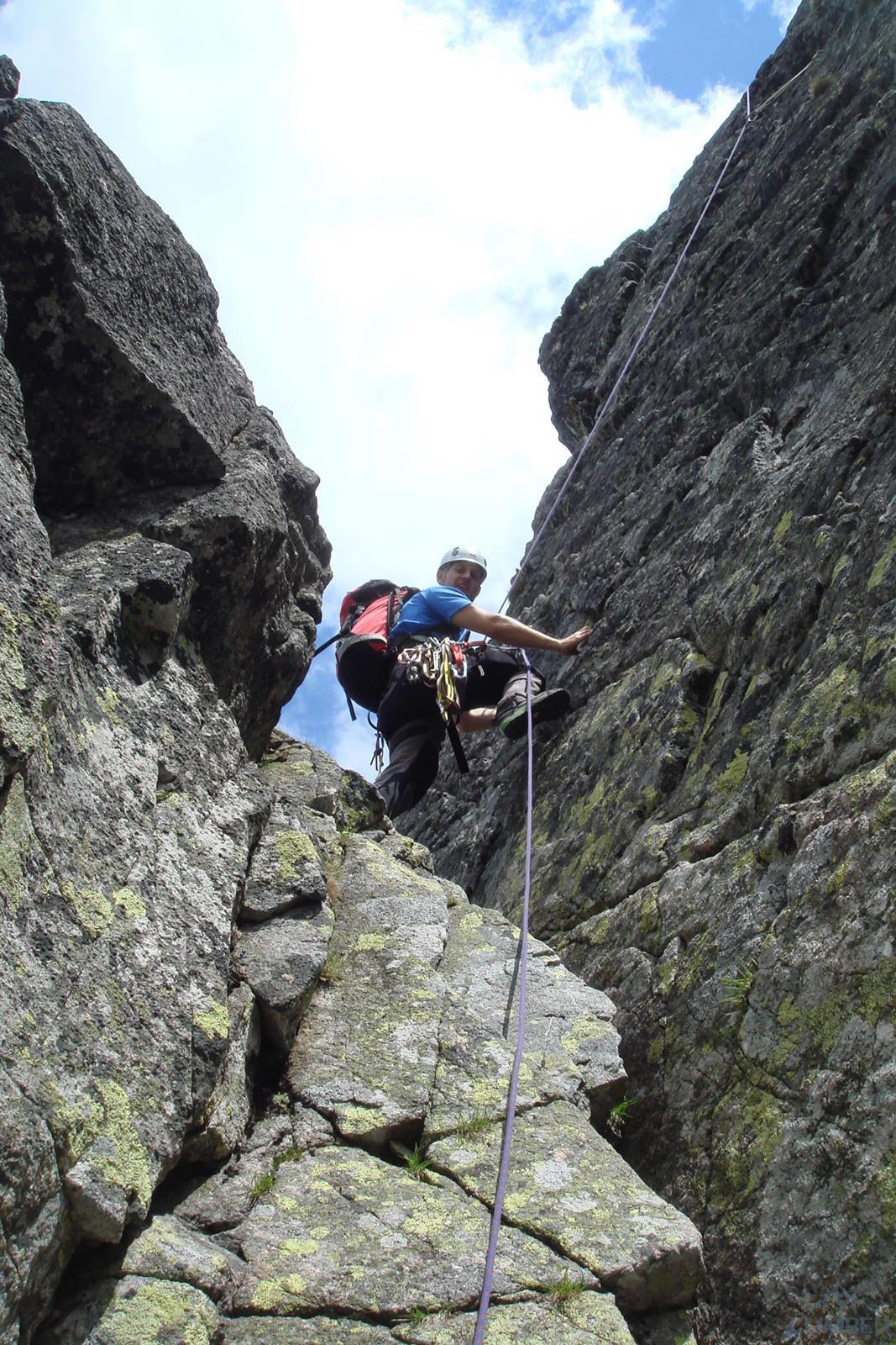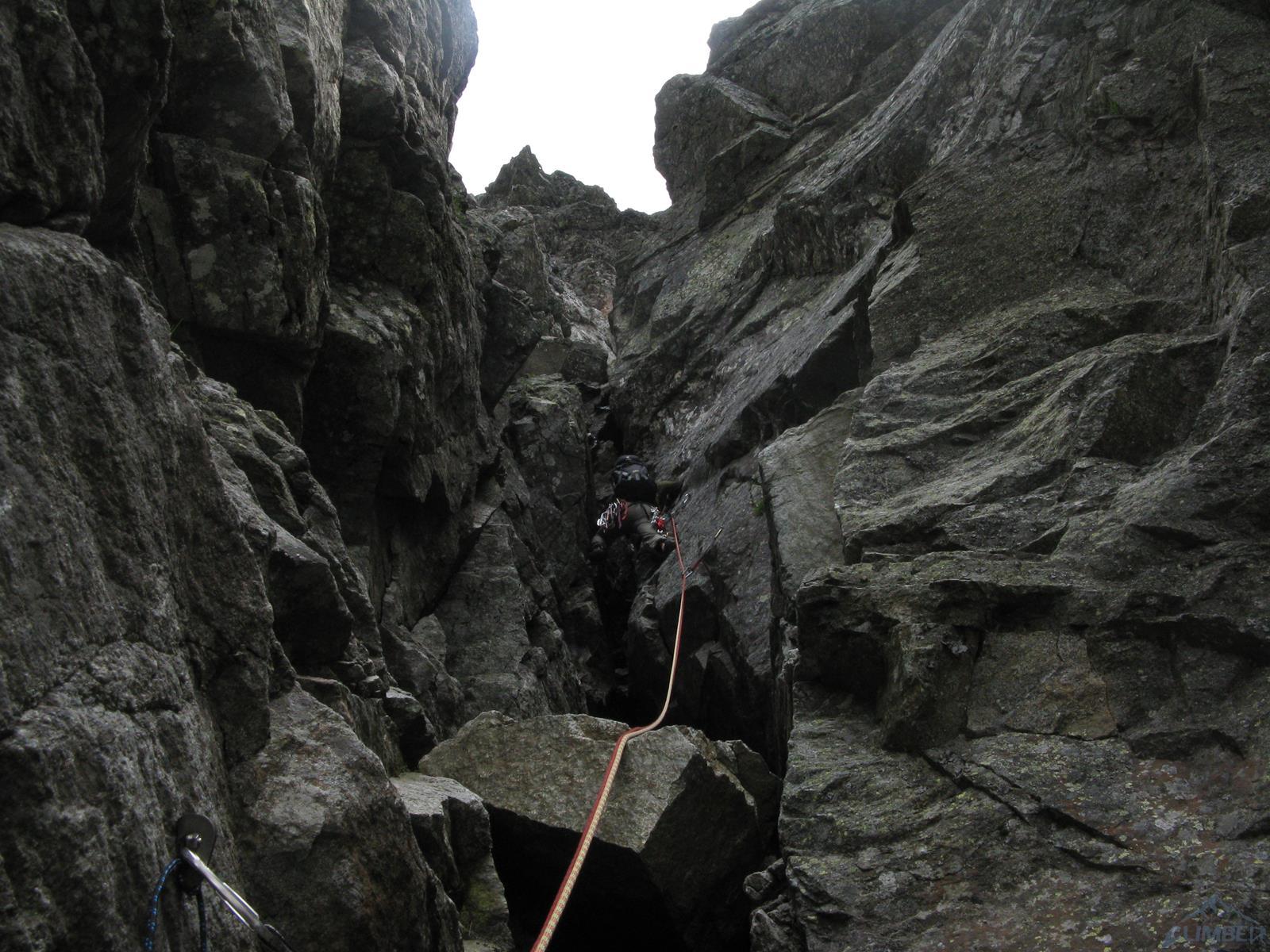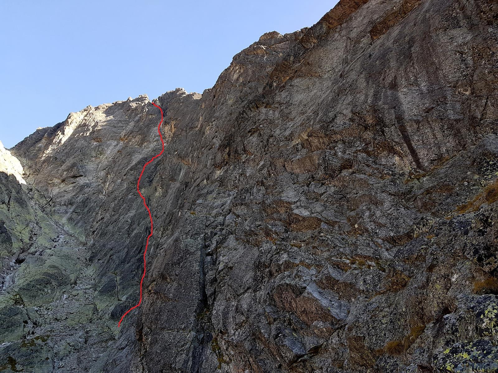 POŚREDNI GERLACH (E), słow. GERLACHOVSKÁ VEŽA - duża ściana, na której latem powtarzana jest w dzisiejszych czasach właściwie tylko jedna, za to bardzo ładna i ciekawa droga - Filar Stanisławskiego (V R2 750m).