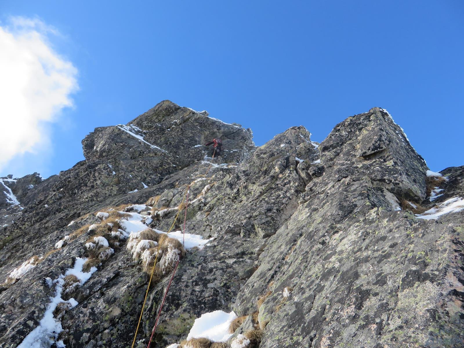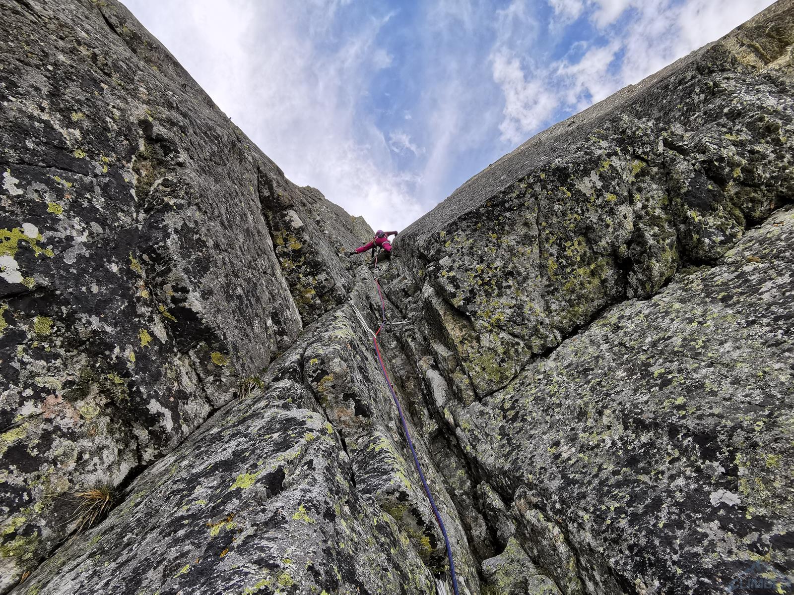 KOŃCZYSTA (E) – wybierając się na widokową Grań Kończystej warto dojść do niej Filarem Drąga (IV) – to jedna z ładniejszych nietrudnych kombinacji w Tatrach.