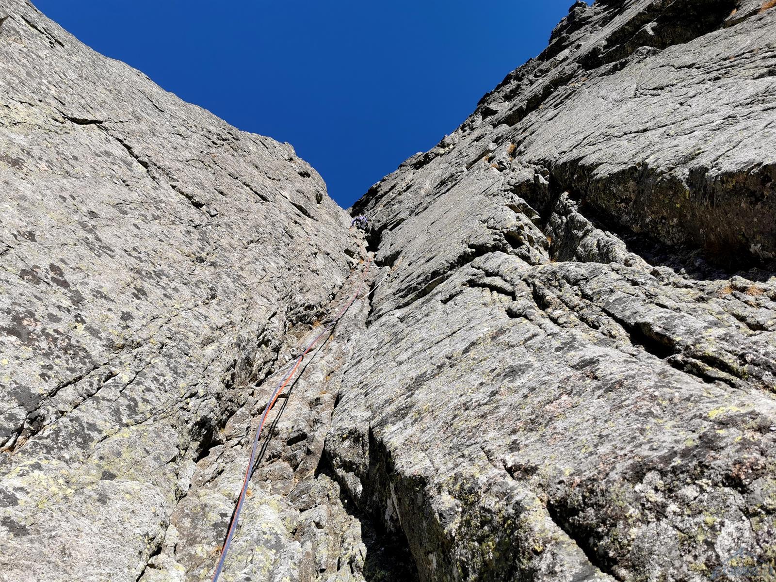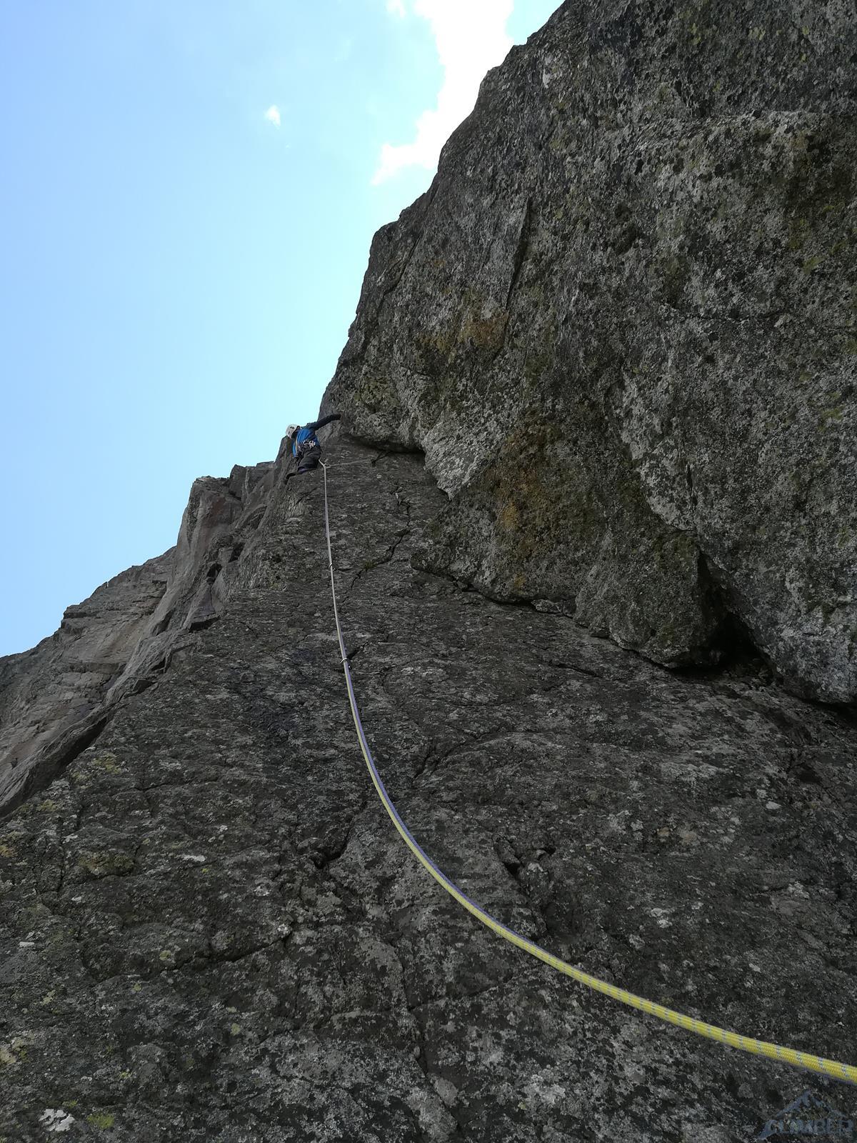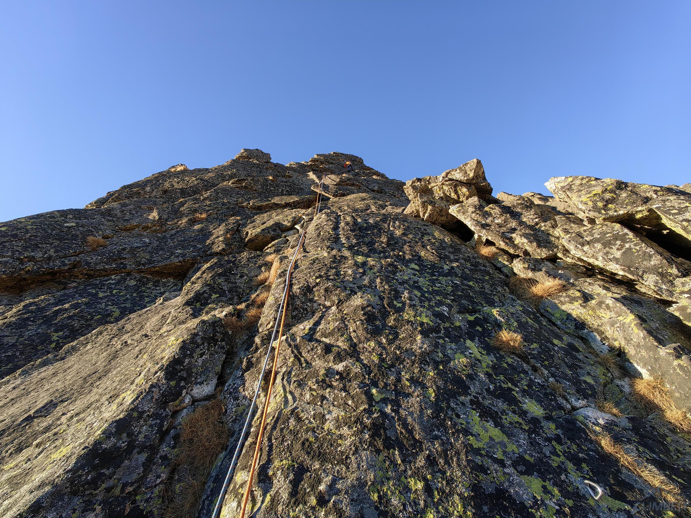MNISZEK (E) – na mniejszym i rzadziej odwiedzanym „bracie” Mnicha z pewnością warto zrobić Direttissimę (VI R2 190m), oferującą zróżnicowane wspinanie o górskim charakterze.