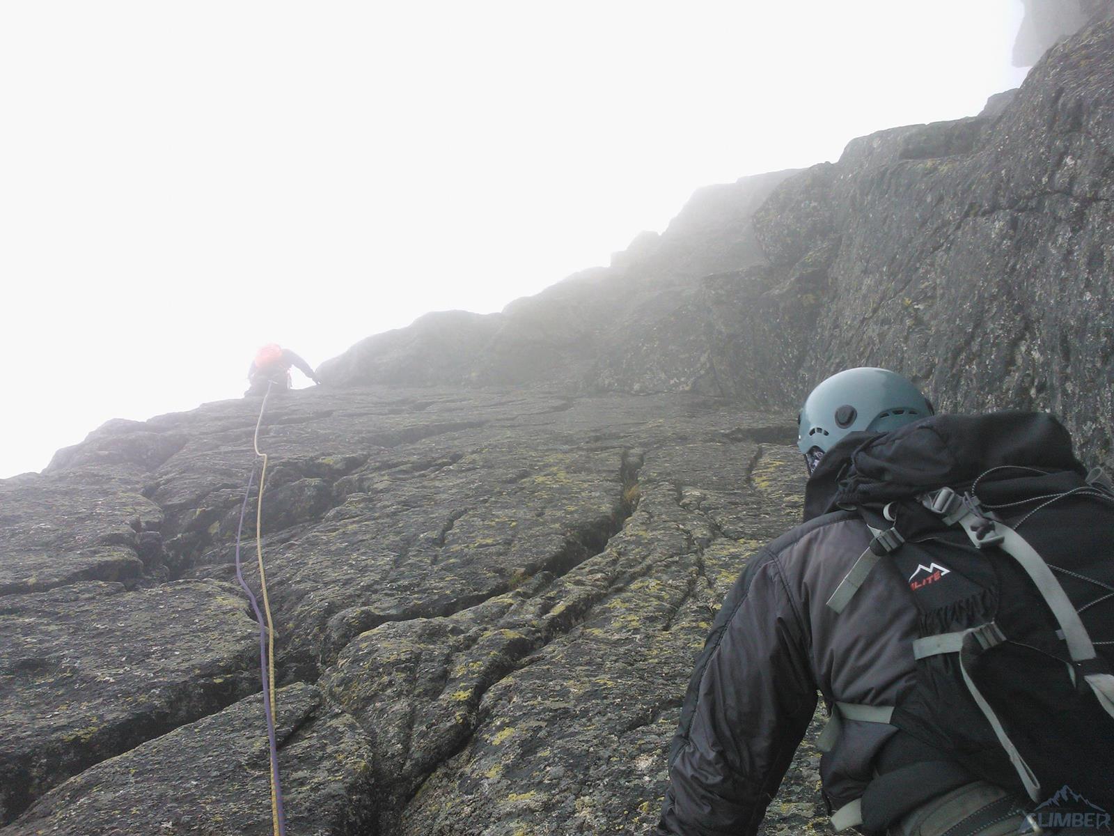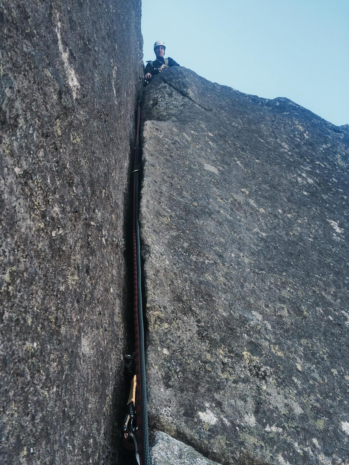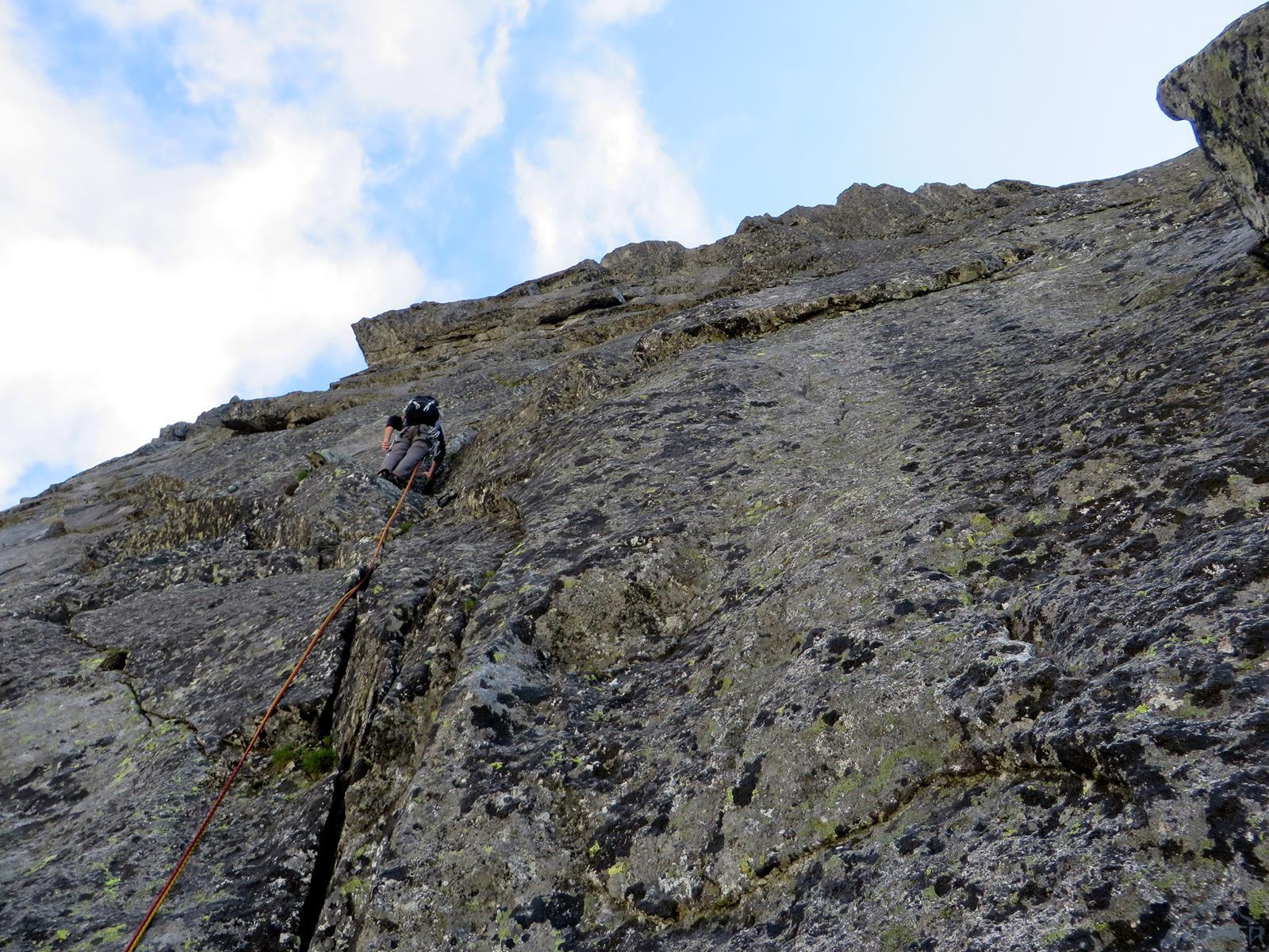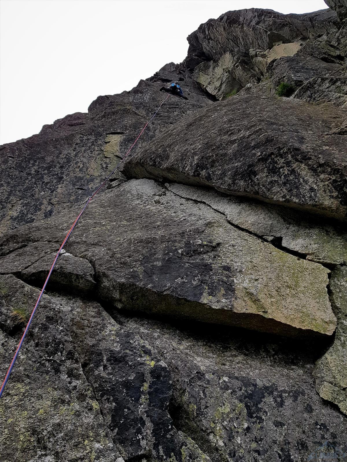 MNISZEK (E) – na mniejszym i rzadziej odwiedzanym „bracie” Mnicha z pewnością warto zrobić Direttissimę (VI R2 190m), oferującą zróżnicowane wspinanie o górskim charakterze.