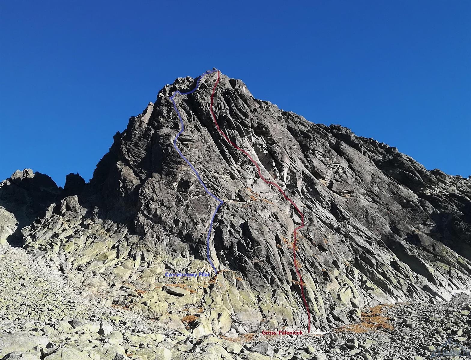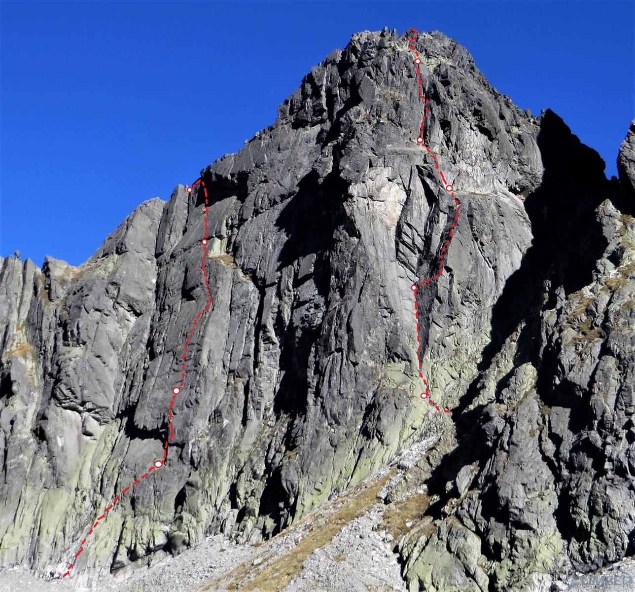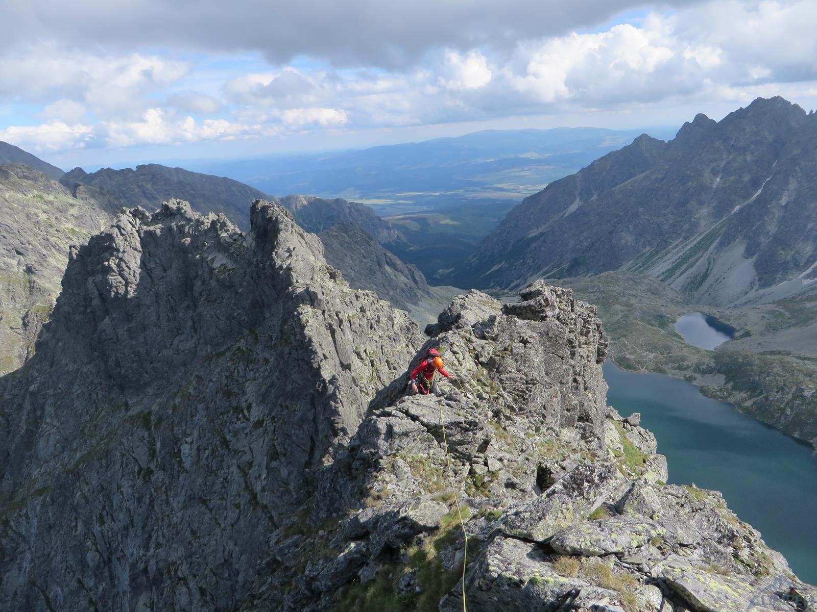 GERLACH (SW) – w masywie najwyższego szczytu tatrzańskiego od zachodu znajdziemy kilka interesujących dróg. Propozycja piątkowa (choć mocna) to piękny, płytowy Kriššák (V R2 300m), zdecydowanie największym klasykiem jest jednak Kurczab (VI- R2 300m), słow. Poľská cesta. Należy zwrócić uwagę, że po przejściu obu dróg czeka nas jeszcze sporo wspinaczkowego terenu do szczytu, a teren jest dość zawiły. Propozycja bardziej ambitna, posiadająca trudności również w górnej części to Brnenská cesta (VI R2 500m).