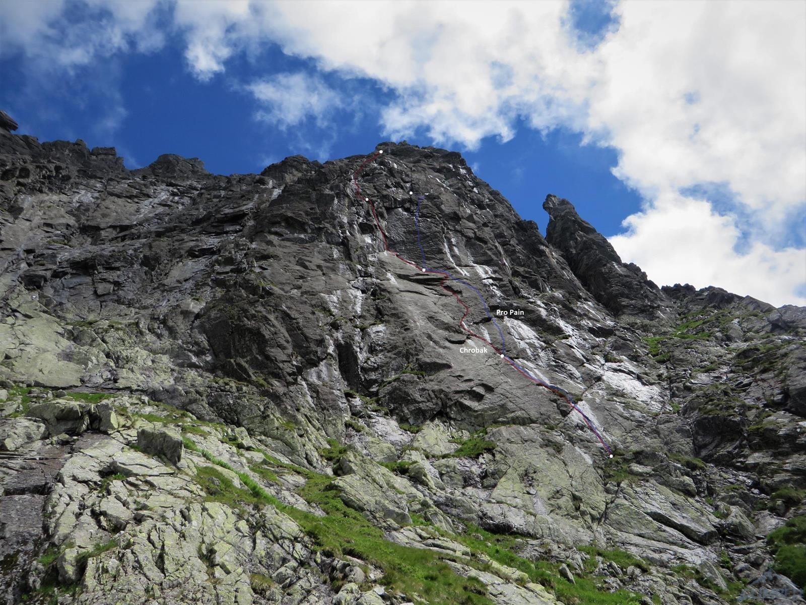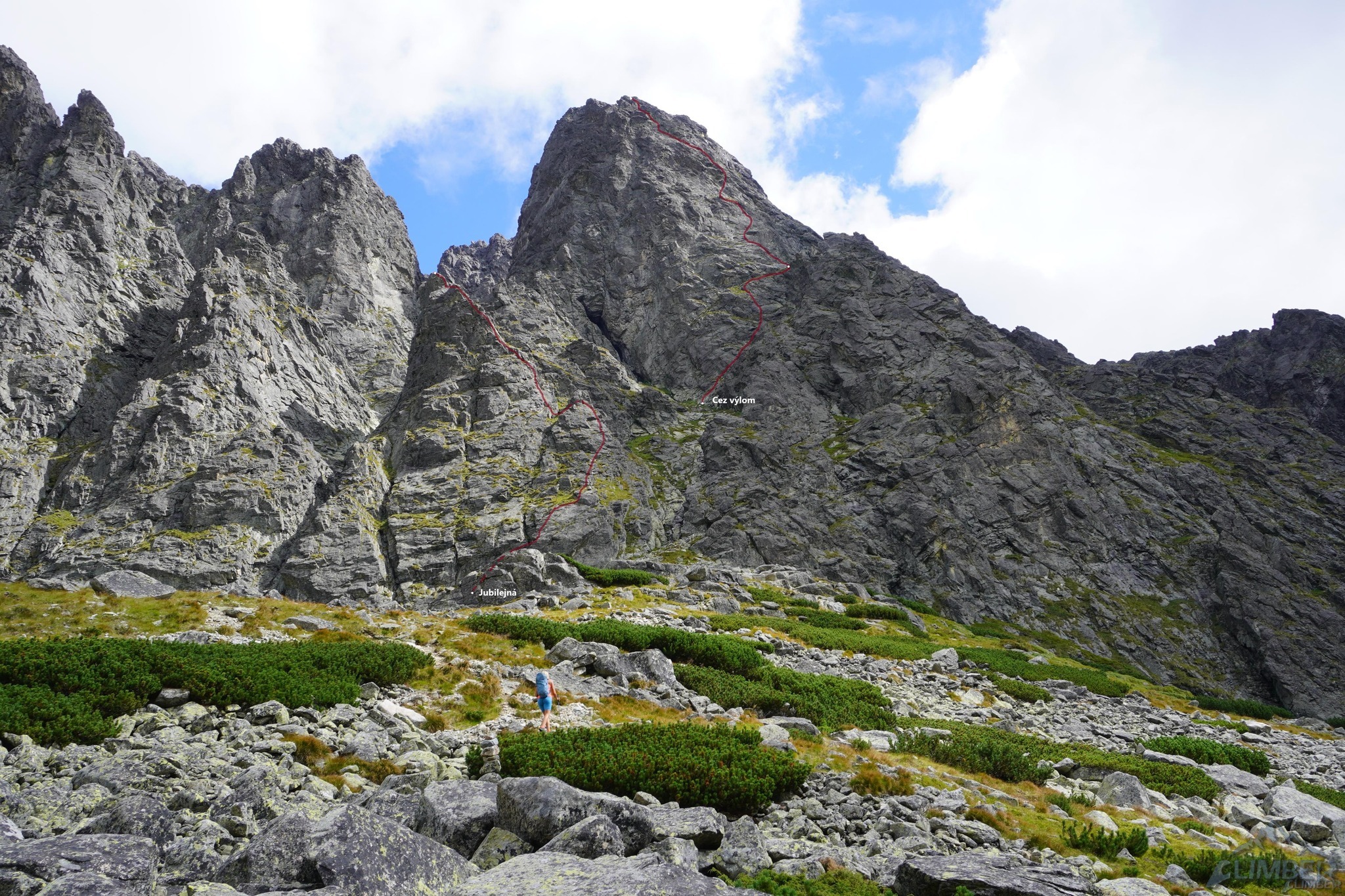 ŚCIANA POD SKOKIEM (W) – na ten moment około 40 dróg letnich i zimowych, wśród tych pierwszych linie przystępniejsze to m.in. Deň Svišťa (IV R2 120m) i poprowadzona imponującą wielką płytą Stredom Platne (IV+ R2 180m).