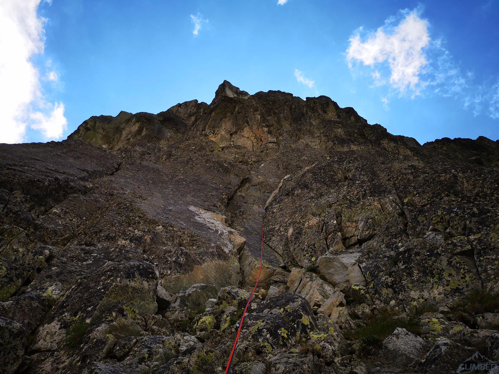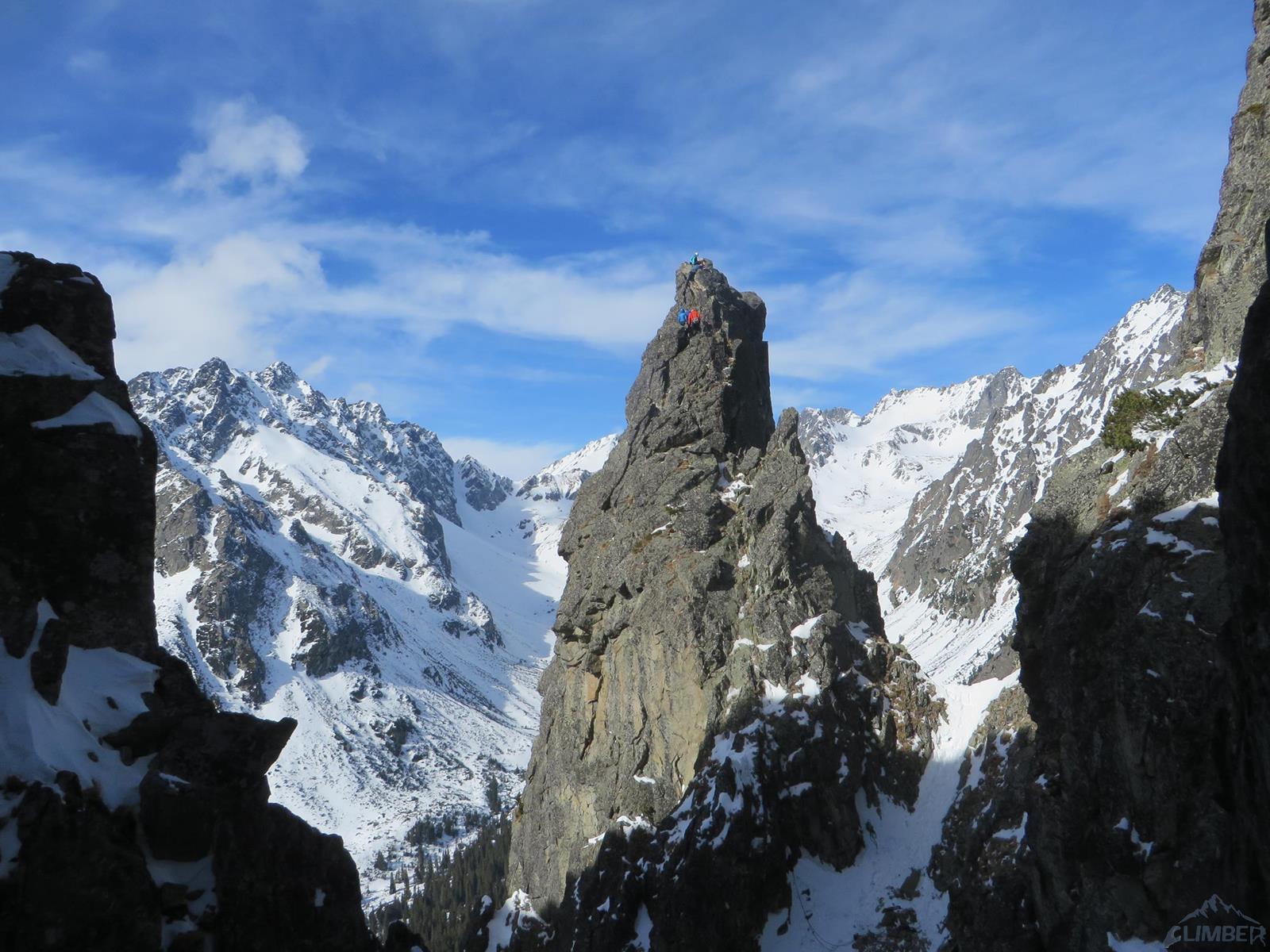 KOZIA TURNIA (S) – taterników poszukujących ładnych piątkowych linii o górskim charakterze (choć w tym przypadku z gotowymi stanowiskami) na pewno zainteresuje południowy Filar Lehotský'ego (V R2 300m).
