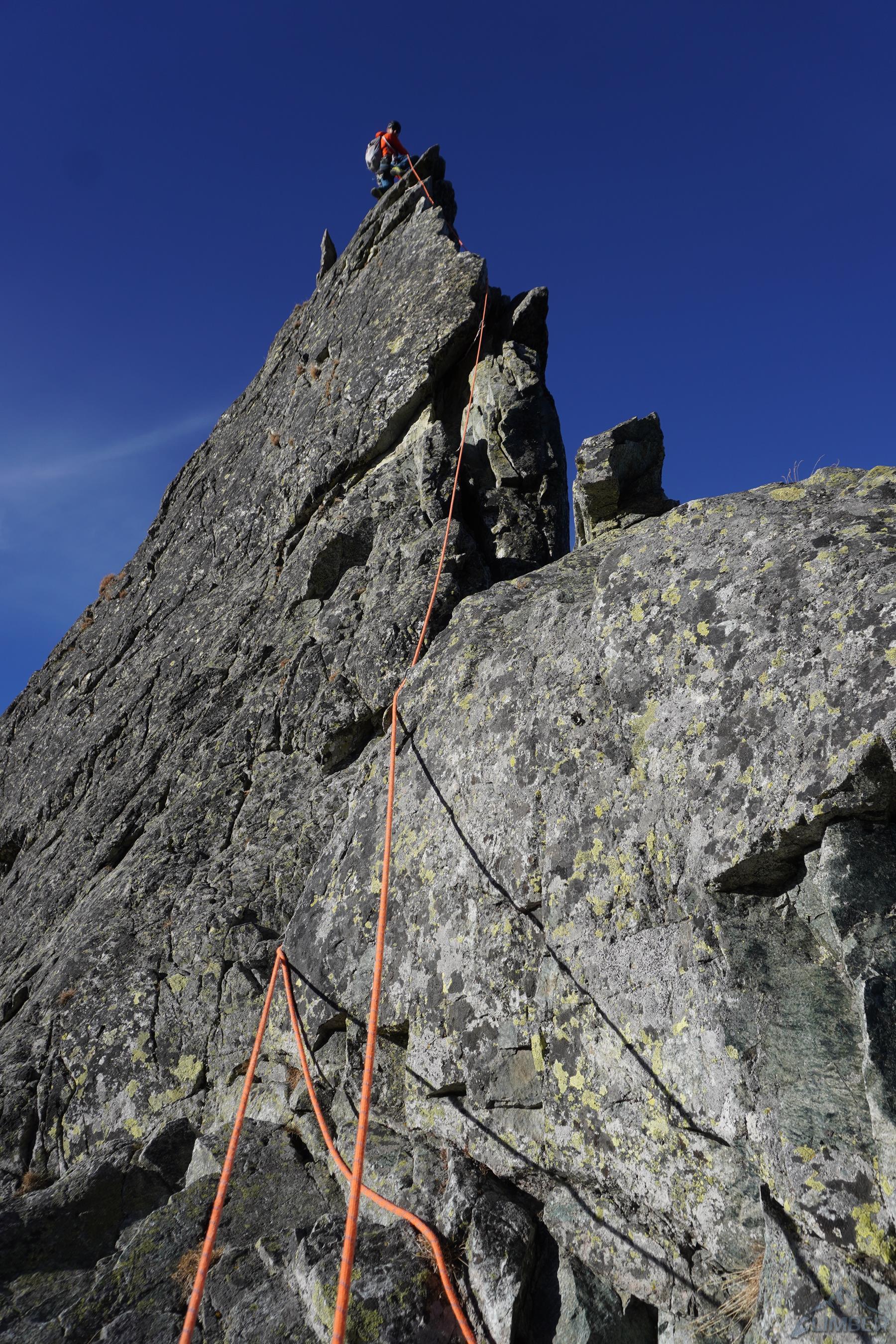 HRUBY WIERCH (N) – około 2-kilometrowa, przechodząca przez kilkanaście turni Grań Hrubego (IV) to jedna z najładniejszych i najciekawszych tego typu wspinaczek w Tatrach.