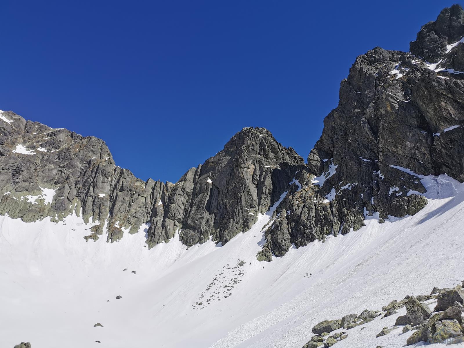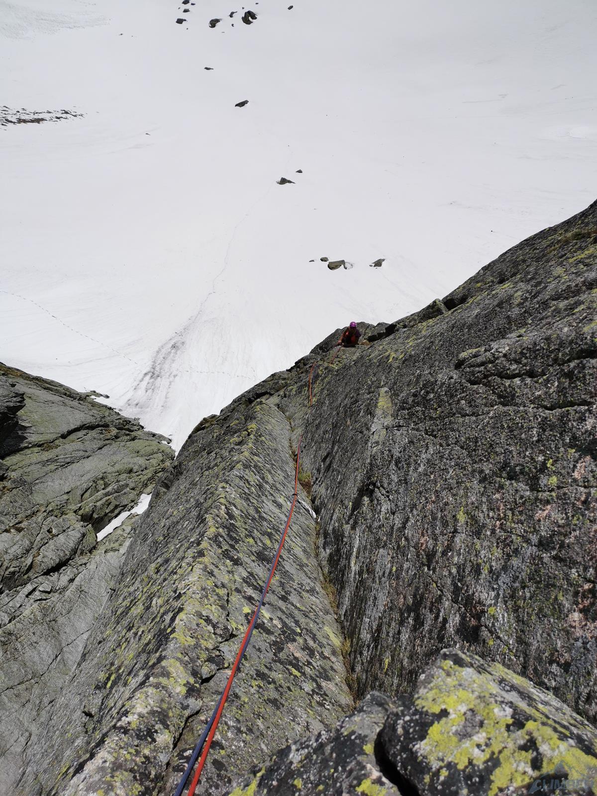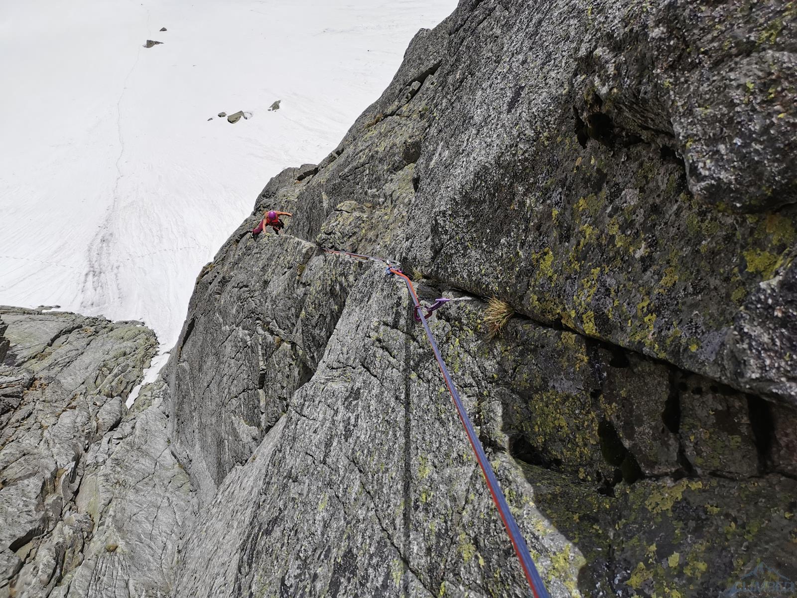 Długo wyczekiwany początek sezonu w Tatrach - granica ze Słowacją nadal zamknięta, po deszczowym tygodniu wybieramy więc południową wystawę Zamarłej. W górnych partiach nadal zalega bardzo dużo śniegu, gdy docieramy więc do Dolinki Pustej, ukazuje się nam widok jak z Enversów, gdzie w ściany startuje się prosto z lodowca. Rano zacięcia i rysy są jeszcze mokre, postanawiamy więc rozpocząć od wspinania na skąpanym w Słońcu Lewym Kancie. Początkowo w planach jest Egzamin z Fizyki (VII), jednak gdy omijamy pierwszy kruchy fragment lewą stroną, a na drugim długo błądzę w poszukiwaniu odpowiedniego (i suchego) wariantu, od trzeciego stanowiska postanawiamy zrobić kombinację najładniejszych wyciągów powyżej - jednego z Lewego Heinricha i dwóch z Mu-Mu-Mu.