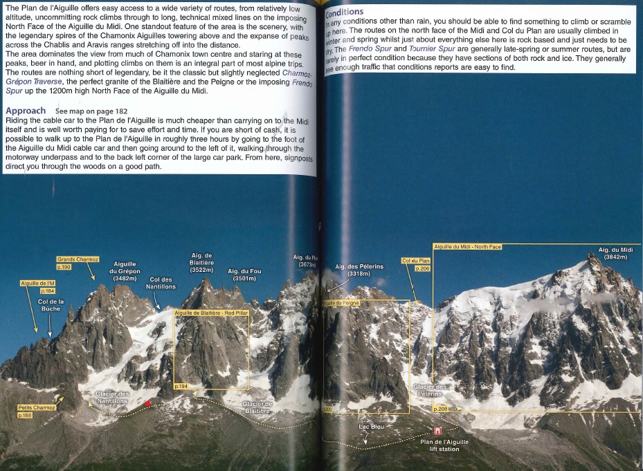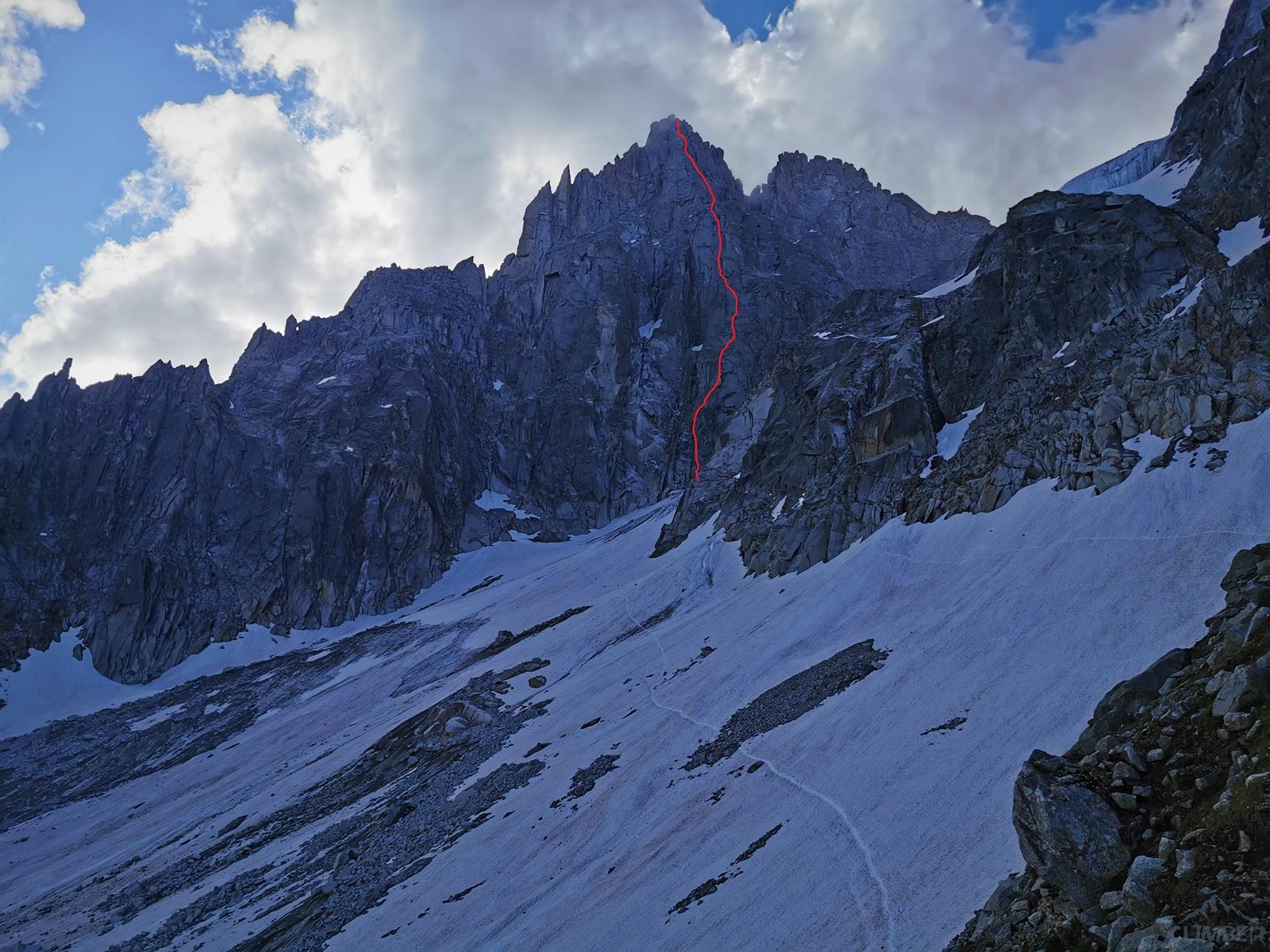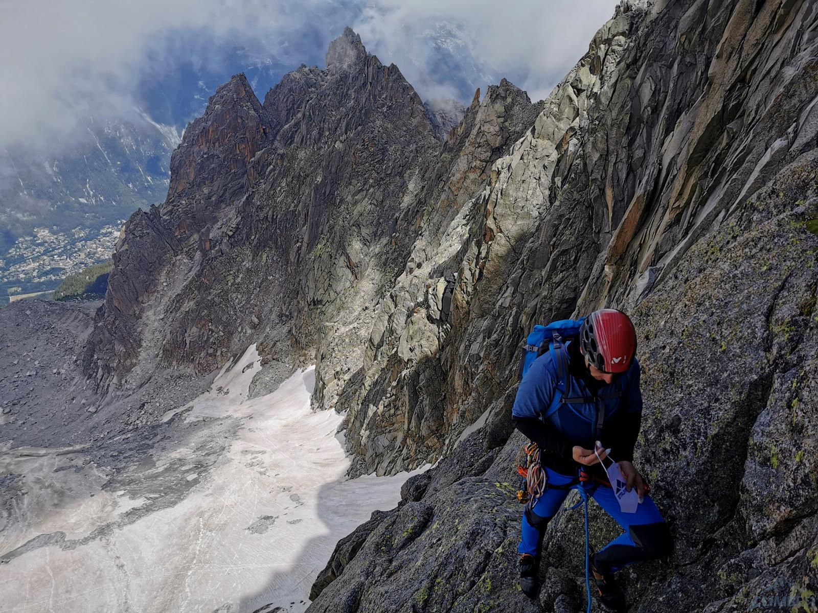 Jeden z długich, czysto-skalnych klasyków rejonu Mont Blanc – jego linia jest świetnie widoczna z centrum Chamonix, najładniej prezentuje się przy zachodzącym Słońcu. Droga jest sama w sobie świetnym celem, a jednocześnie może robić za porządny rozwspin przed czymś trudniejszym wysoko w górach – ponad 20 wyciągów przy dobrej dostępności (z Plan de l'Aiguille) oraz przystępnej wysokości (2800-3445 m) to świetna rozgrzewka i aklimatyzacja. Tak było i w naszym przypadku podczas wyjazdu, którego celem głównym był Filar Gervasuttiego na Mont Blanc du Tacul.