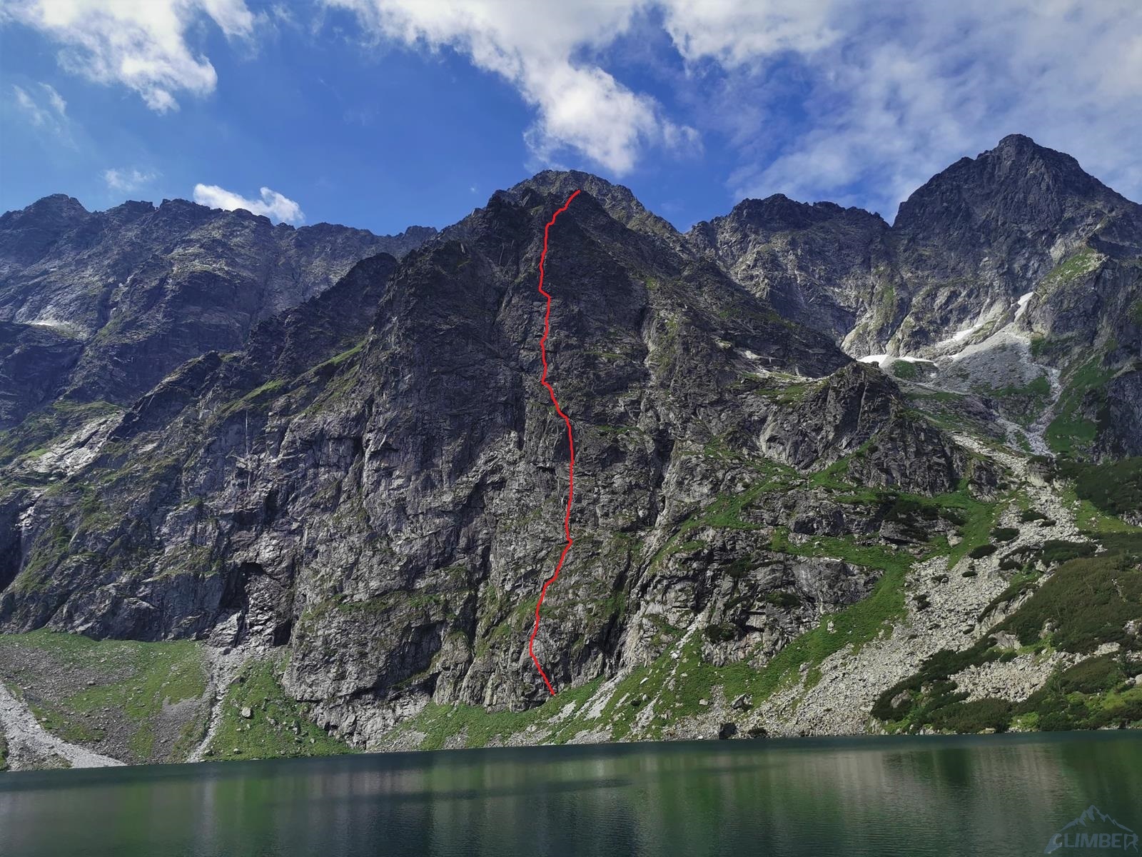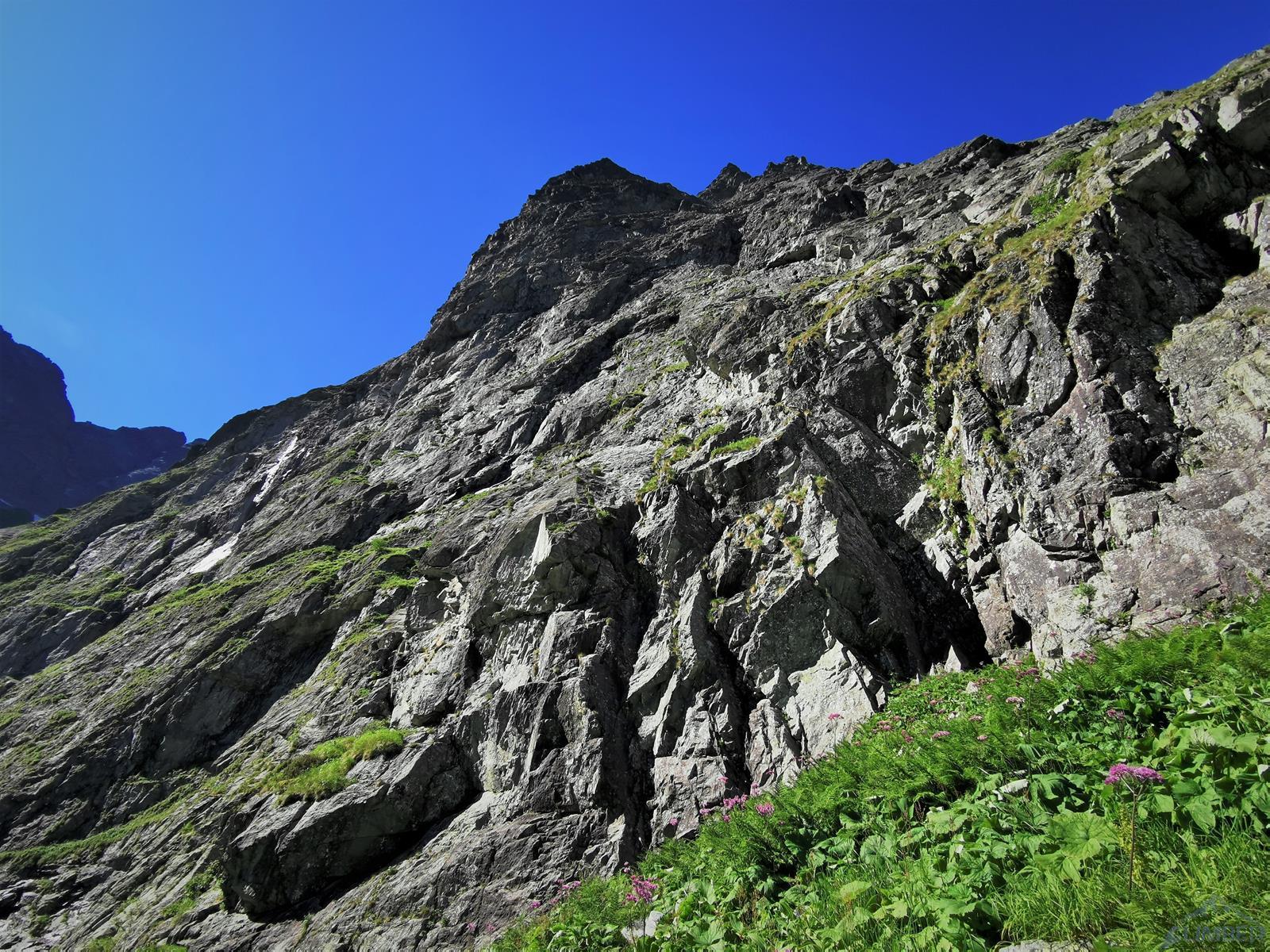 Kilka dni pięknej pogody w Tatrach to ostatnimi czasy rzadkość, a już podczas obozów klubowych sprawa niespotykana. Tym razem było jednak inaczej, dlatego od razu pierwszego dnia udajemy się na Kazalnicę. Centralna ściana jest jeszcze mokra (wrócimy na Małolata dwa dni później - RELACJA), wybieramy więc prowadzące płytami w prawej jej części Schody do Nieba. Droga nie jest co prawda tak efektowna jak te w okolicy Filara, ale z powodu dość skomplikowanego przebiegu, długości (ok. 13 wyciągów + godzina terenem I-III na szczyt), wymagającej miejscami asekuracji oraz solidnego VI+ na kluczowym wyciągu, nie należy jej lekceważyć. Korzystając z niniejszego opisu, zdjęć i stworzonego foto-topo będzie łatwiej, więc jeżeli chcecie zintensyfikować przygodę – nie czytajcie 😉.