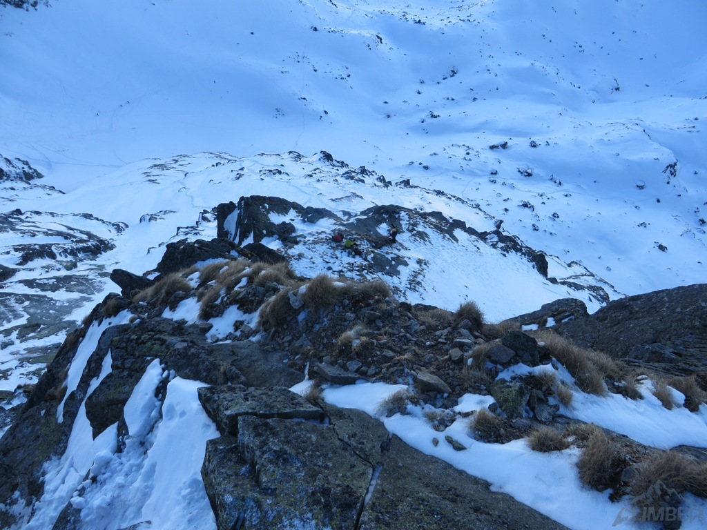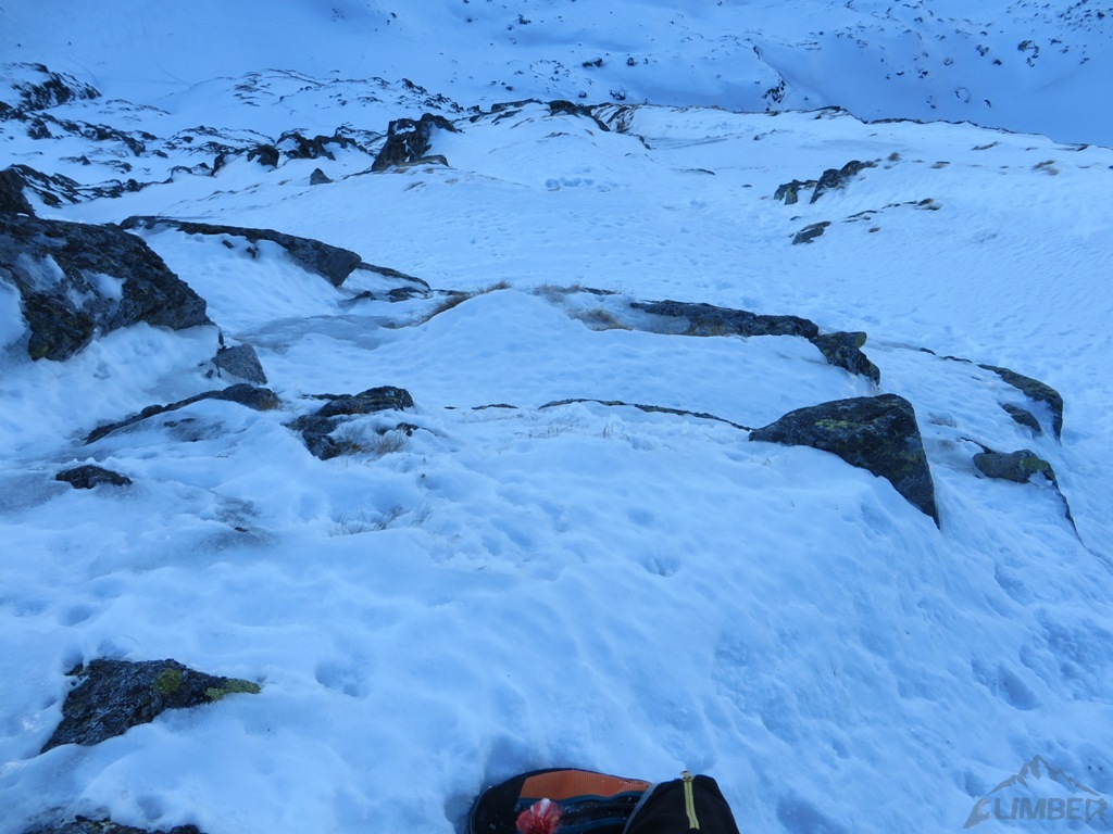 Wstajemy o 6:00, krótkie spojrzenie na łóżko nade mną i już wiem – zamiast na 2 zespoły pójdziemy w trójkę. Szybkie śniadanie (Jacek już dotarł) i gonimy ekipę przed nami, która również zmierza na Filar. Pod ścianą okazuje się, że na drodze jest już jeden zespół – musimy się więc pospieszyć jak chcemy zająć pole position, tym bardziej, że w przeciwieństwie do pozostałych zaczynamy trudniejszym wariantem – zacięciem wycenianym zimą na ok. M4+.