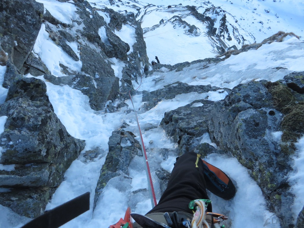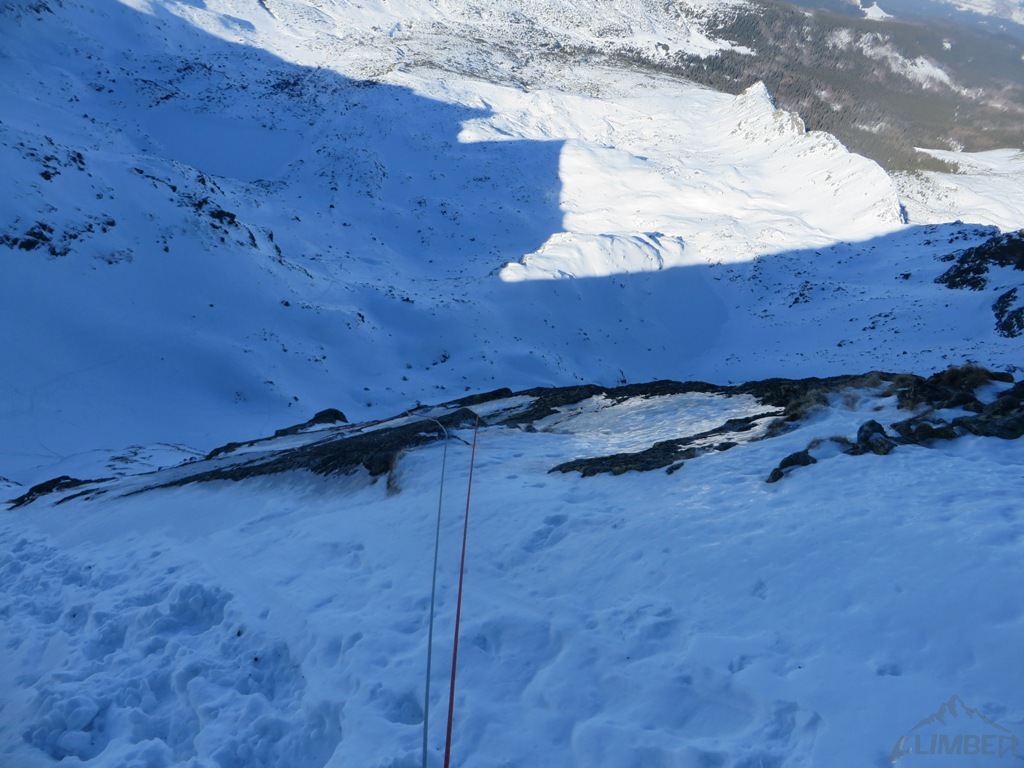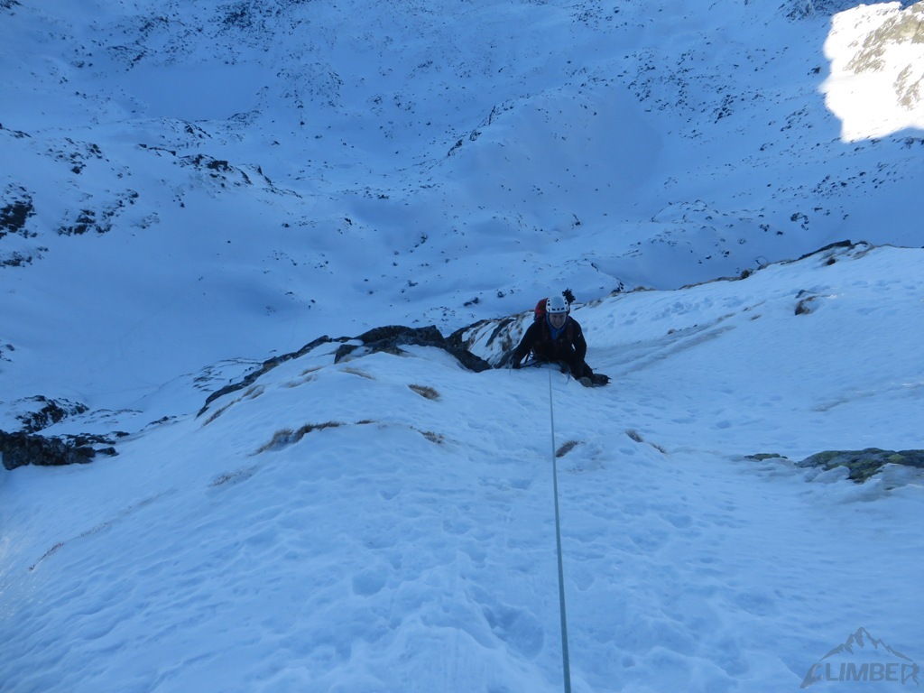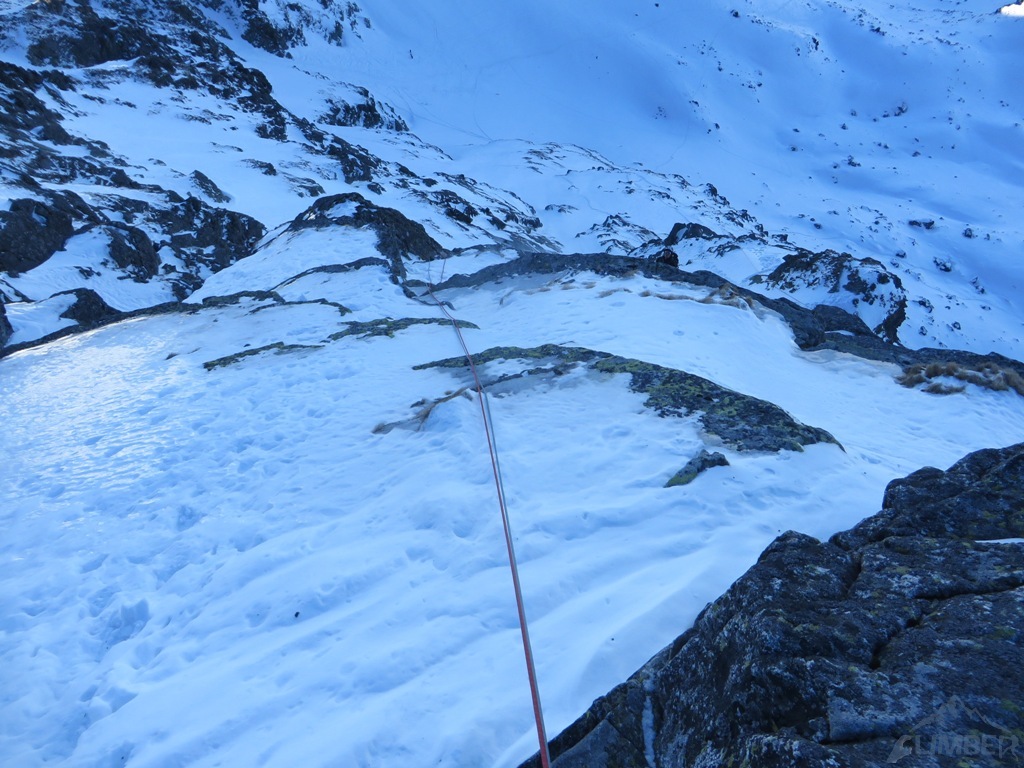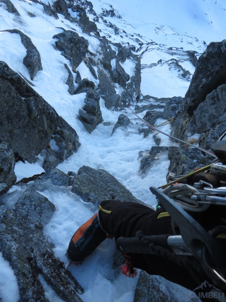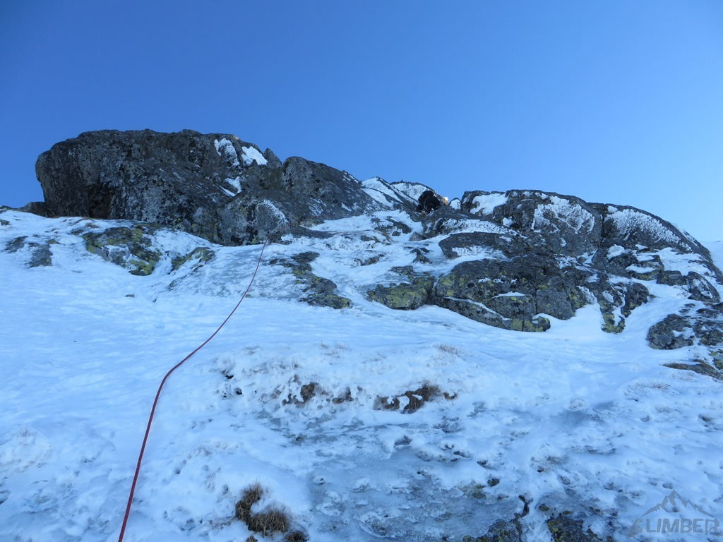 Wycena: M4+   Wycena uzupełniająca: war. III/IV+   Asekuracja: R1   Długość [m]: 350   Wyciągi: 10   Czas [h]: 5   Wystawa: N   Ocena: 7/10   Komentarz: