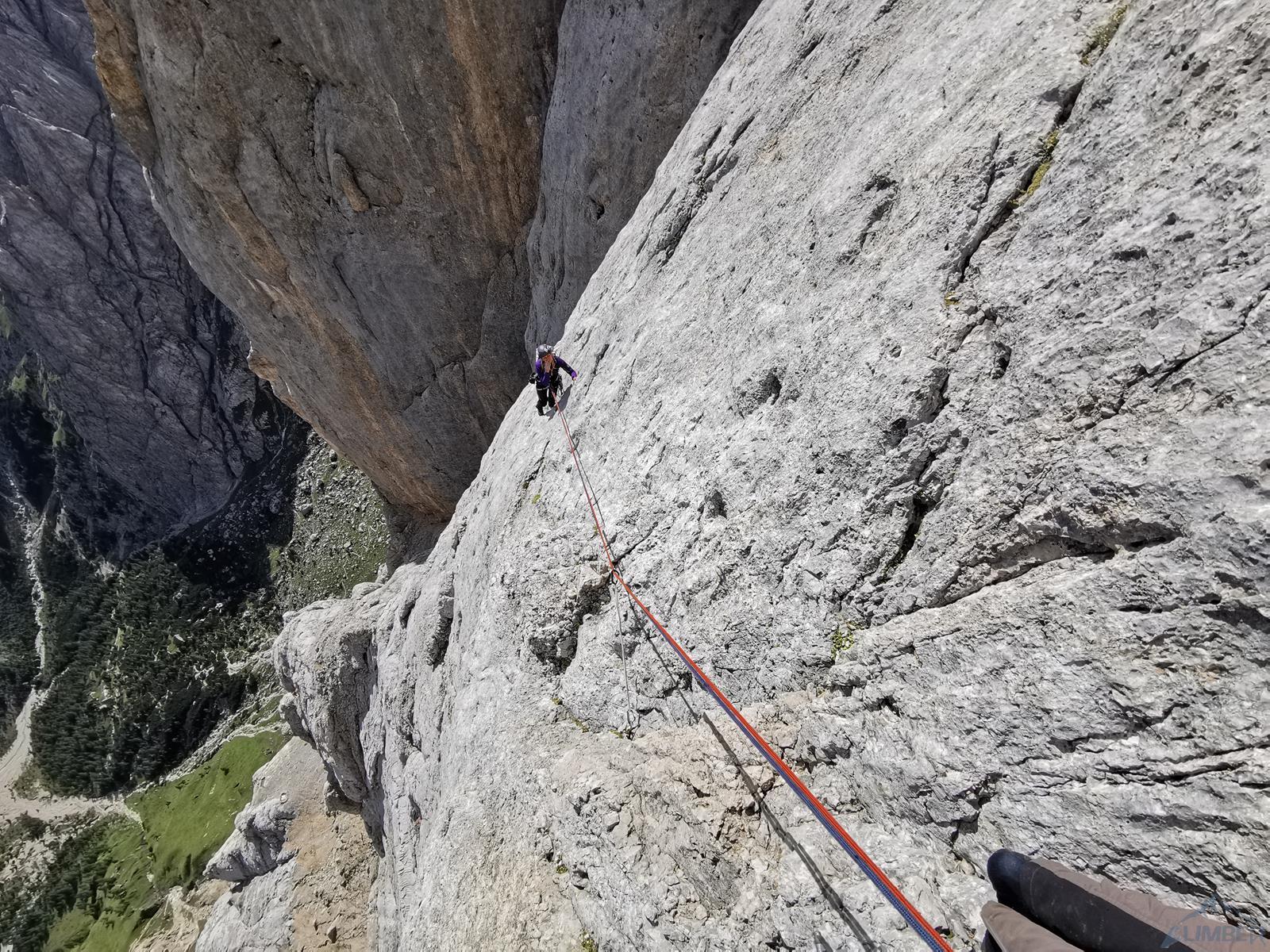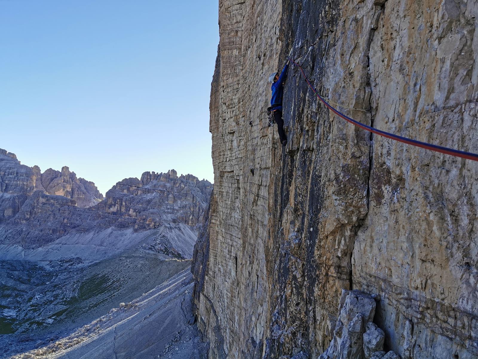 - Comici-Dimai (VII/VII+), Cima Grande di Lavaredo: jedna z najsłynniejszych linii w Dolomitach, słynne północne ściany Tre Cime po prostu miażdżą! Ciągowe trudności w dolnej, eksponowanej części drogi i sporo górskiej przygody powyżej;