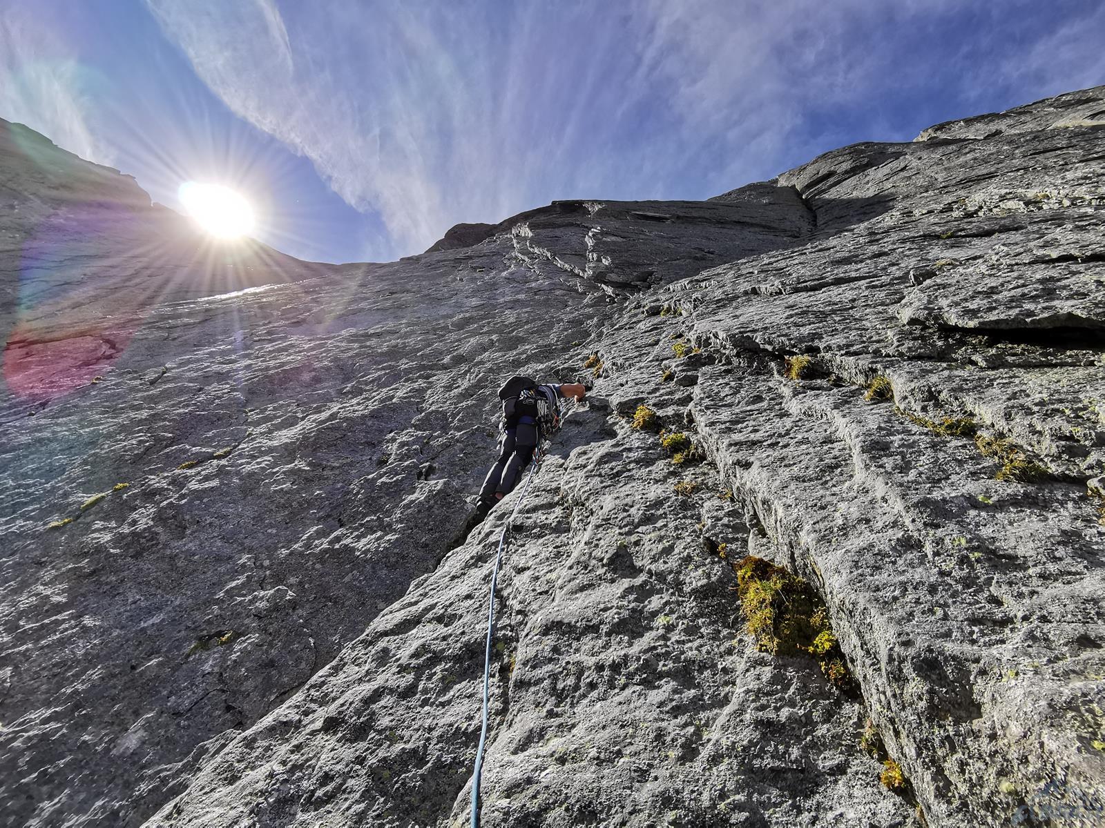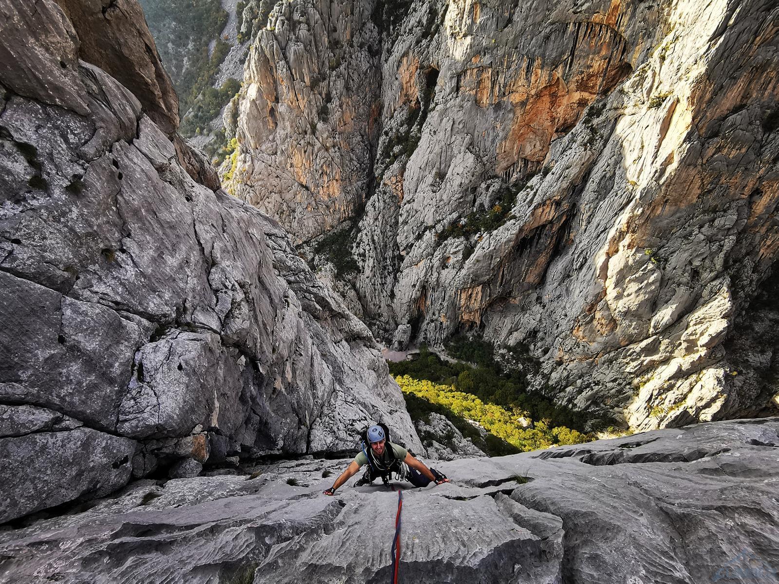 Przechodząc do Alp, dwa letnie wyjazdy przyniosły m.in. spełnienie kilku wspinaczkowych marzeń. W lipcu wraz z Michałem i Szymonem fundujemy sobie kawał świetnego alpinizmu - najpierw Filar Cordiera (TD 6b) na Grands Charmoz, po czym danie główne – Filar Gervasuttiego (TD+ 6a) na Mont Blanc du Tacul. Obóz klubowy w Dolomitach pozwolił m.in. na odwiedzenie dwóch wyjątkowych ścian – południowej Marmolady (Don Quixote 6b 1xA0, partnerką Ania, drugi zespół Adrian i Marek) i północnej Cimy Grande, na której zrobionej wraz z Romkiem OS-em linii Comici-Dimai (VII/VII+) nie trzeba chyba przedstawiać. Prosto z wapiennych turni przenosimy się do granitowego raju, na drugą po Cimie ścianę zaliczaną do „sześciu wielkich północnych ścian Alp” – Piz Badile. Droga Cassina (TD 6a) zaprzątała moje myśli odkąd zacząłem się wspinać, dlatego też poprowadzenie w całości tej pięknej linii było wyjątkowym doświadczeniem, towarzyszyła mi niezawodna Ania, w ostatniej chwili dołączyli do nas jeszcze Błażej z Mariuszem. Na przełomie października i listopada udaje się jeszcze wyrwać z pogrążonego w deszczu i wirusie kraju do słonecznej Paklenicy, gdzie wraz z partnerką przechodzimy m.in. Albatrosa (6b 1xA0) na Anićy kuk.