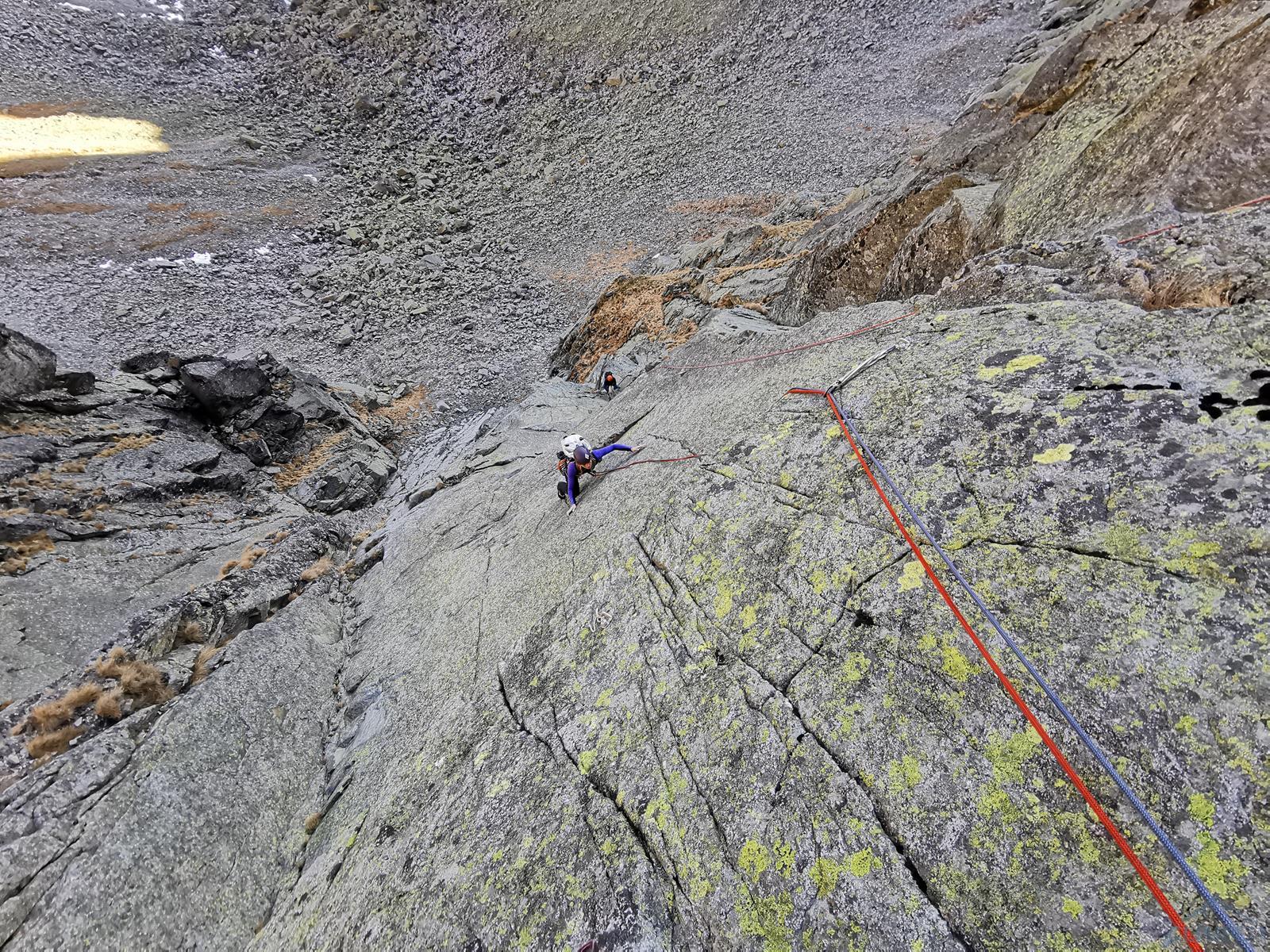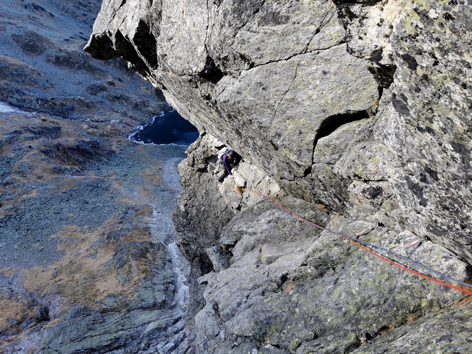 Wrzesień to trzy piękne weekendy i trzy przejścia, do których powtarzania szczególnie zachęcam – piękne Patagonské léto (VII+/VIII-, wariant ) na Łomnicy z Dawidem, historyczny Kupczyk na Gerlachu (ok. VI+ ponieważ przypadkiem przechodzimy klasycznie odcinek A3 z Drlik-Orolin, tow. Ania, drugi zespół Michał i Szymon) oraz świetna kombinacja historyczno-sportowa na Galerii Osterwy składająca się z dwóch linii – Trojkráľovych limb (VII) i Oceľovej/Halkovej (VIII), obie robione z Szymonem. Później niestety nadchodzi przedwczesna zima i nieustające niże, trwające aż do początku listopada. Tydzień pięknej pogody pozwala wtedy na dogrywkę na suchych i słonecznych ścianach, wraz z Anią dorzucamy więc jeszcze pięć dróg - sezon definitywnie zamykamy na Zamarłej dwoma z nich, w tym pięknym Mu-mu-mu (VII+/VIII- 1xAF).